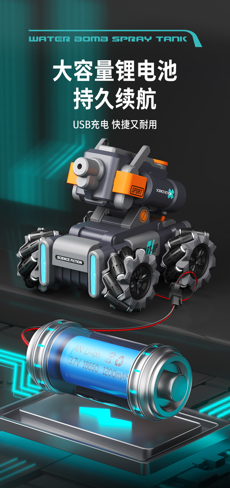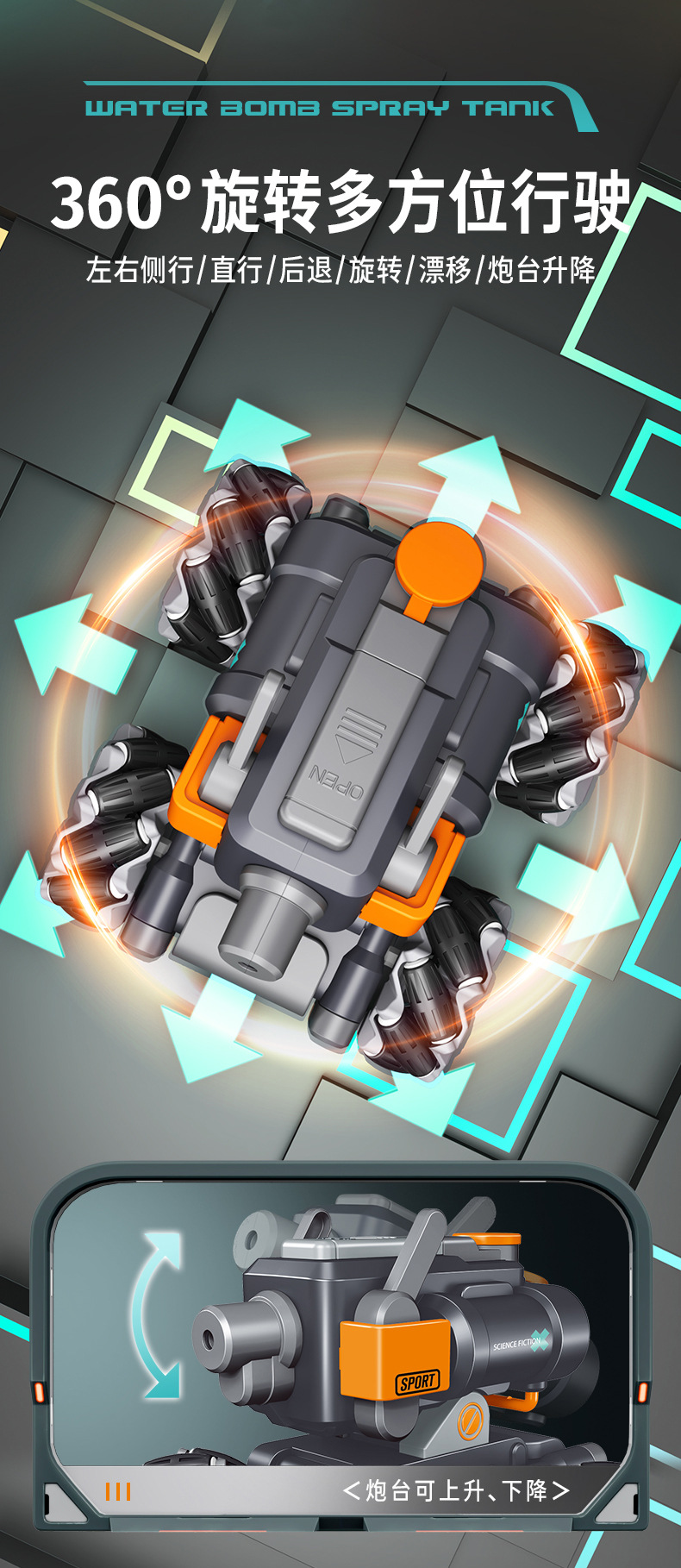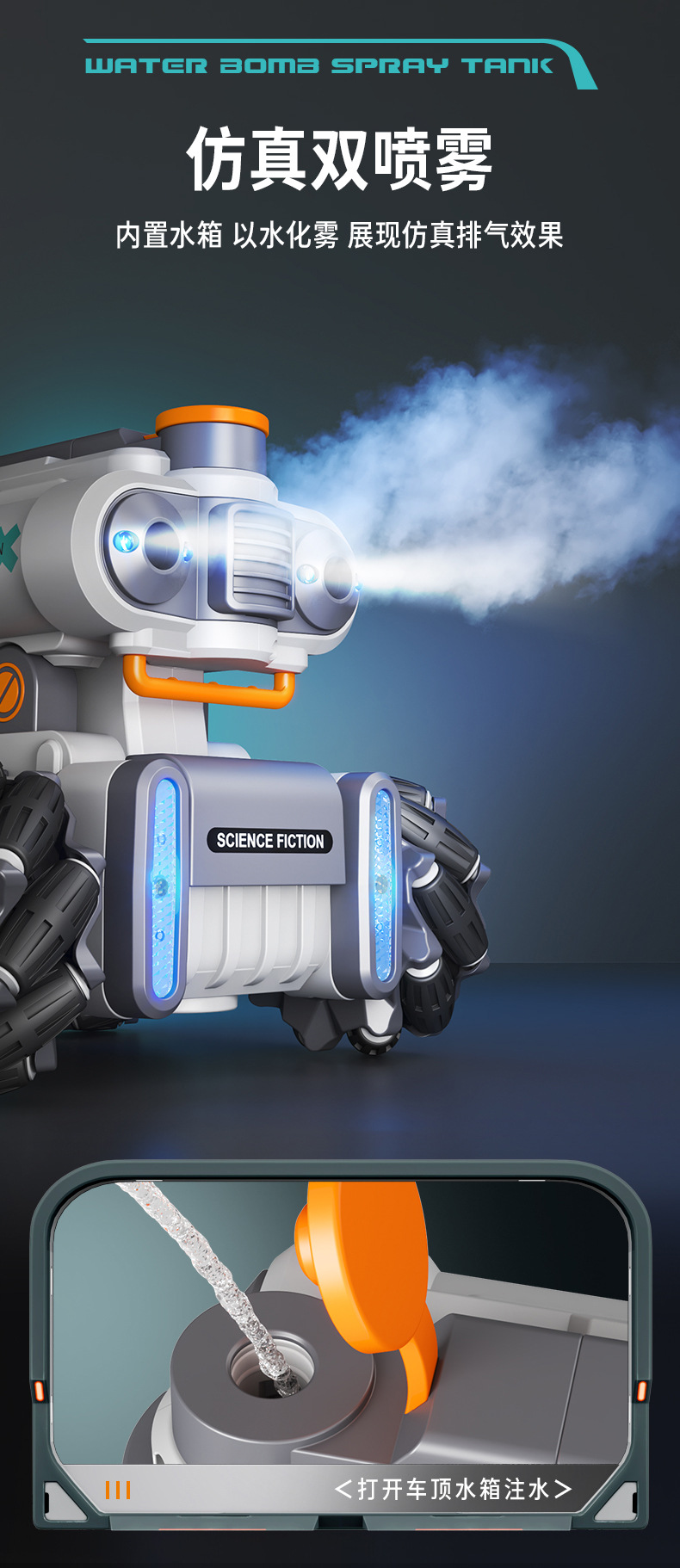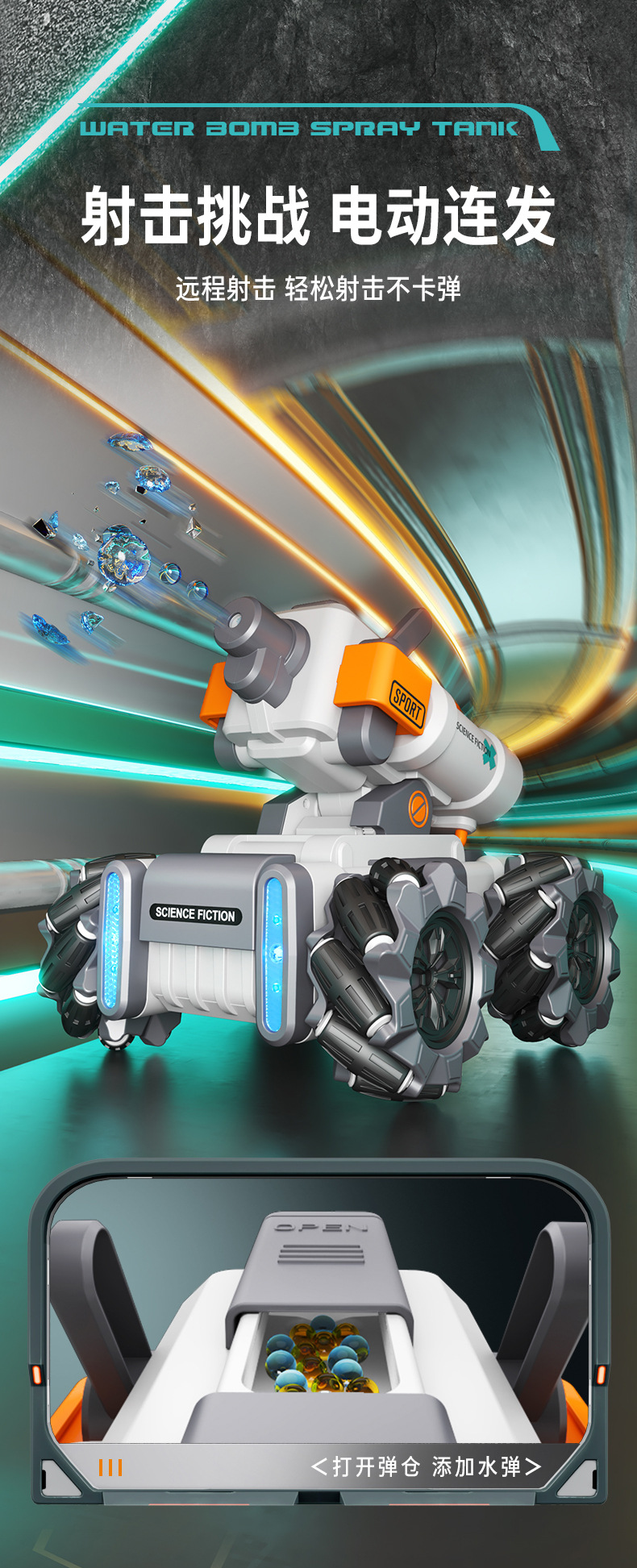 【喷雾遥控发射坦克车】儿童喷雾坦克遥控车可发射水弹电动坦克汽车对战玩具
