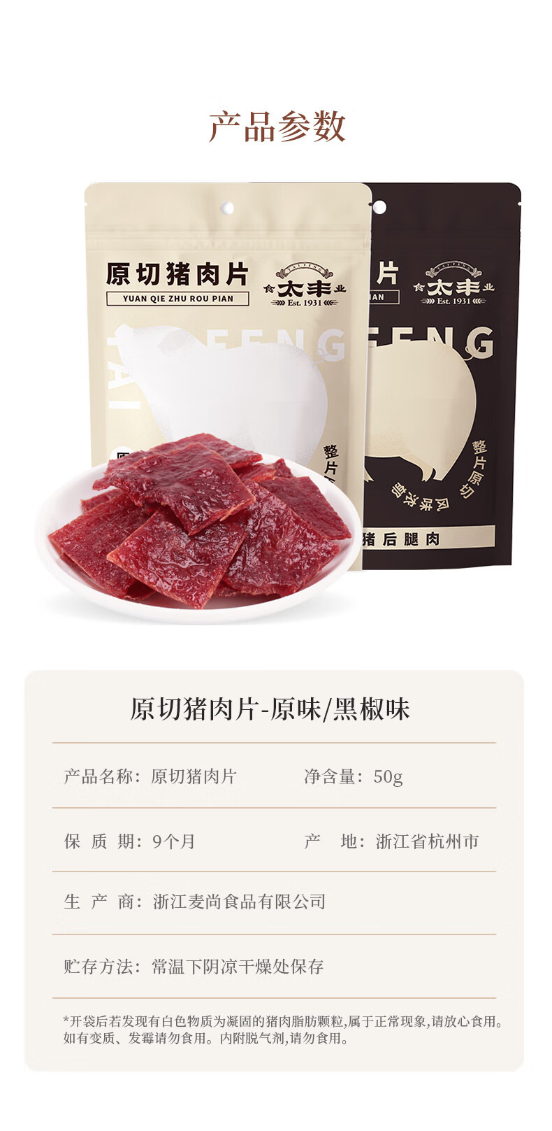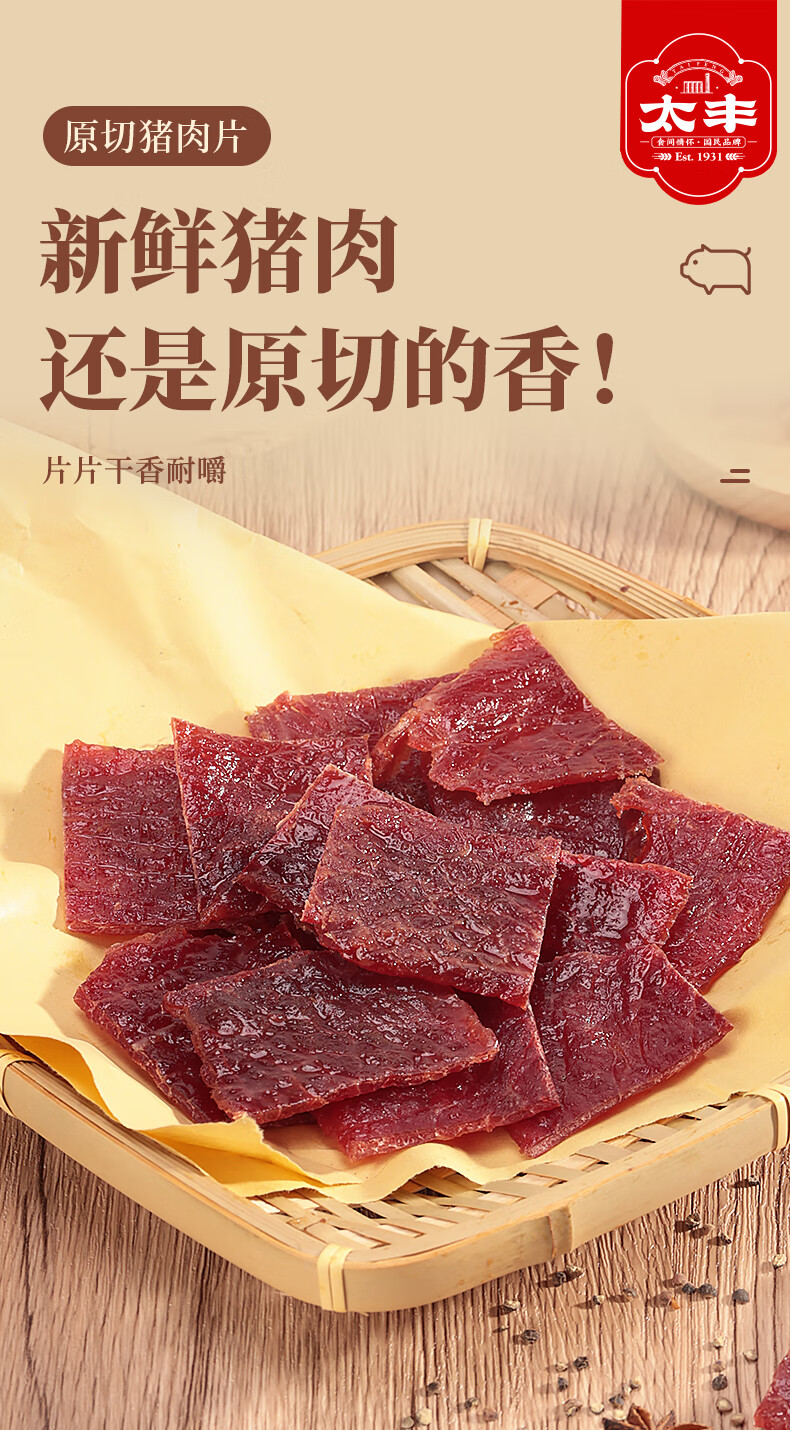 太丰原切猪肉片原味黑椒猪肉干办公休闲零食特产50g*6