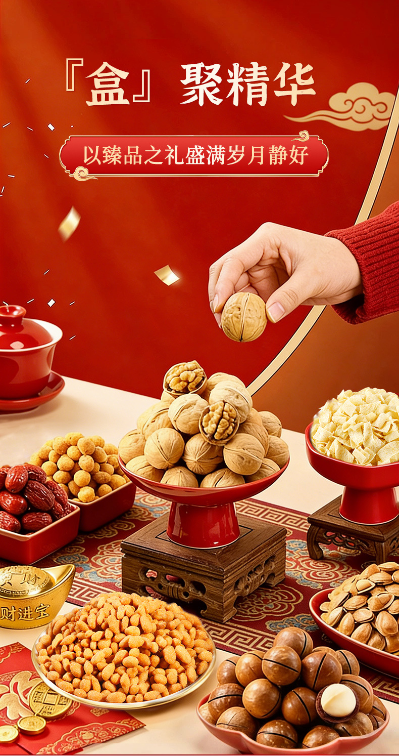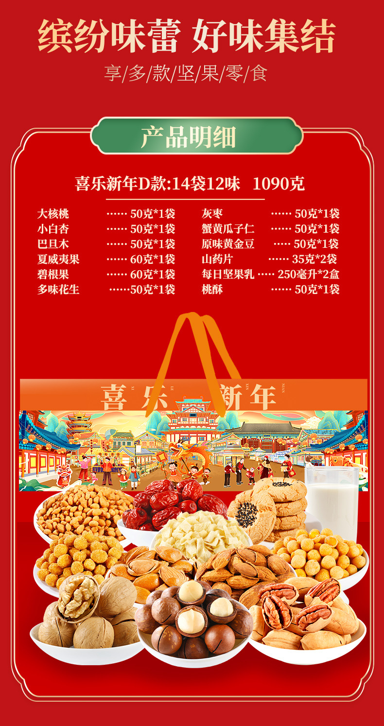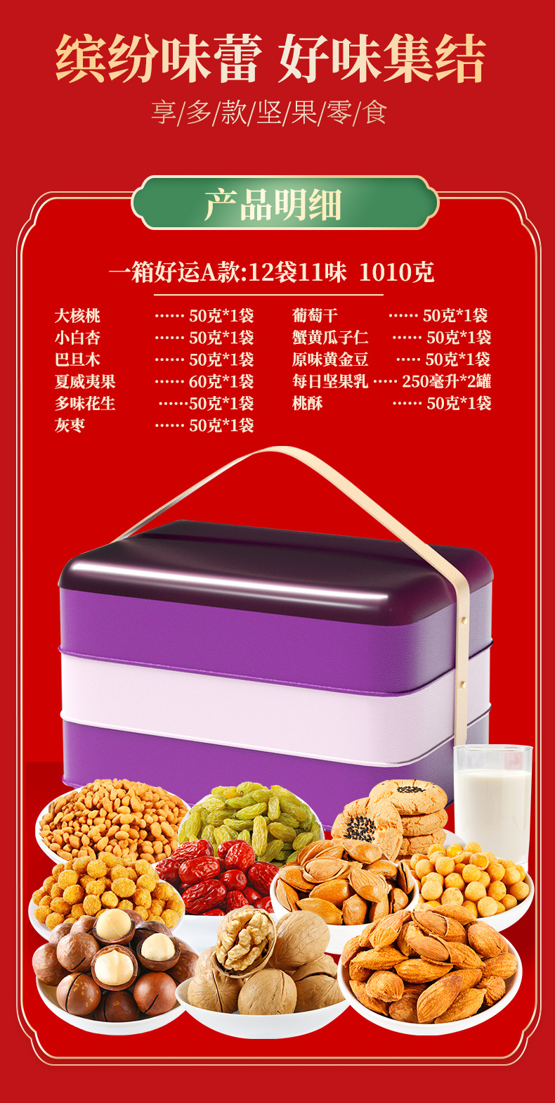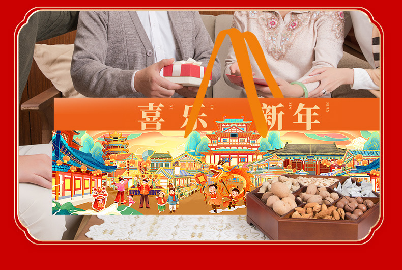 【喜乐迎新年❗️混合坚果礼盒】阖家欢乐意相牵「美味甄选很有料」新年零食大礼包,下午茶休闲干果炒货,马年新年送礼好物年货礼盒L