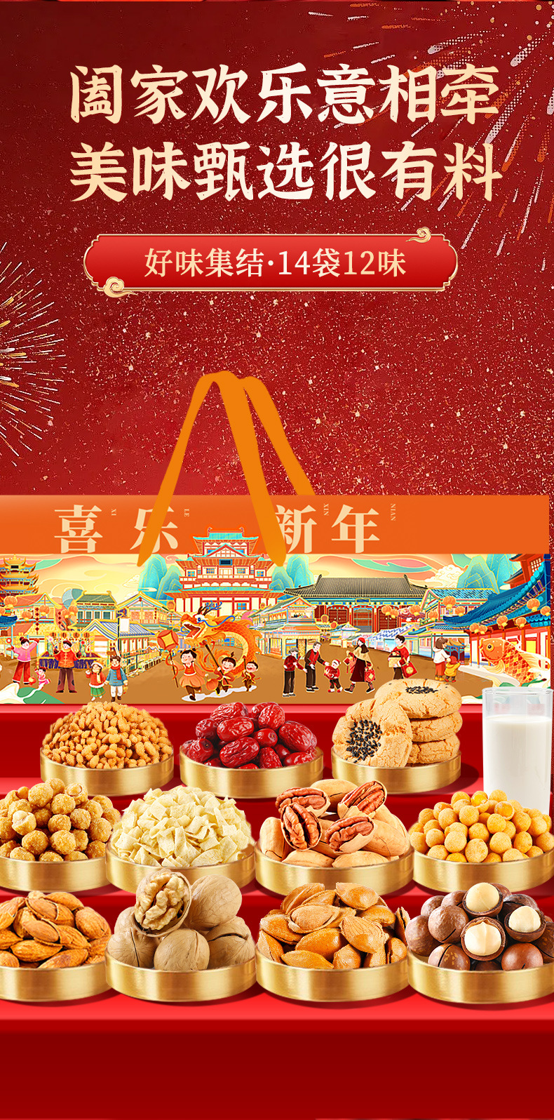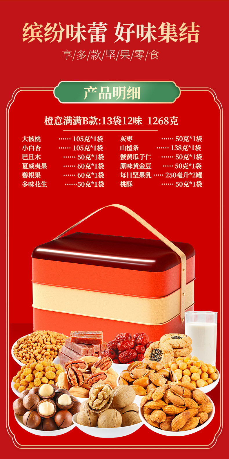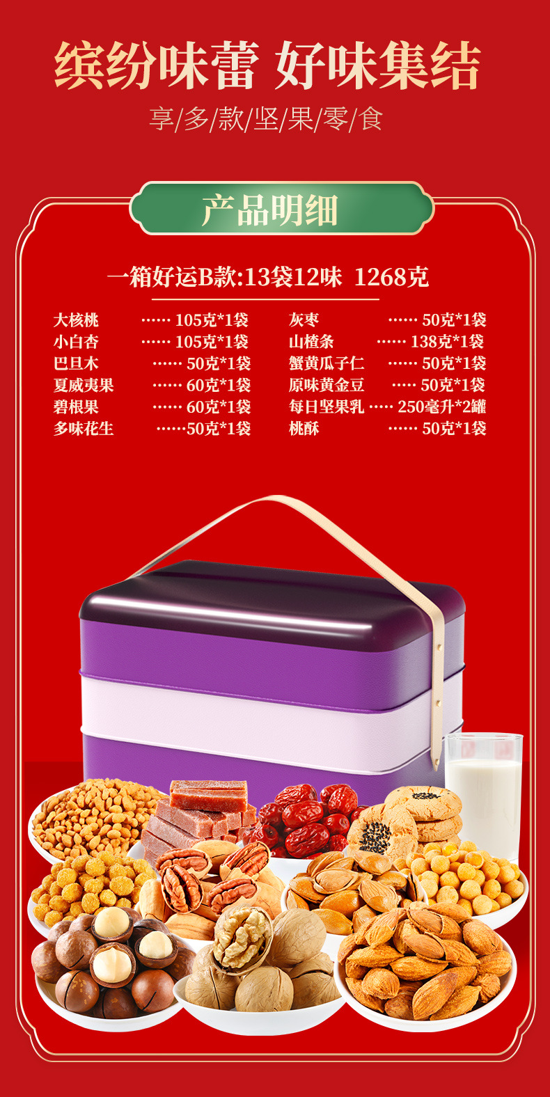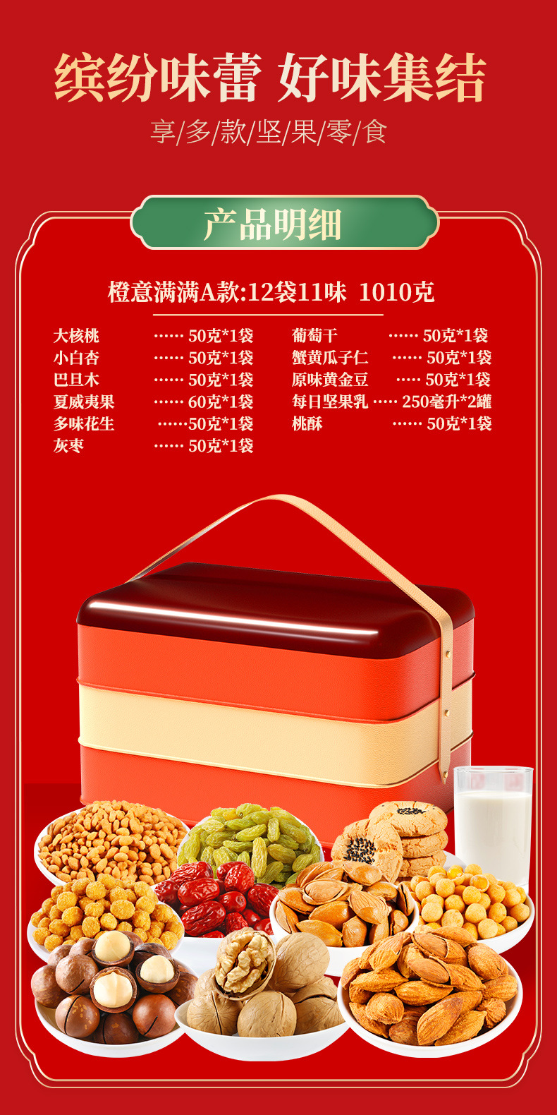 【喜乐迎新年❗️混合坚果礼盒】阖家欢乐意相牵「美味甄选很有料」新年零食大礼包,下午茶休闲干果炒货,马年新年送礼好物年货礼盒L