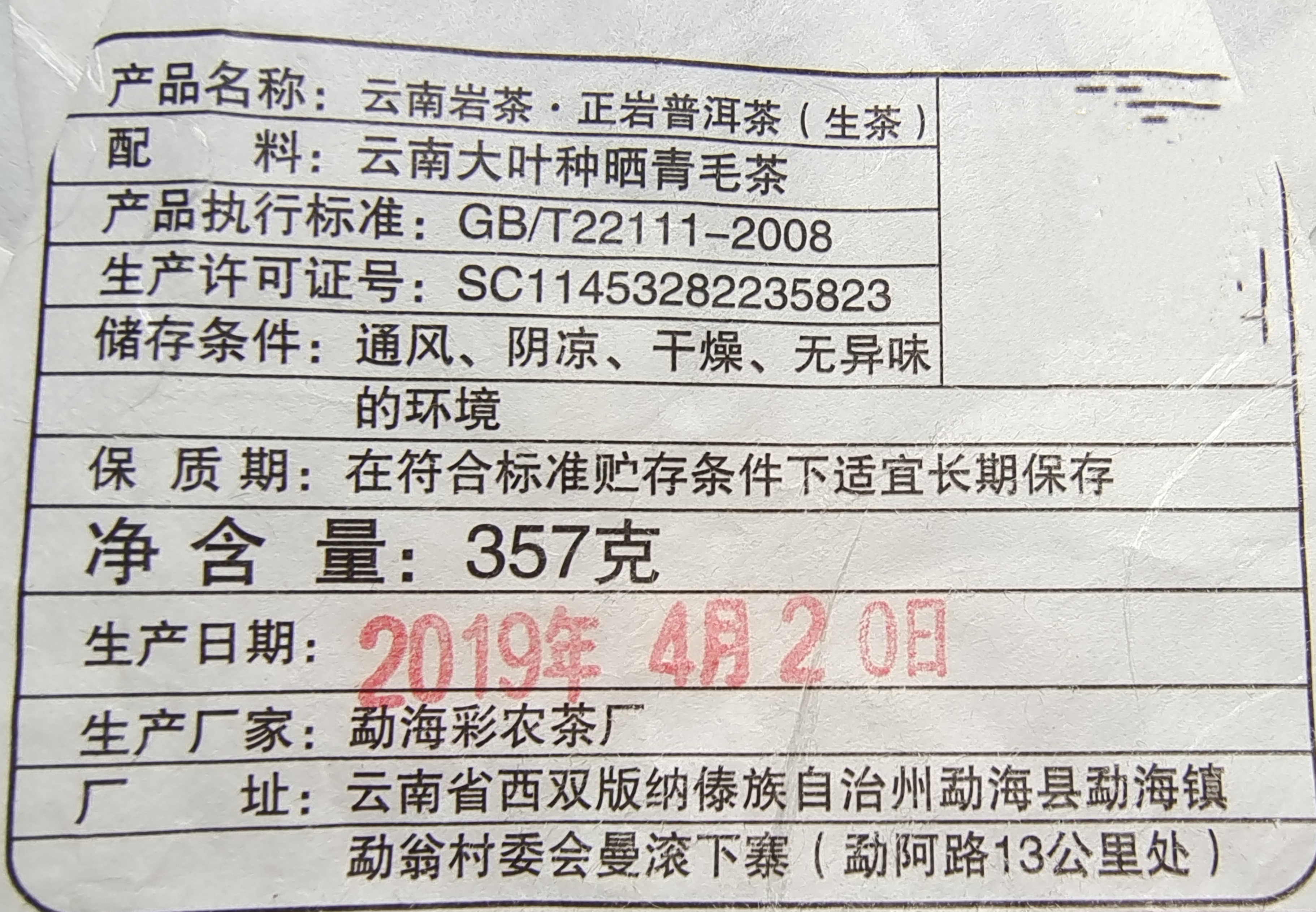 彩农茶|云南岩茶正岩2019春古树纯料石磨青饼
