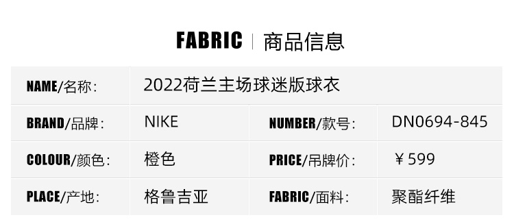 【送球员印号】SFS正品 Nike耐克2022世界杯荷兰国家队主场球迷版球衣DN0694-845