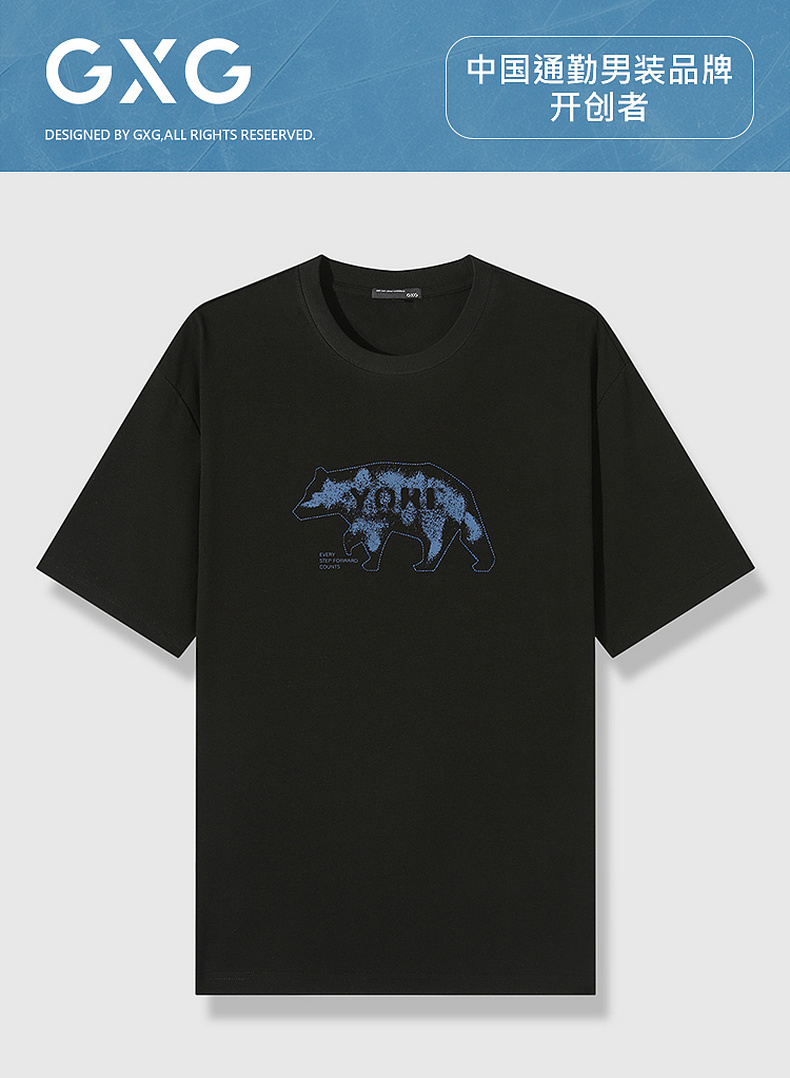 GXG男装【凉感透气】26夏季磨砂小熊舒适亲肤圆领休闲男式短袖T恤K&C