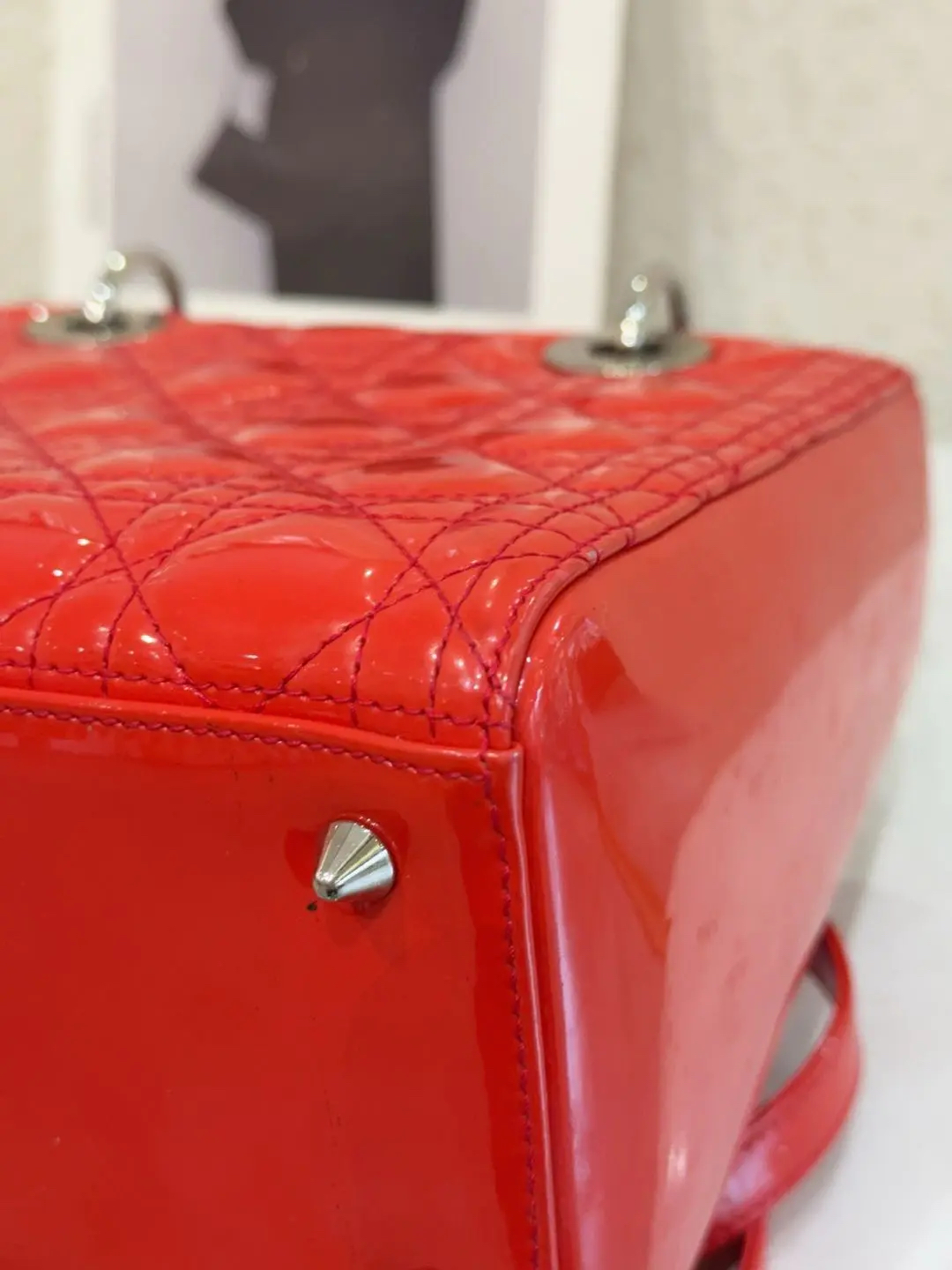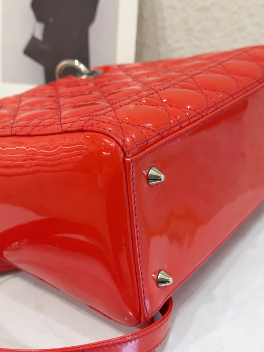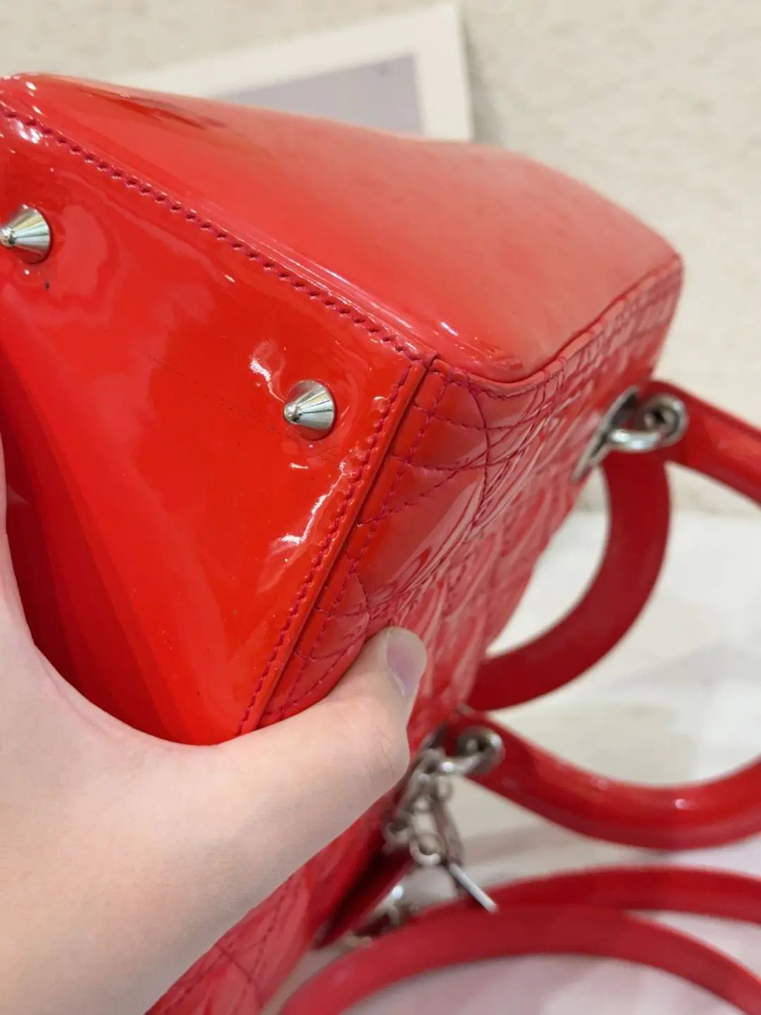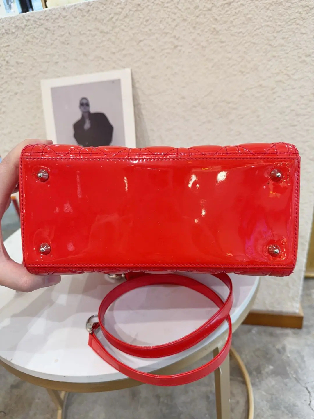 正品二手 Dior 五格 红金 藤格纹 漆皮 戴妃包😚95新 24*21 配件:肩带 防尘袋。 金属正常使用痕迹。热情似火