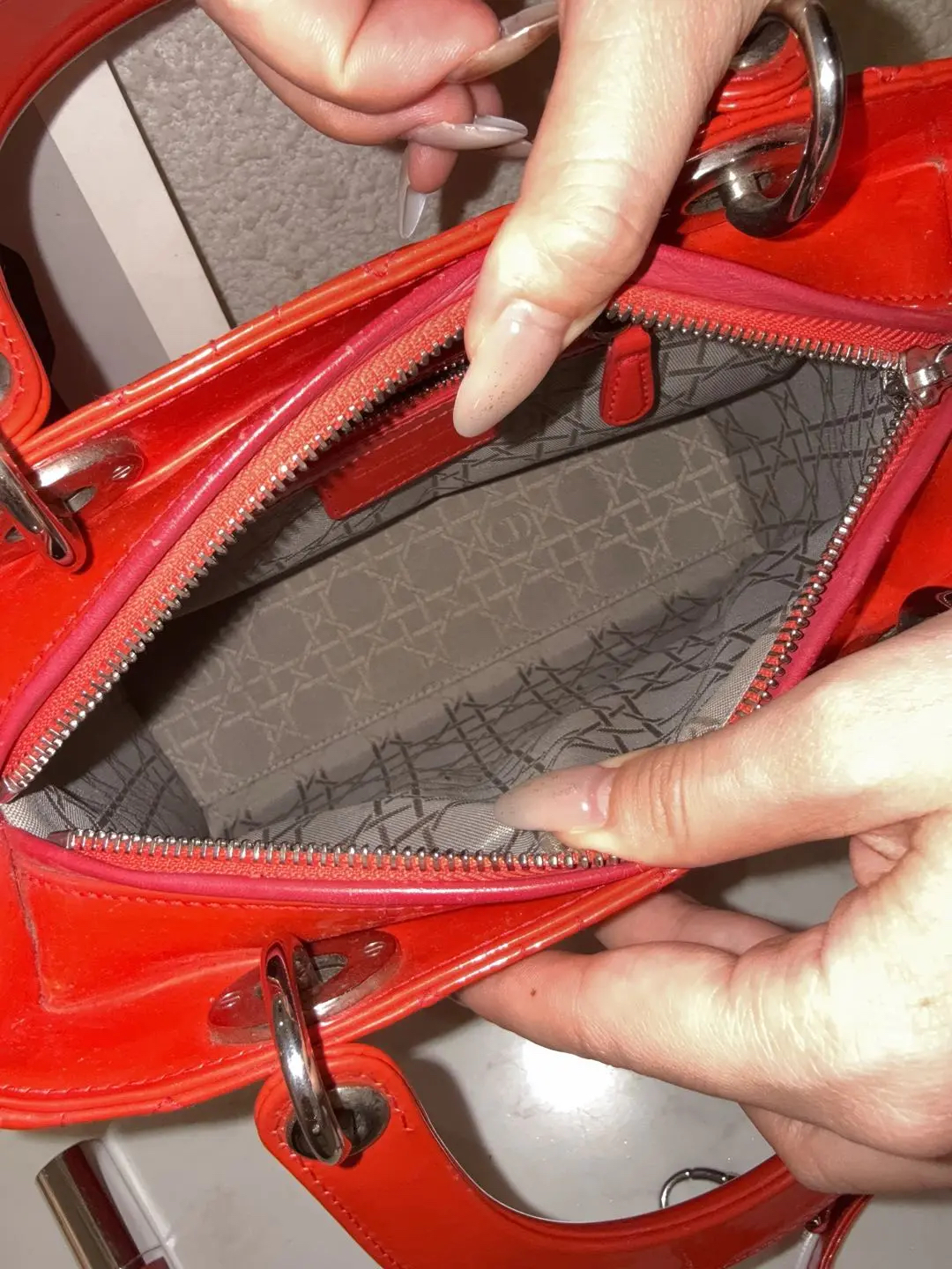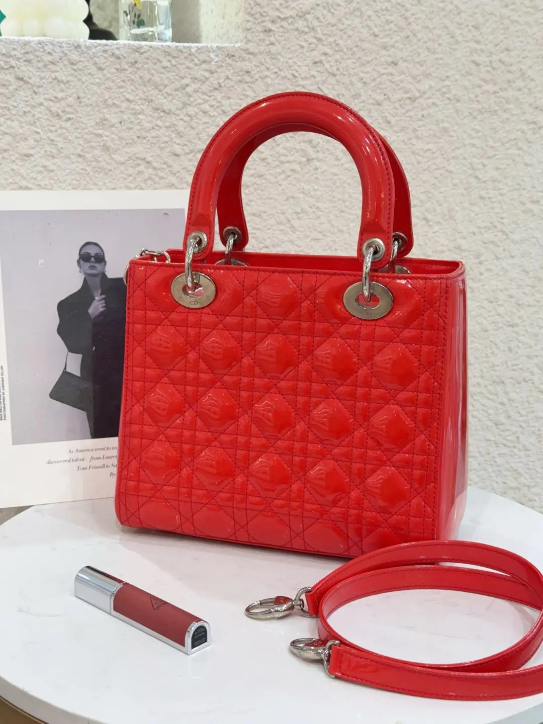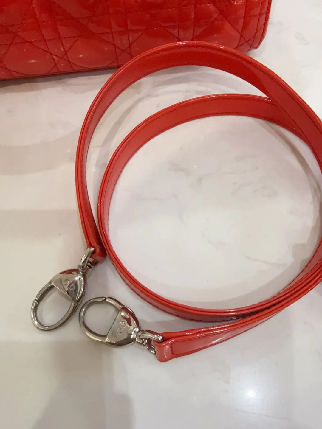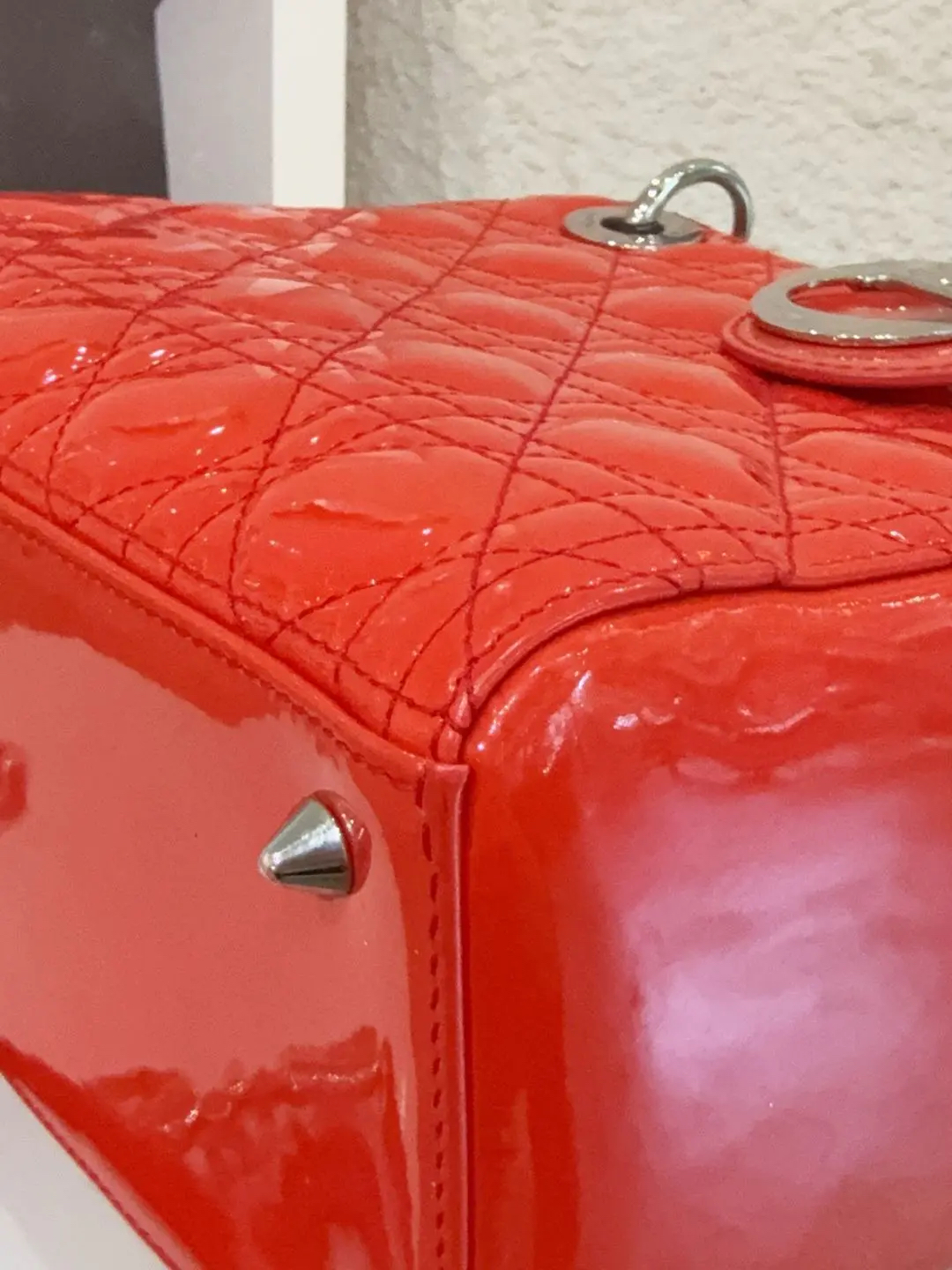 正品二手 Dior 五格 红金 藤格纹 漆皮 戴妃包😚95新 24*21 配件:肩带 防尘袋。 金属正常使用痕迹。热情似火