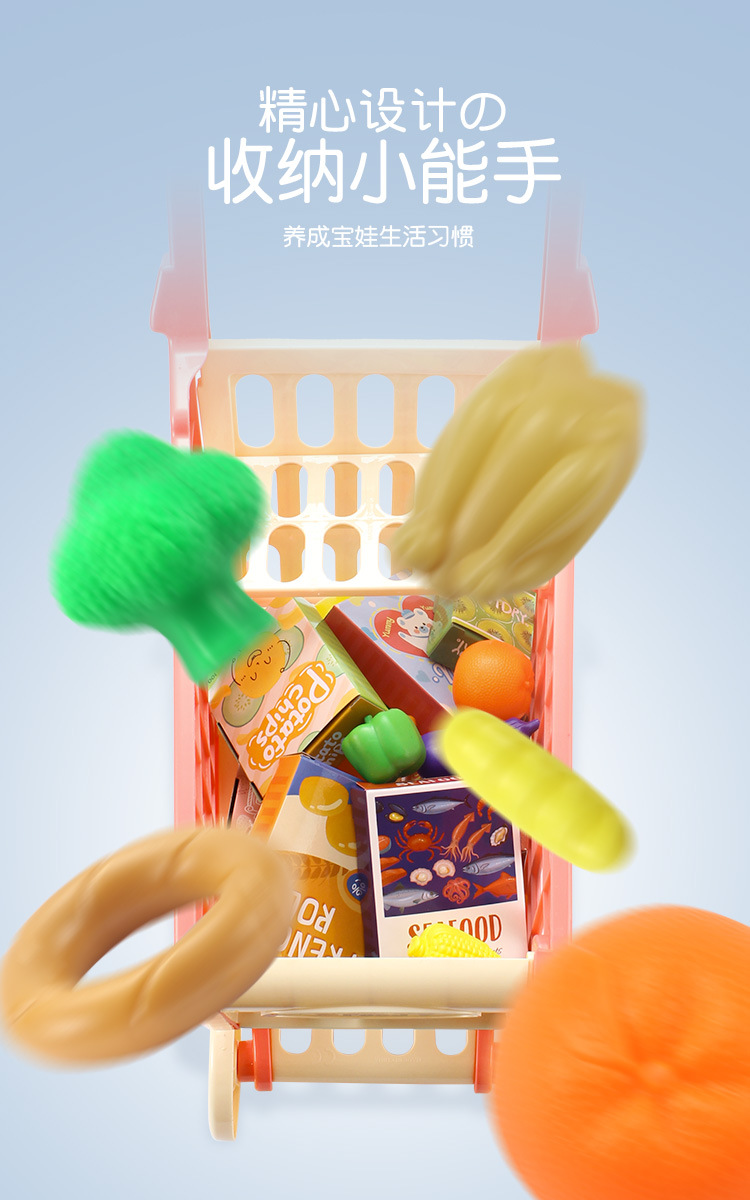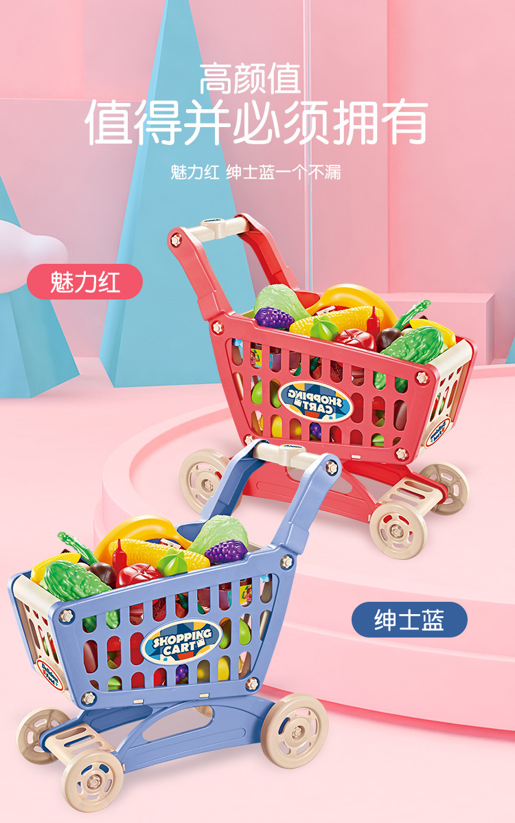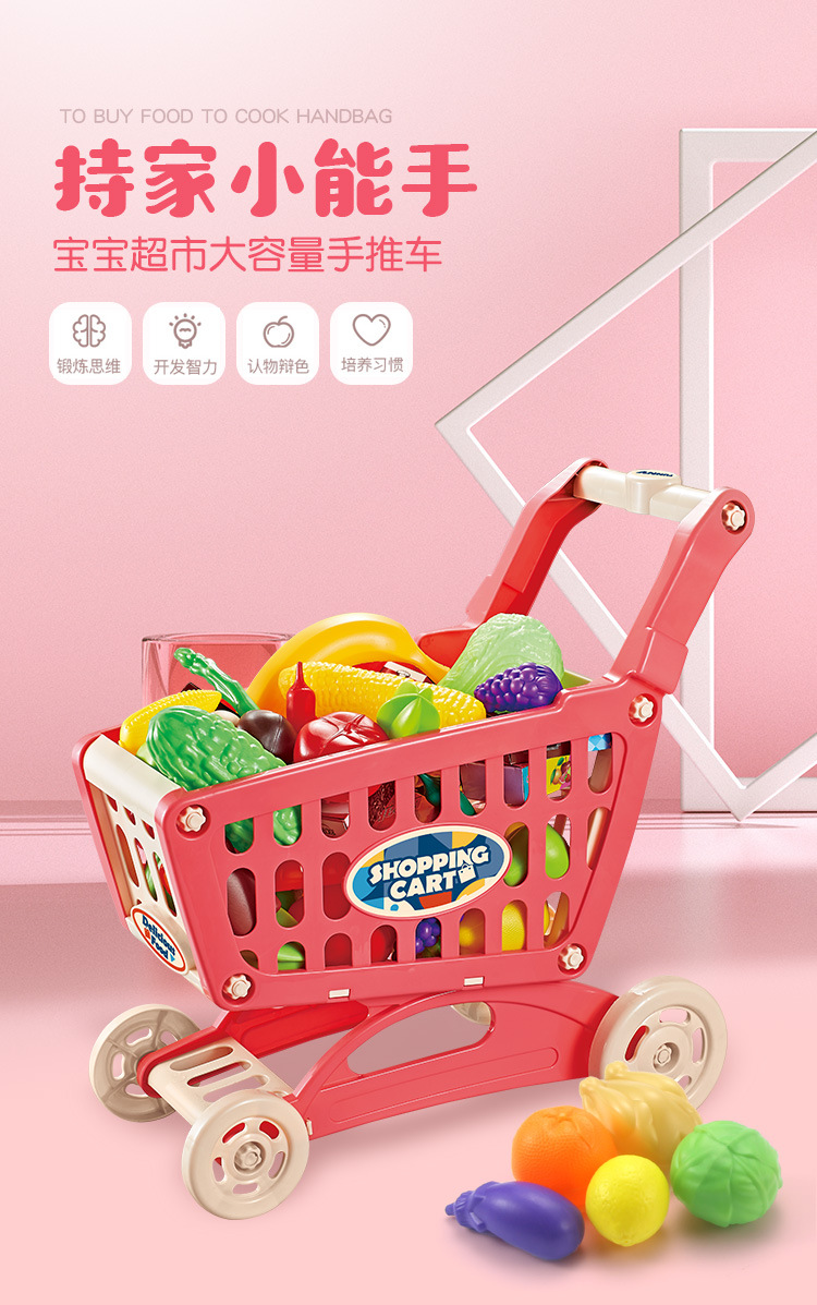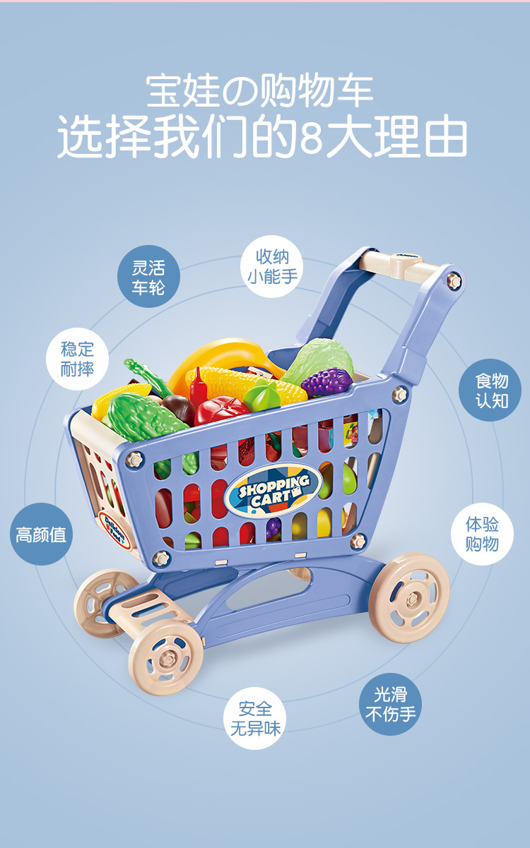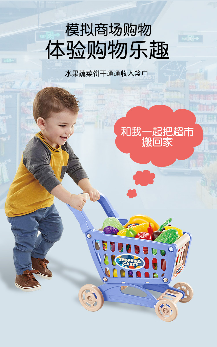 【做持家小能手 体验购物乐趣 】儿童大容量仿真购物车 搭配蔬菜水果切切乐 启蒙宝宝食物认知