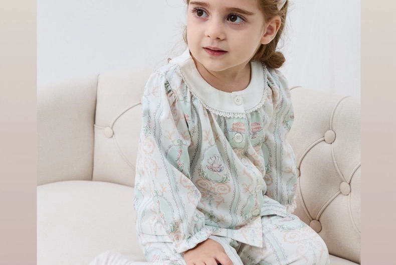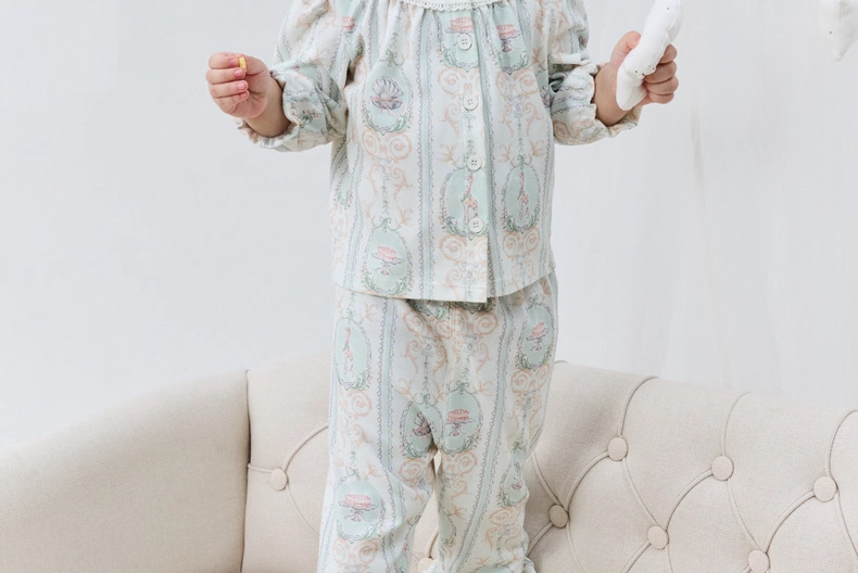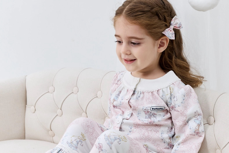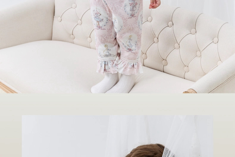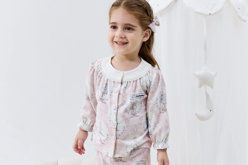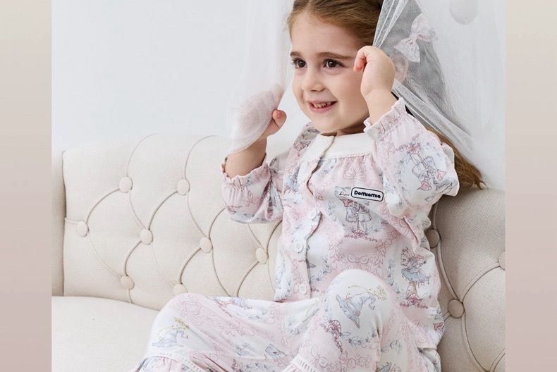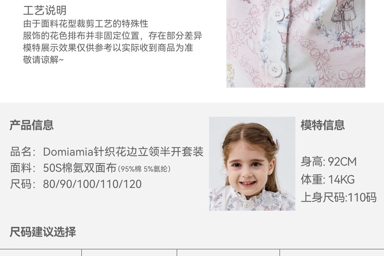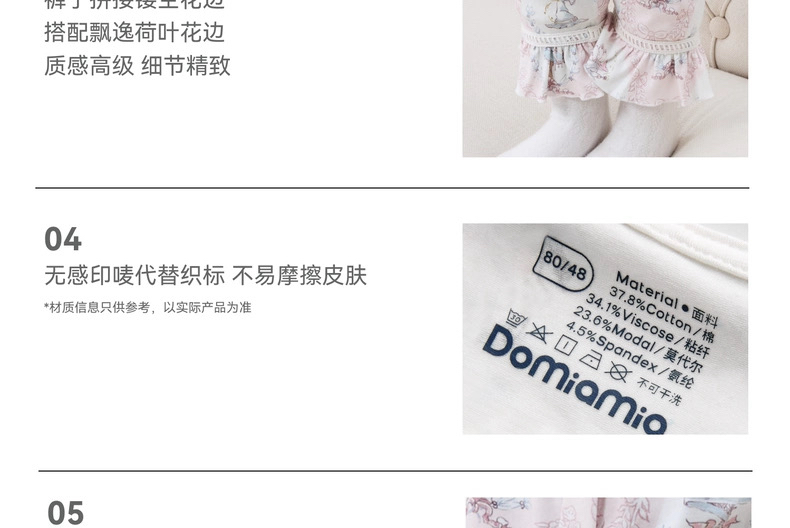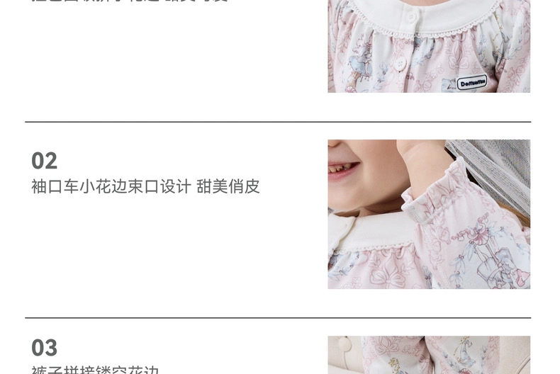 Domiamia 女宝宝针织花边袖圆领开襟套装 春秋款时尚纯棉分体套装