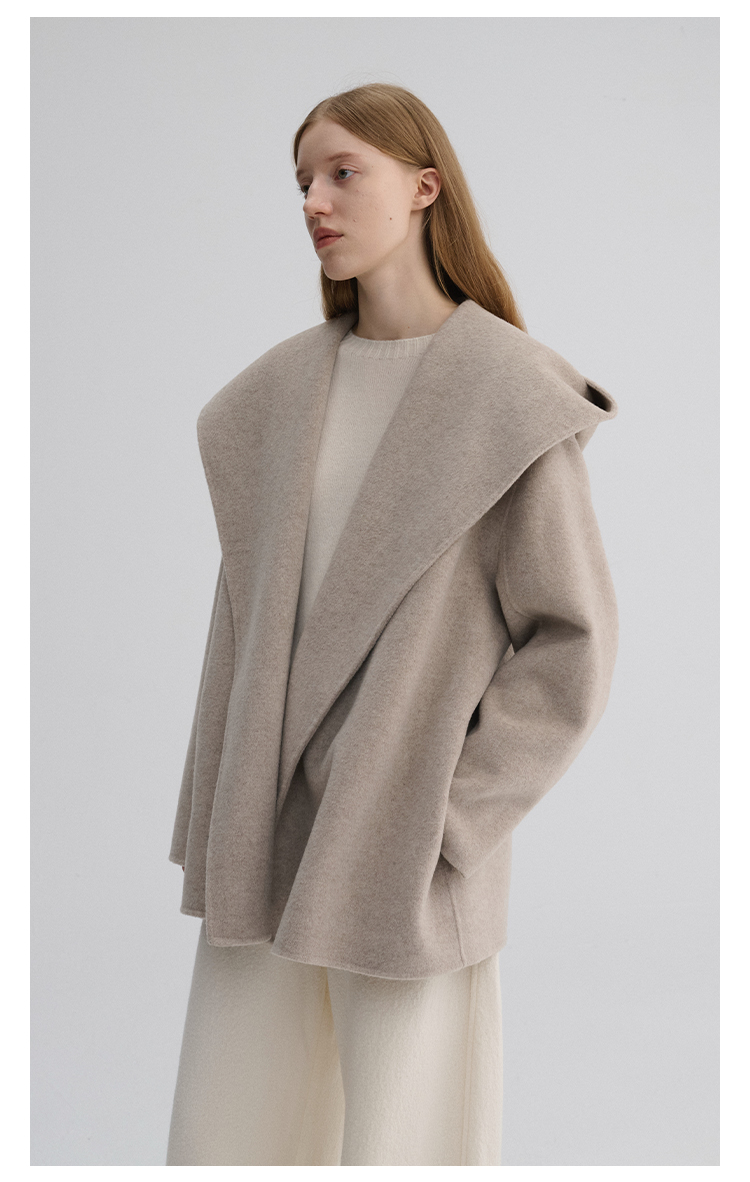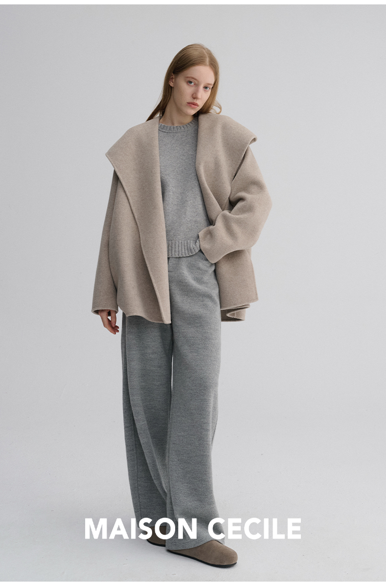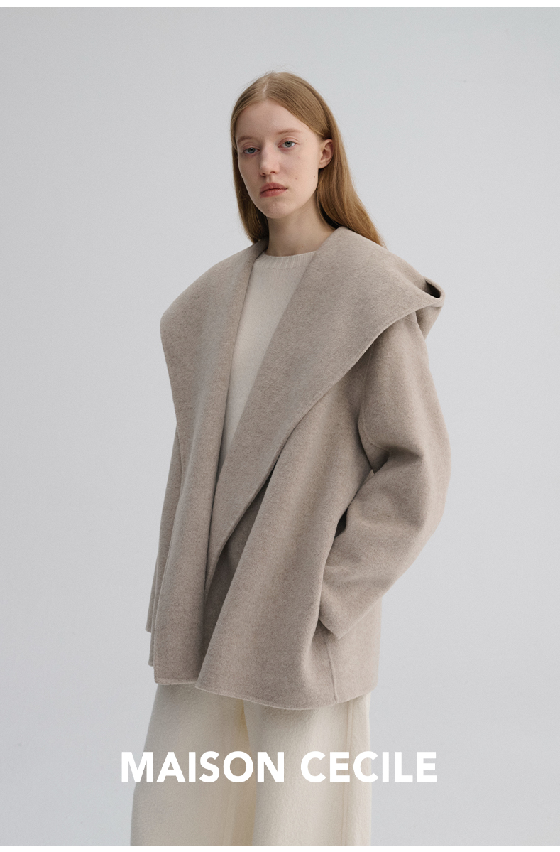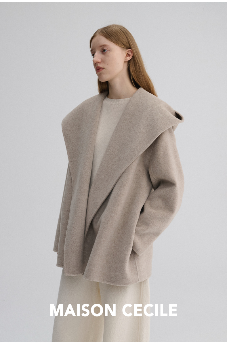 MAISON CECILE 羊驼毛羊毛混纺双面呢浴袍式大翻领廓形短款大衣