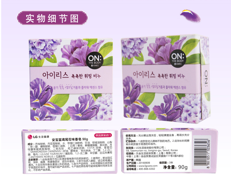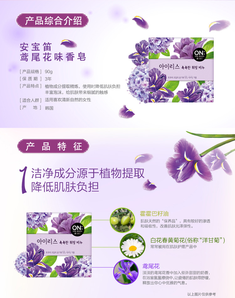 安宝笛(ON THE BODY) 韩国进口 鸢尾花味洁肤香皂90g 温和清洁 深层清洁