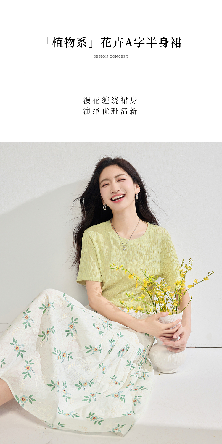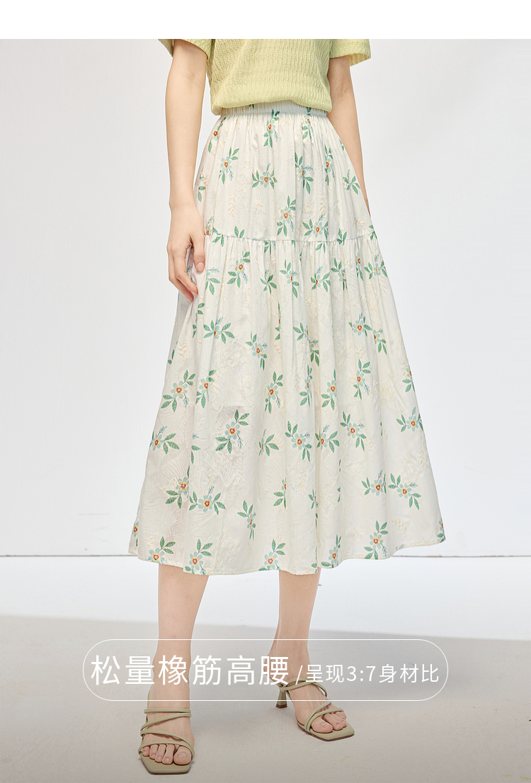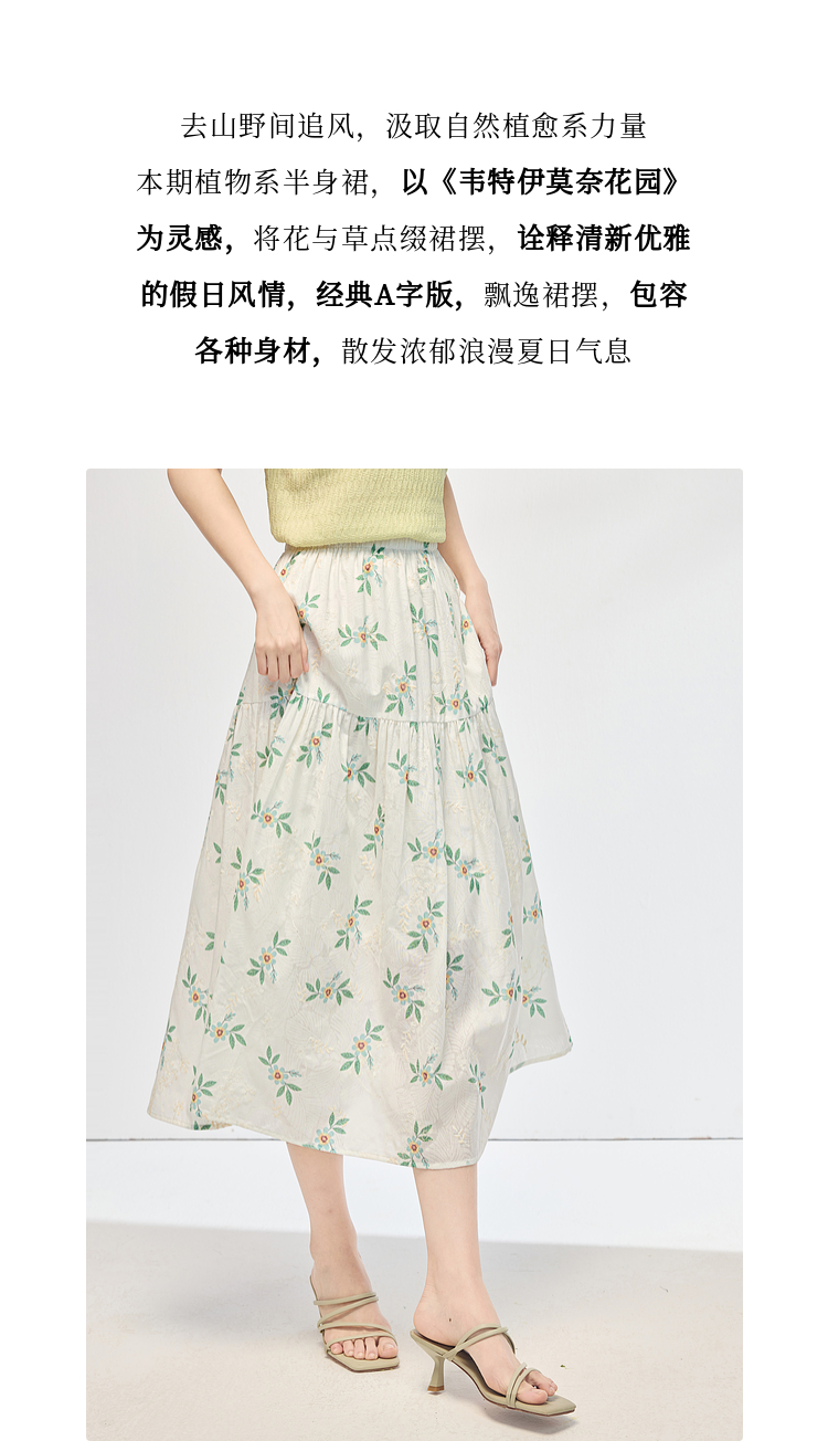 【专属特价】熙世界小清新植物碎花半身裙女2025夏季新款高腰显瘦中长款a字裙