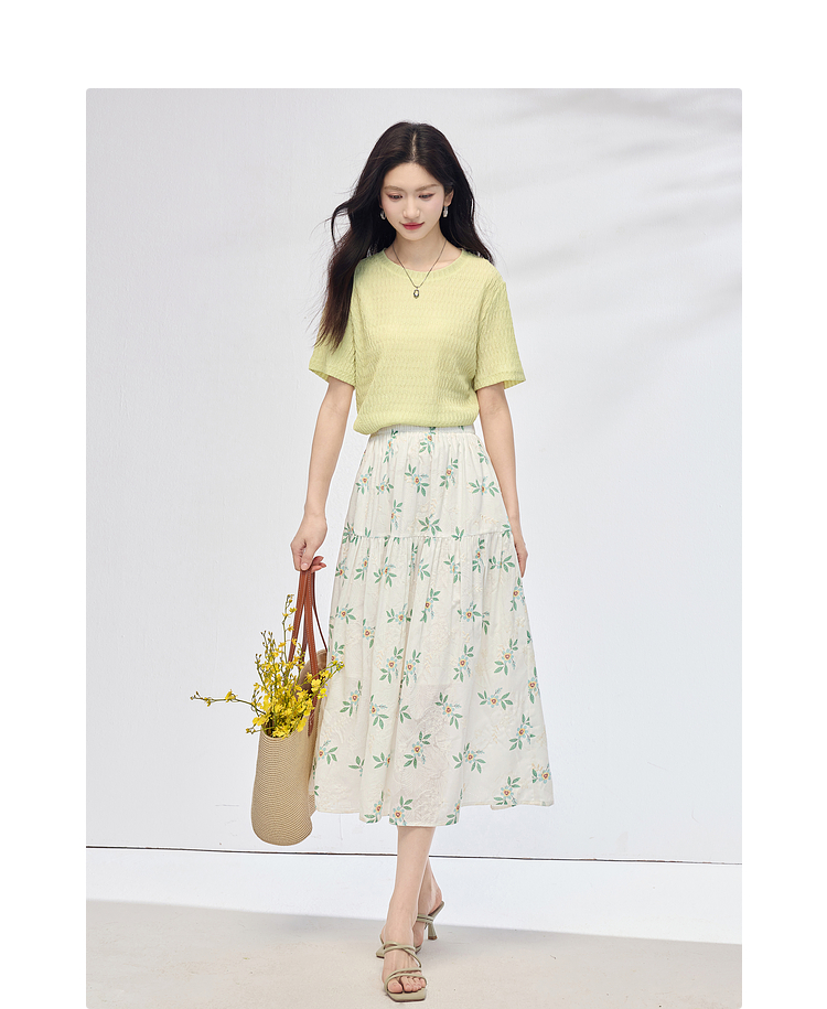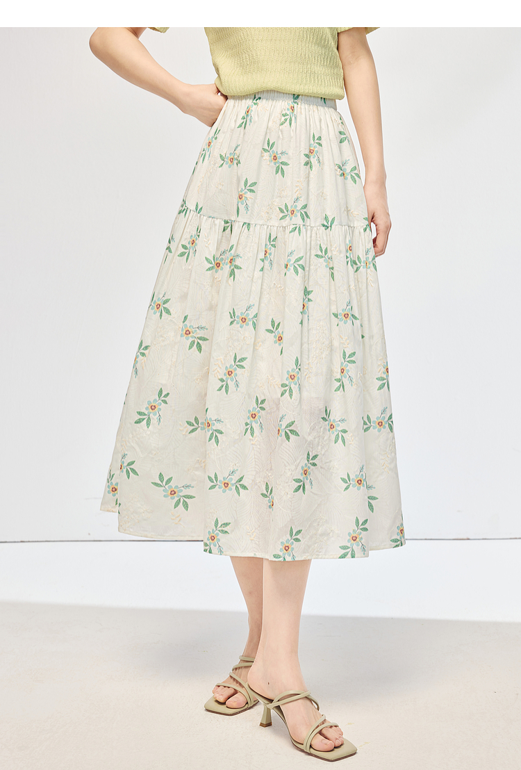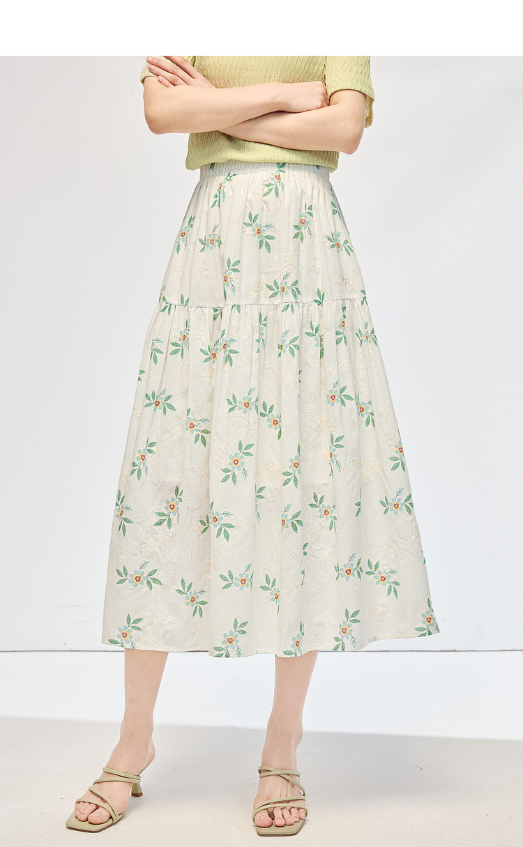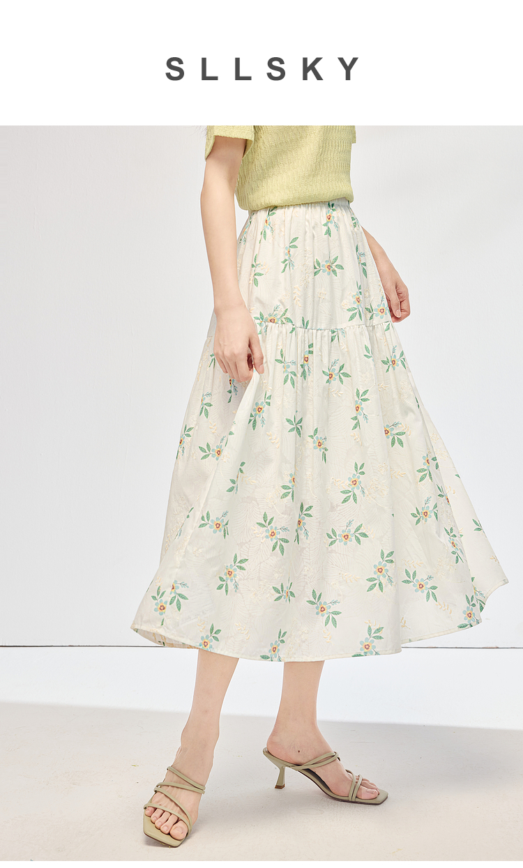 【专属特价】熙世界小清新植物碎花半身裙女2025夏季新款高腰显瘦中长款a字裙