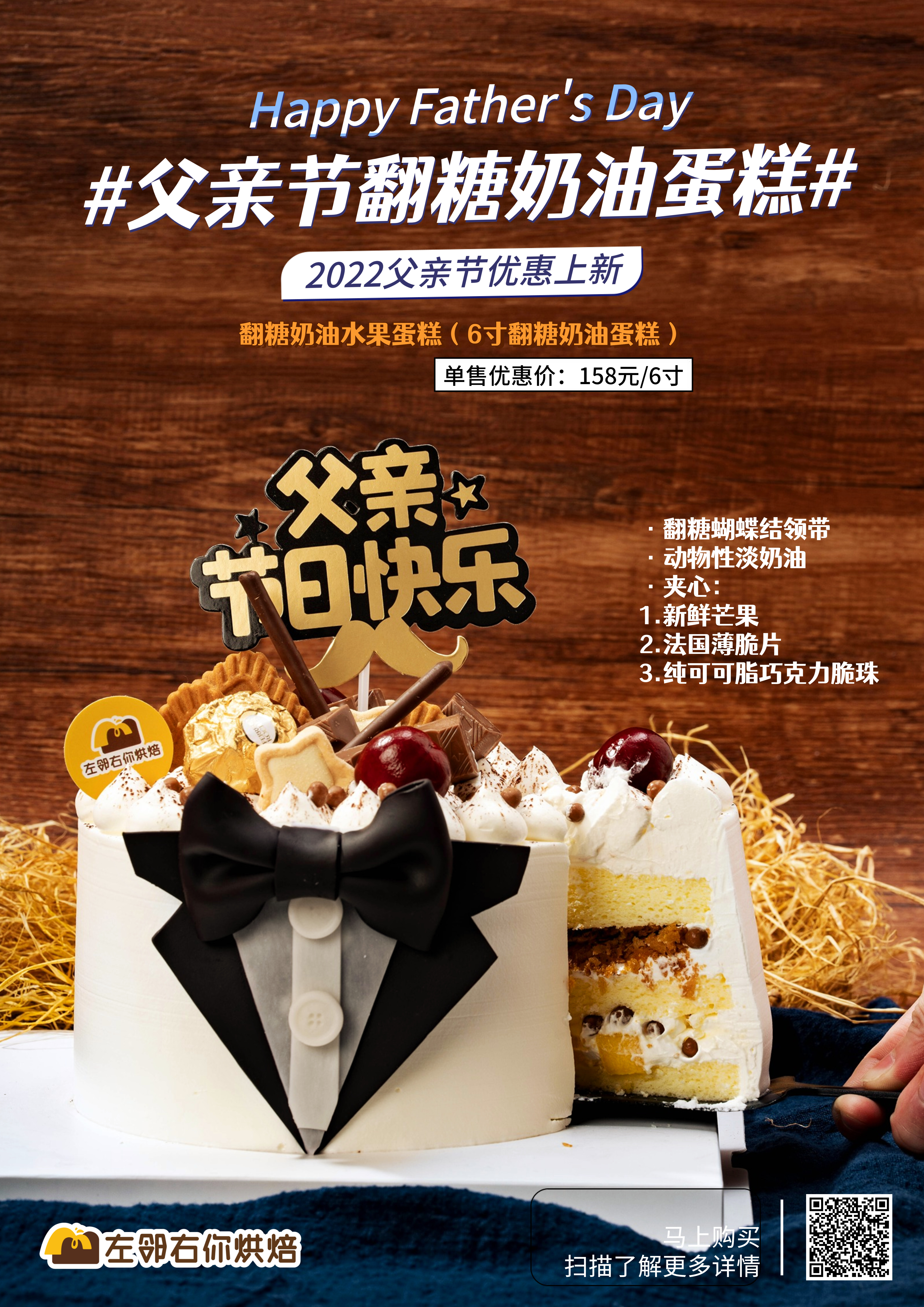 【下架勿动】2022父亲节上新 | 领带蝴蝶结翻糖奶油水果蛋糕 动物性淡奶油水果蛋糕 送给爸爸