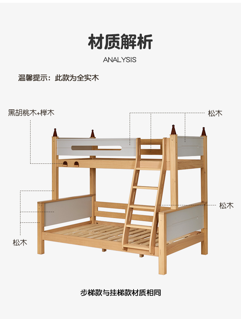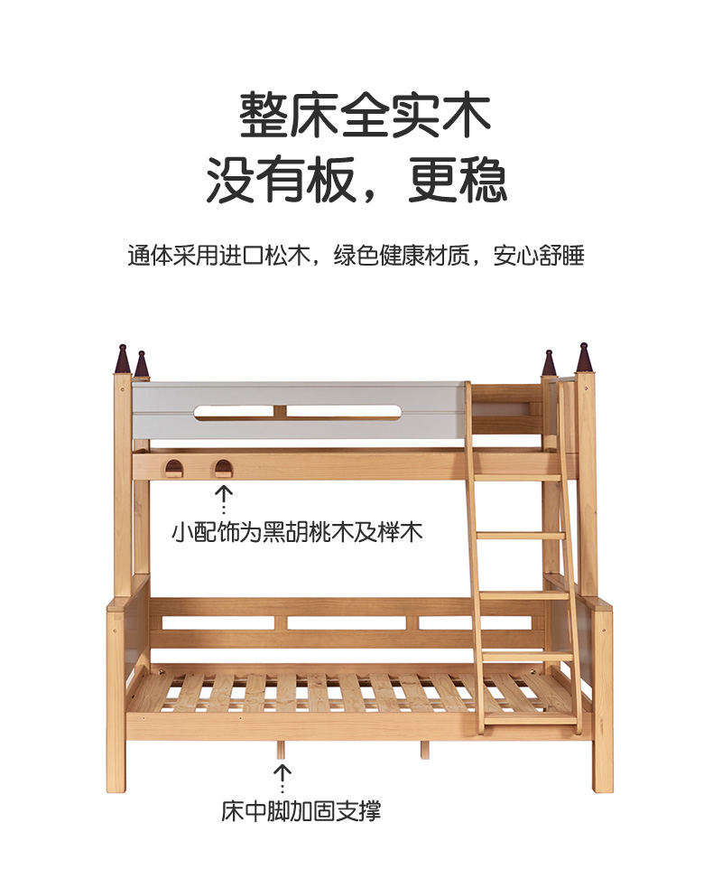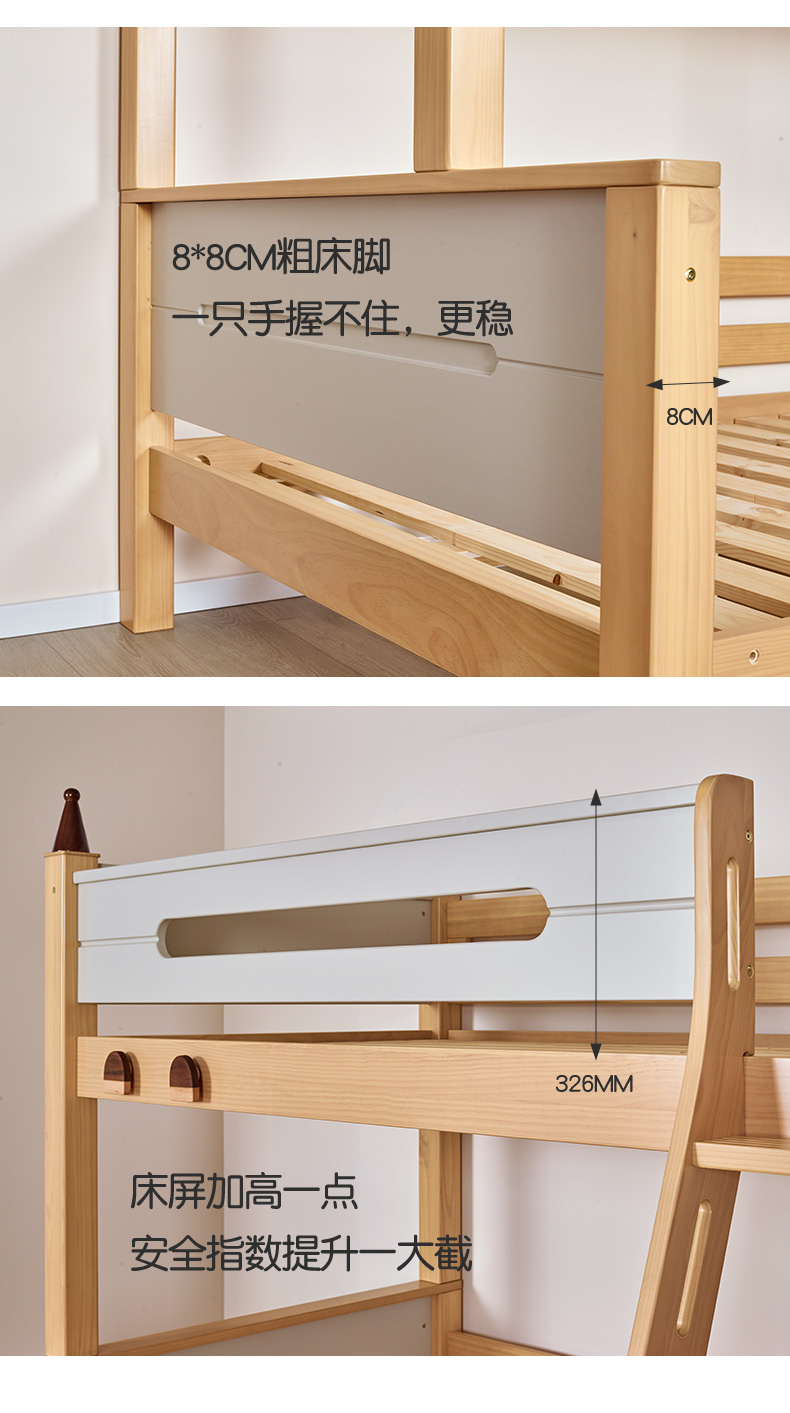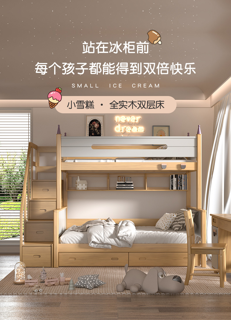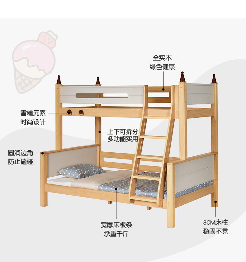喜梦宝双层床全实木高低床松木上下铺成人床儿童床现代简约子母床 小雪糕
