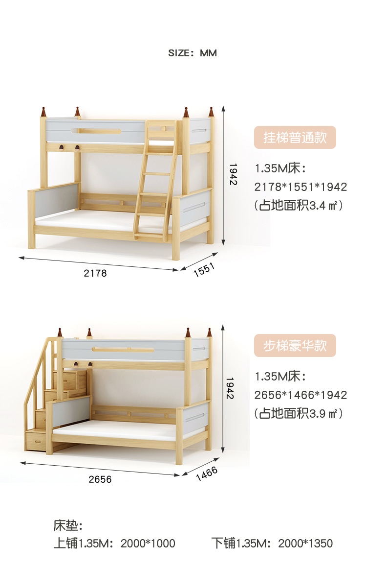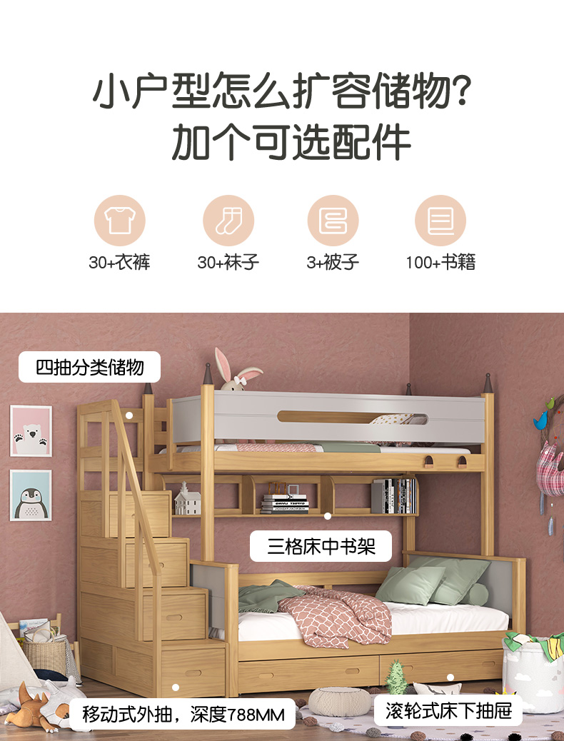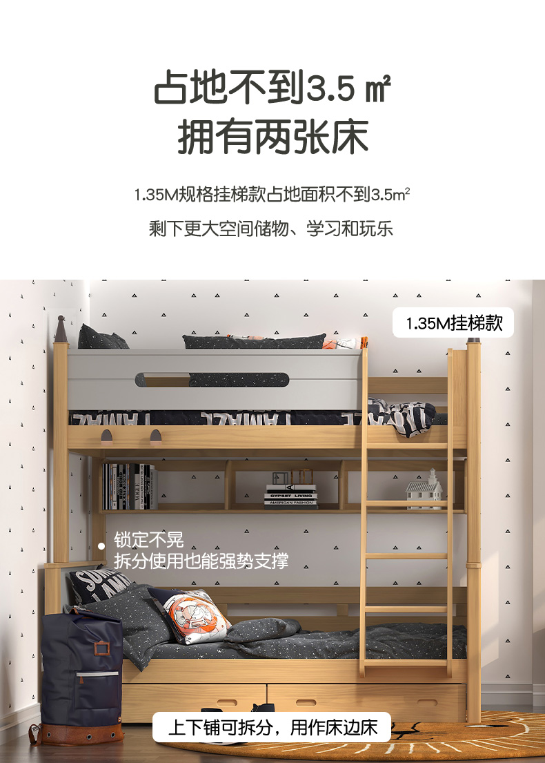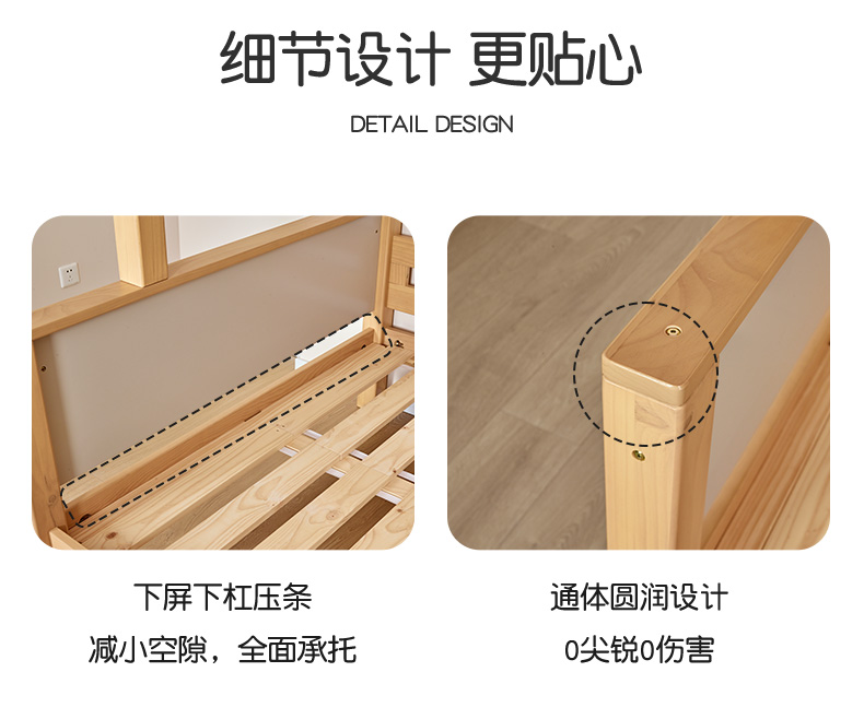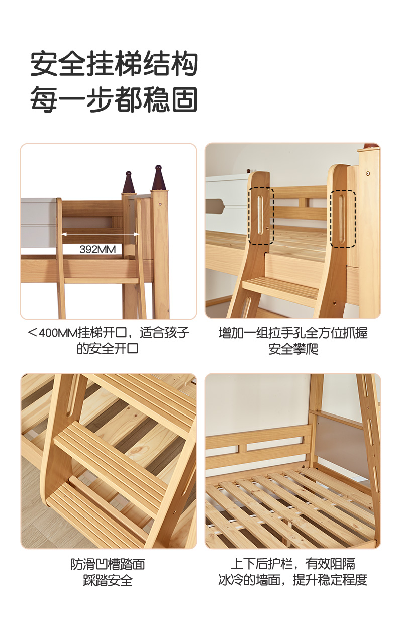 喜梦宝双层床全实木高低床松木上下铺成人床儿童床现代简约子母床 小雪糕