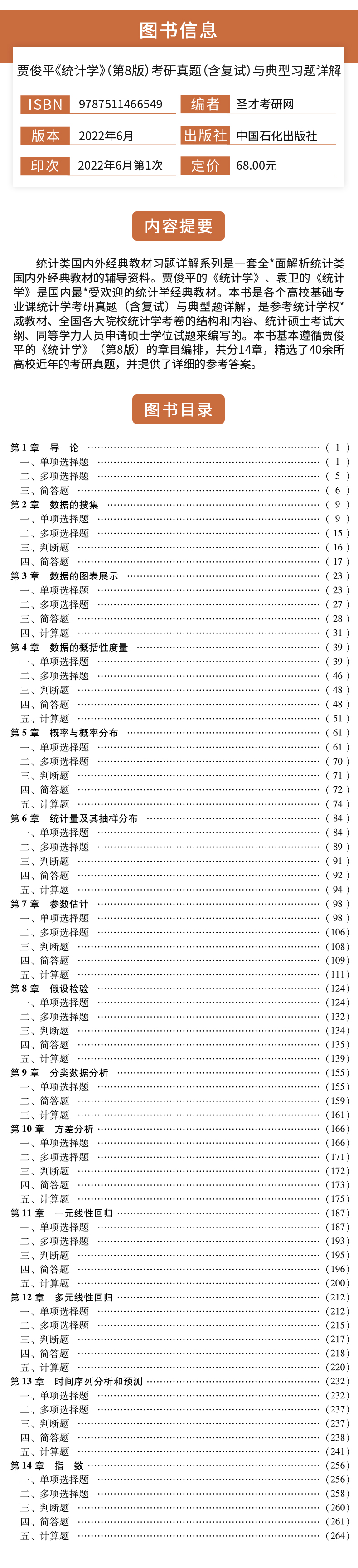 书名:贾俊平《统计学》(第8版)考研真题(含复试)与典型习题详解