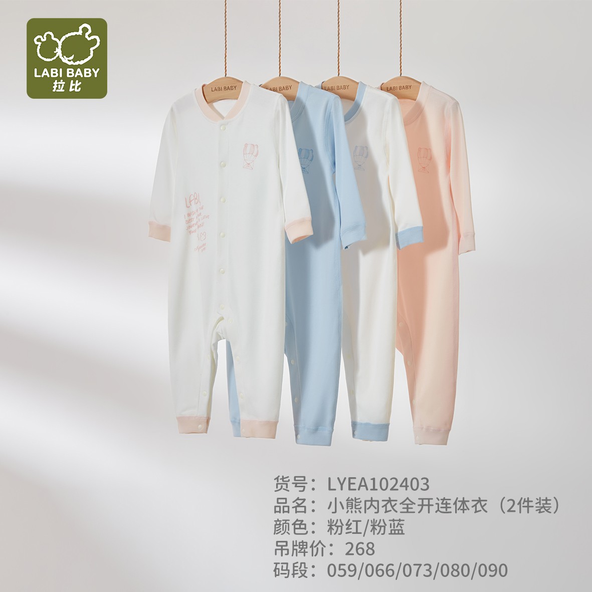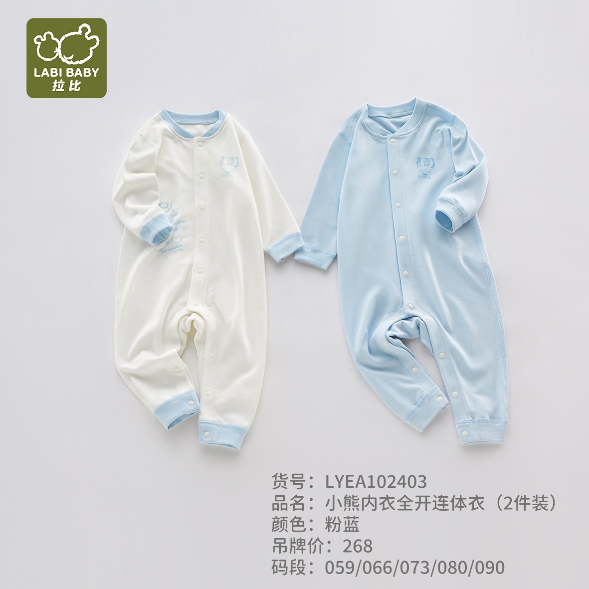 特惠拉比内衣I5-3小熊内衣全开连体衣(2件装)LYEA102403
