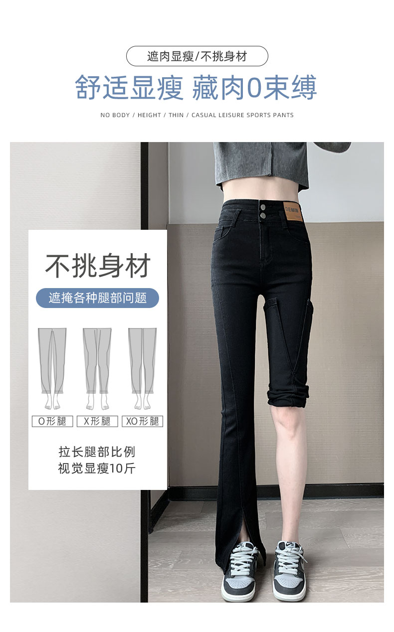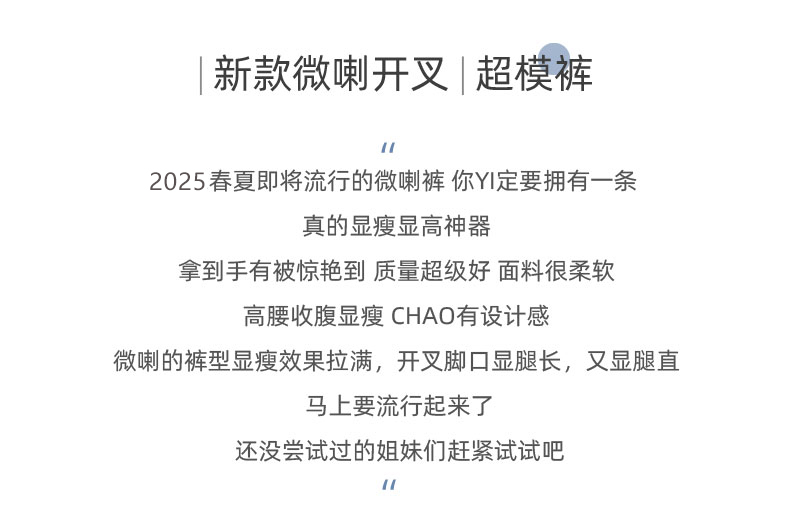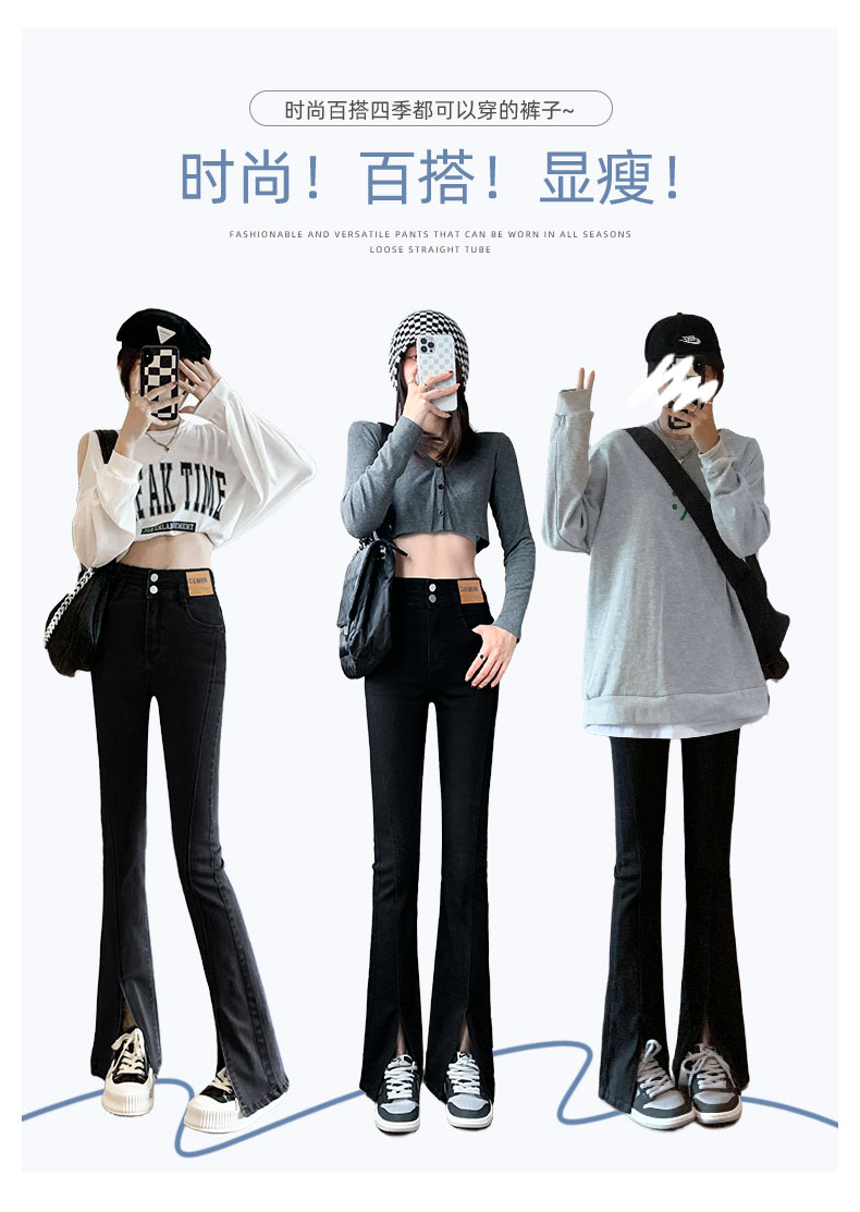 高腰显瘦喇叭裤 CHAO有设计感微喇开叉脚口显腿长时尚百搭