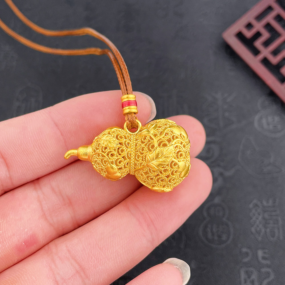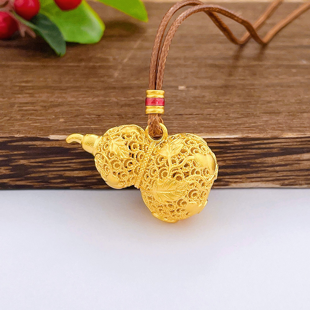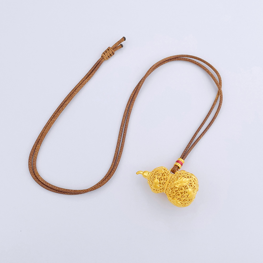 【限时克减150元】足金999.9 古法空心挂绳珐琅镂空花丝福禄爬藤葫芦吊坠(含配件,不可拧开)(ANWZGFDZ00442-3)(预售产品下单后不退款不退货不换货不补差价)