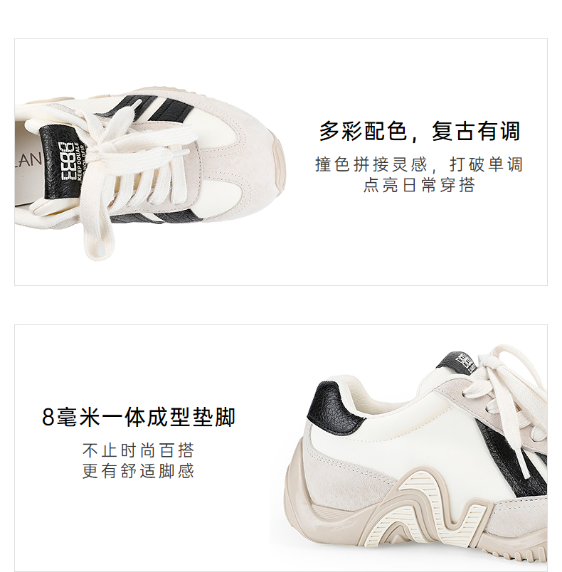 千百度薄底德训鞋女款复古多巴胺透气时尚运动休闲鞋A25457801
