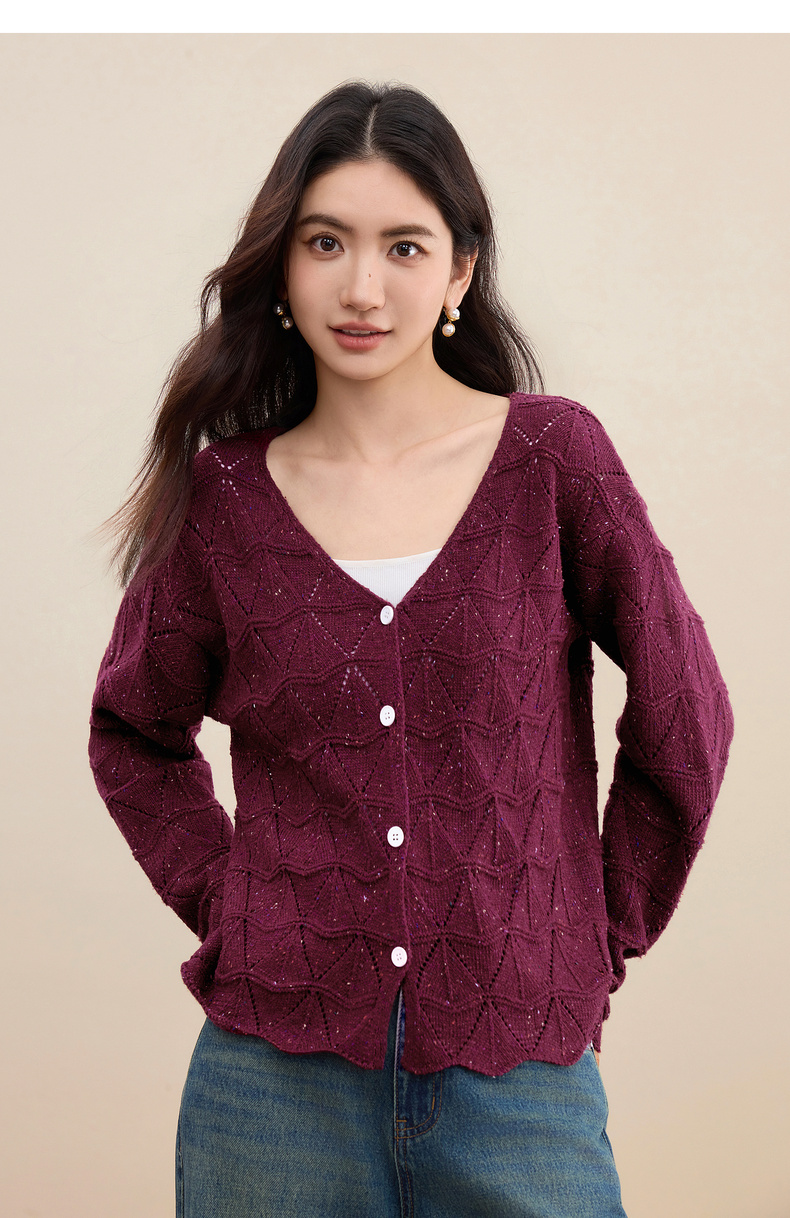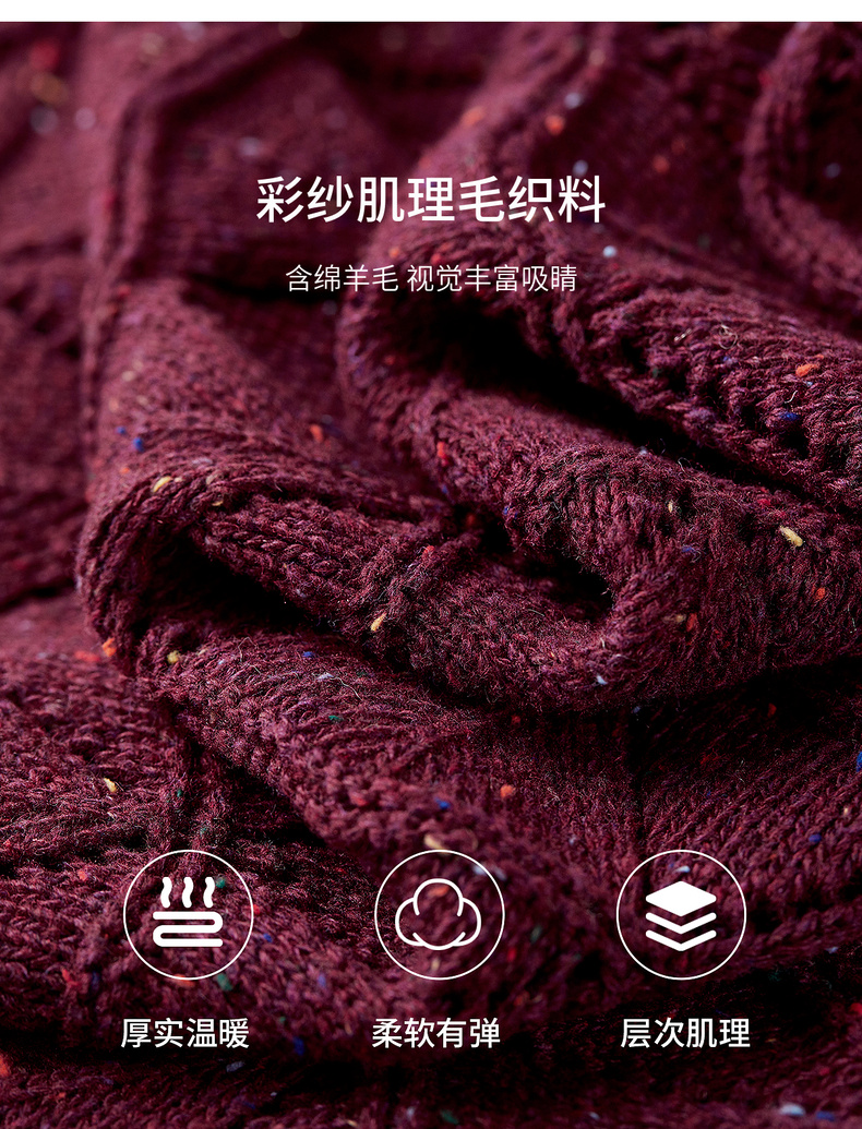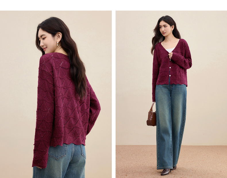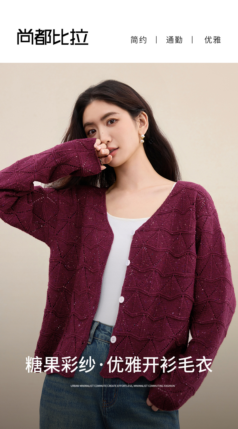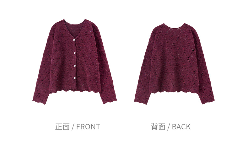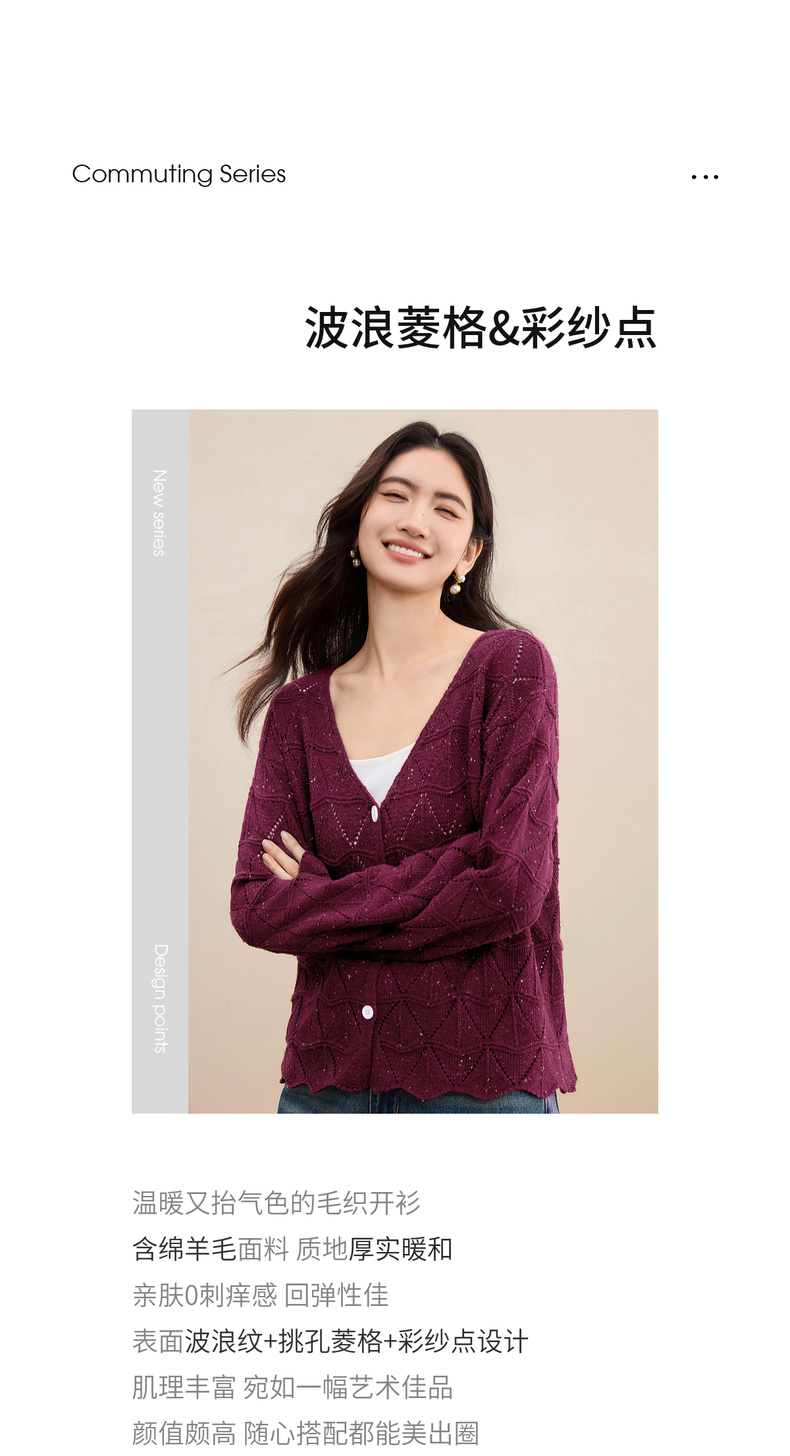 【内购】【含绵羊毛】通勤V领撞色单排扣毛织宽松落肩袖厚保暖开衫毛衣-W53EB3466