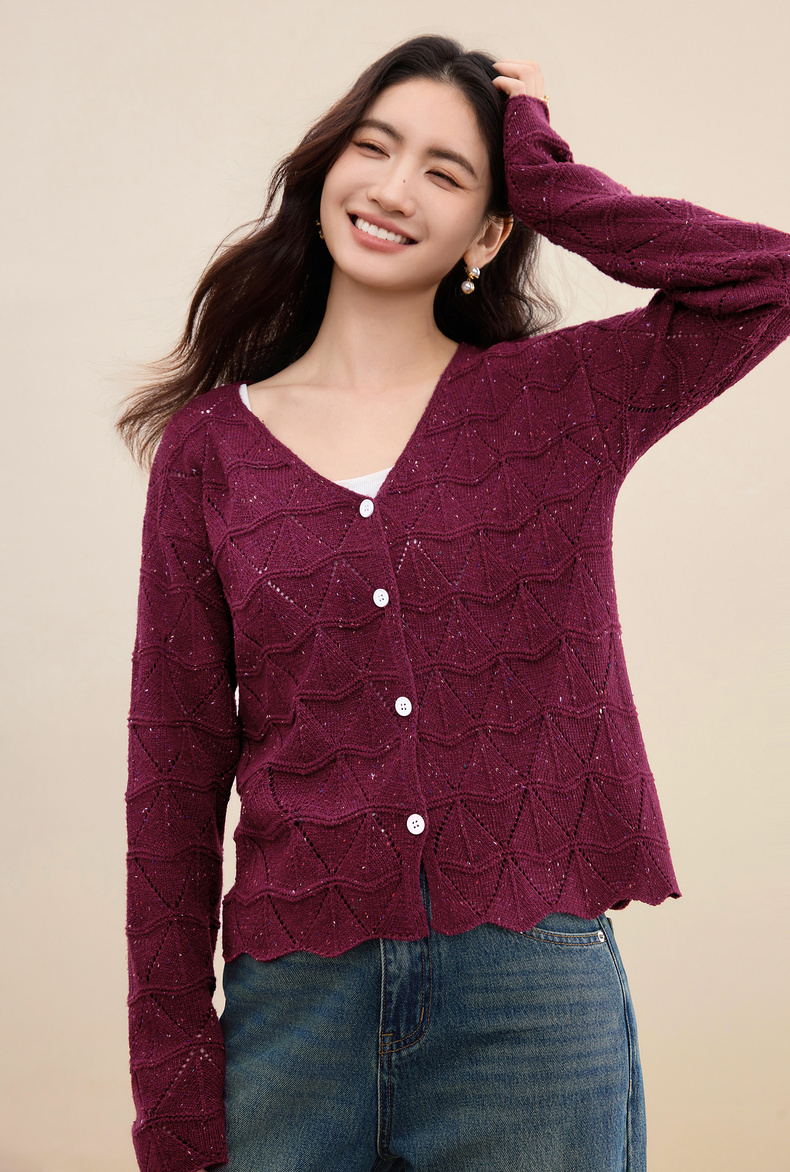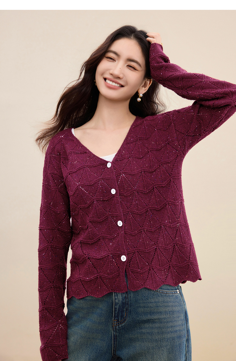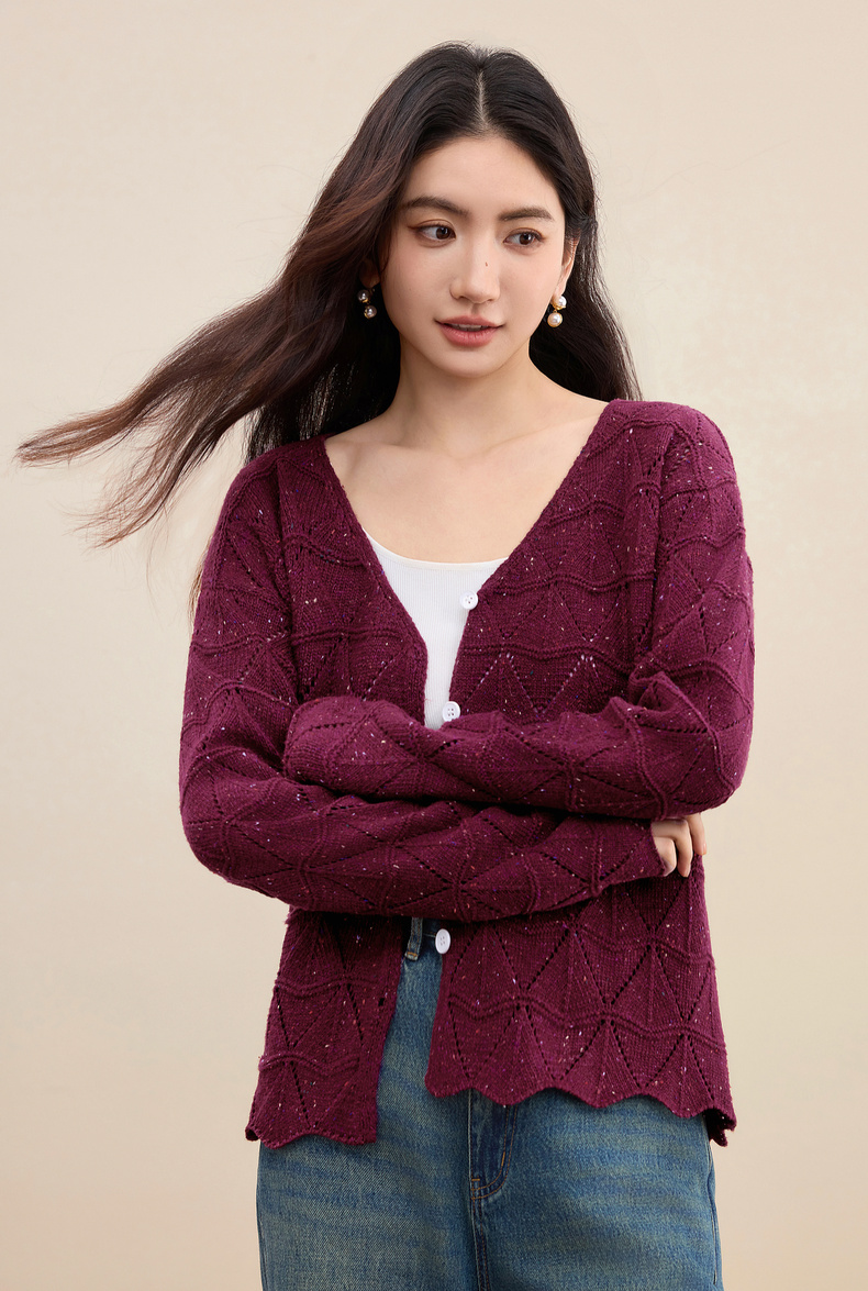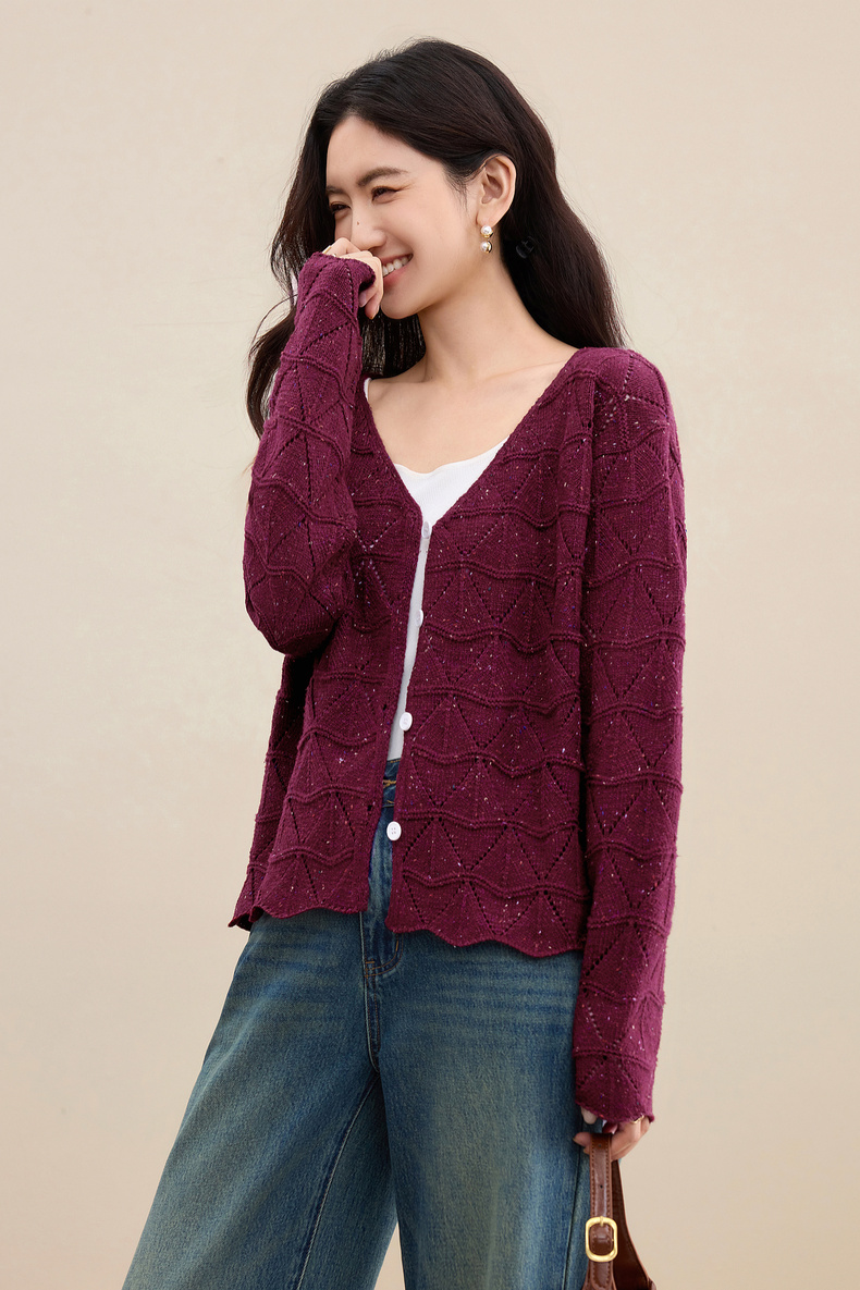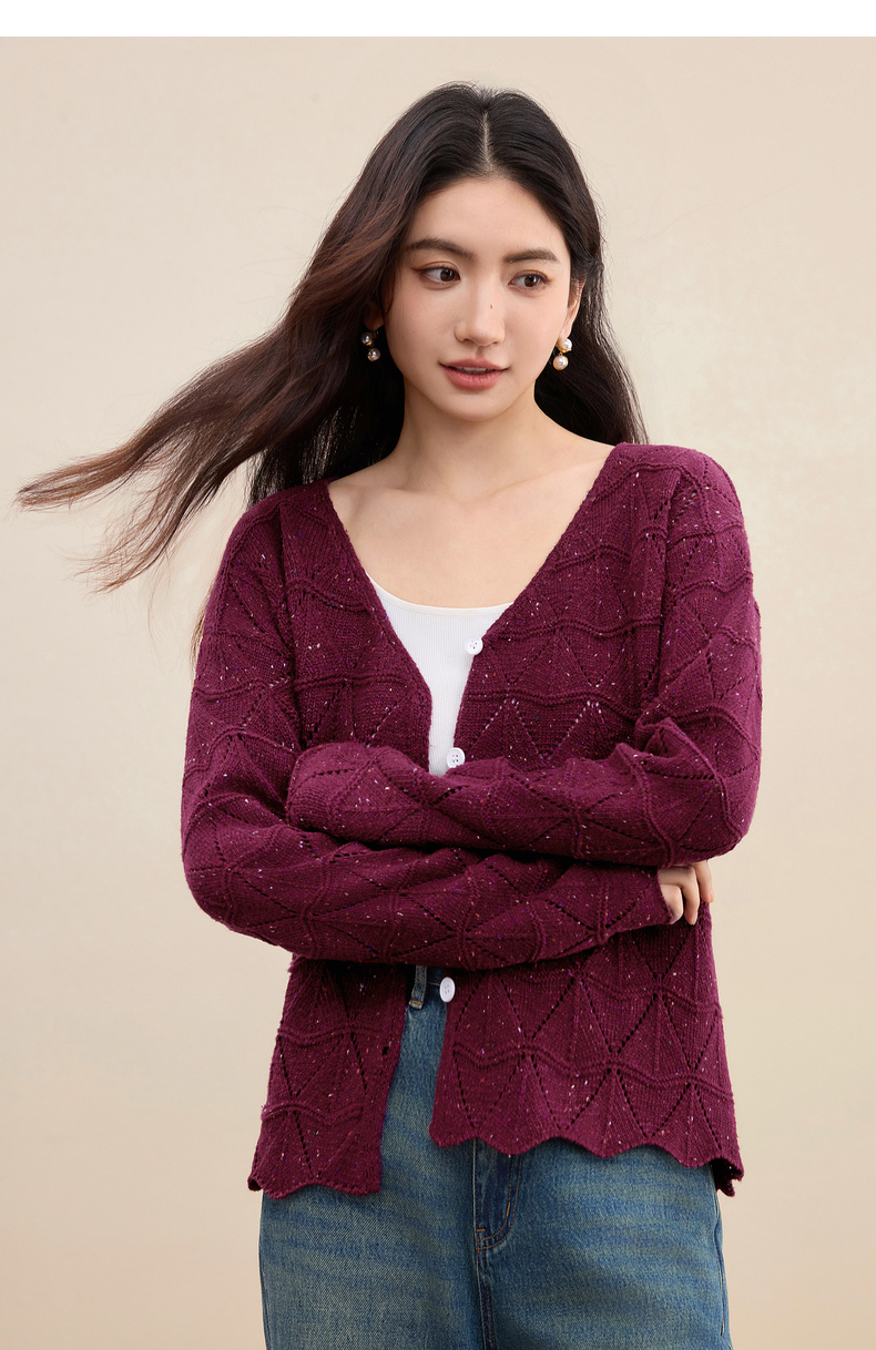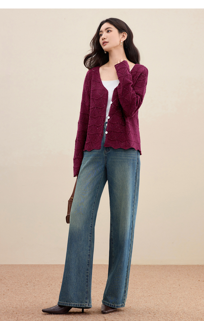 【内购】【含绵羊毛】通勤V领撞色单排扣毛织宽松落肩袖厚保暖开衫毛衣-W53EB3466