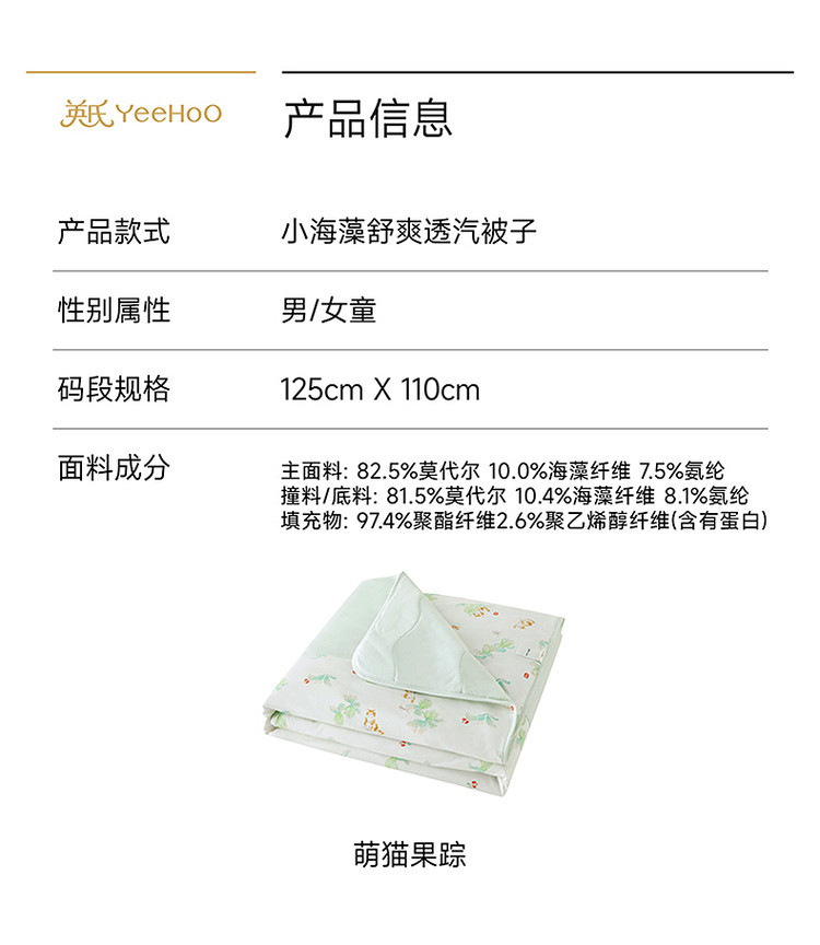 英氏婴儿被子10A抑菌空调被新款幼儿园午睡四季盖毯YEBBJ1S007A