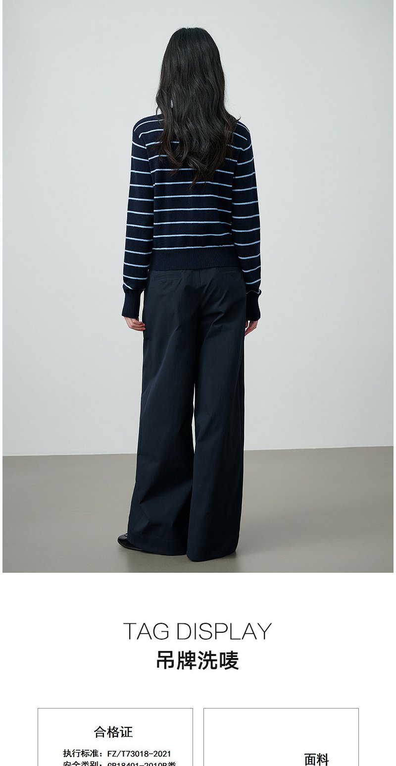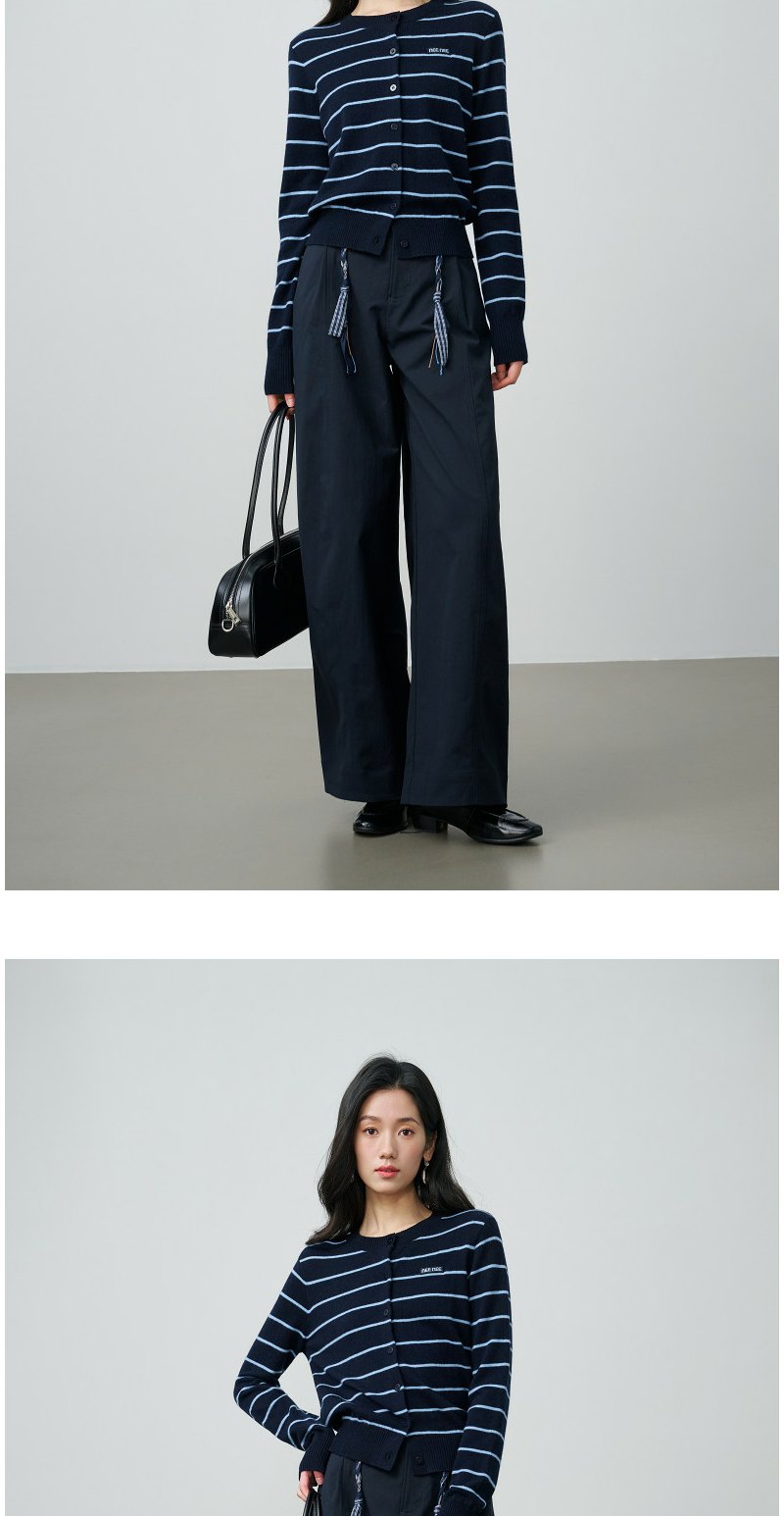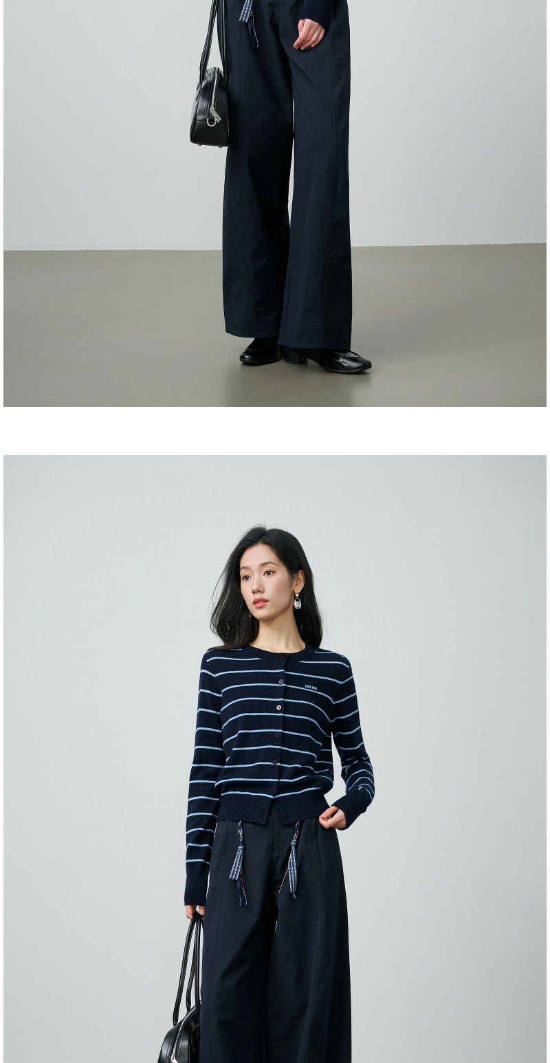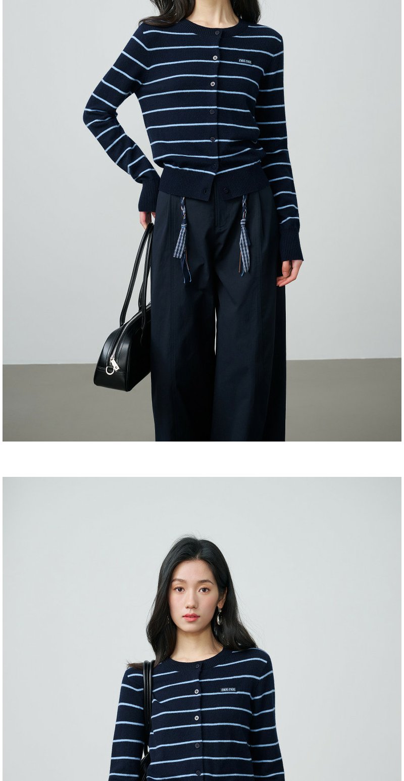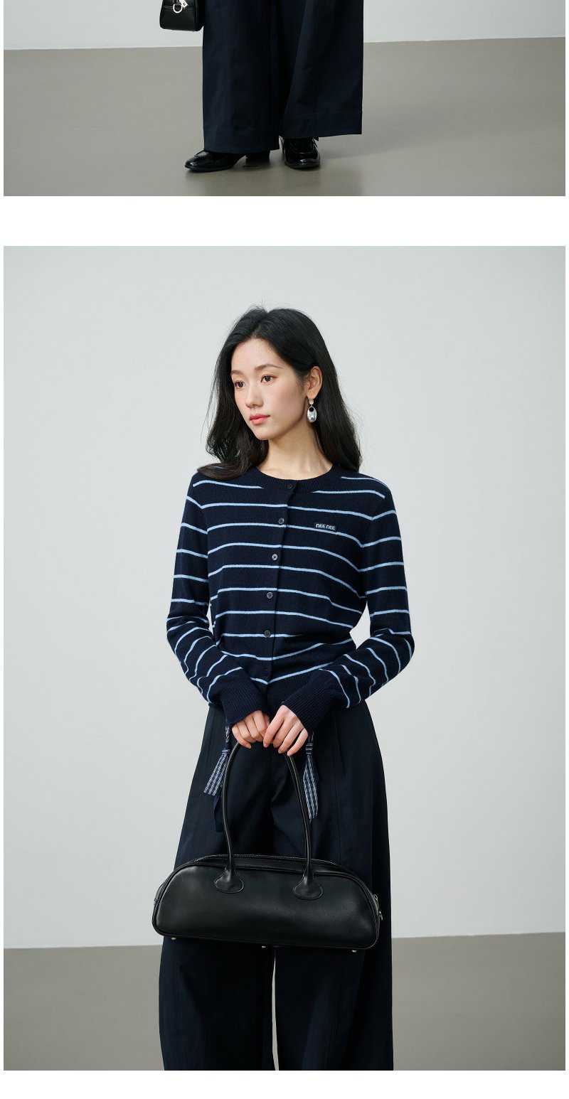 NEELLY纳俪商场同款春季新款藏青蓝条纹短针织开衫女显白休闲上衣N26014A03315