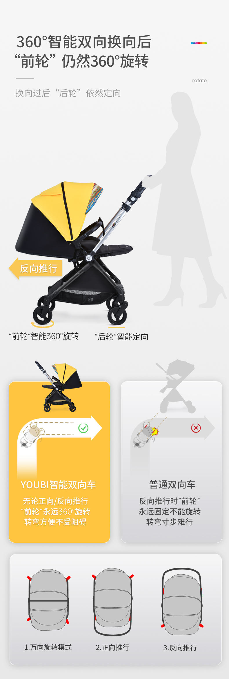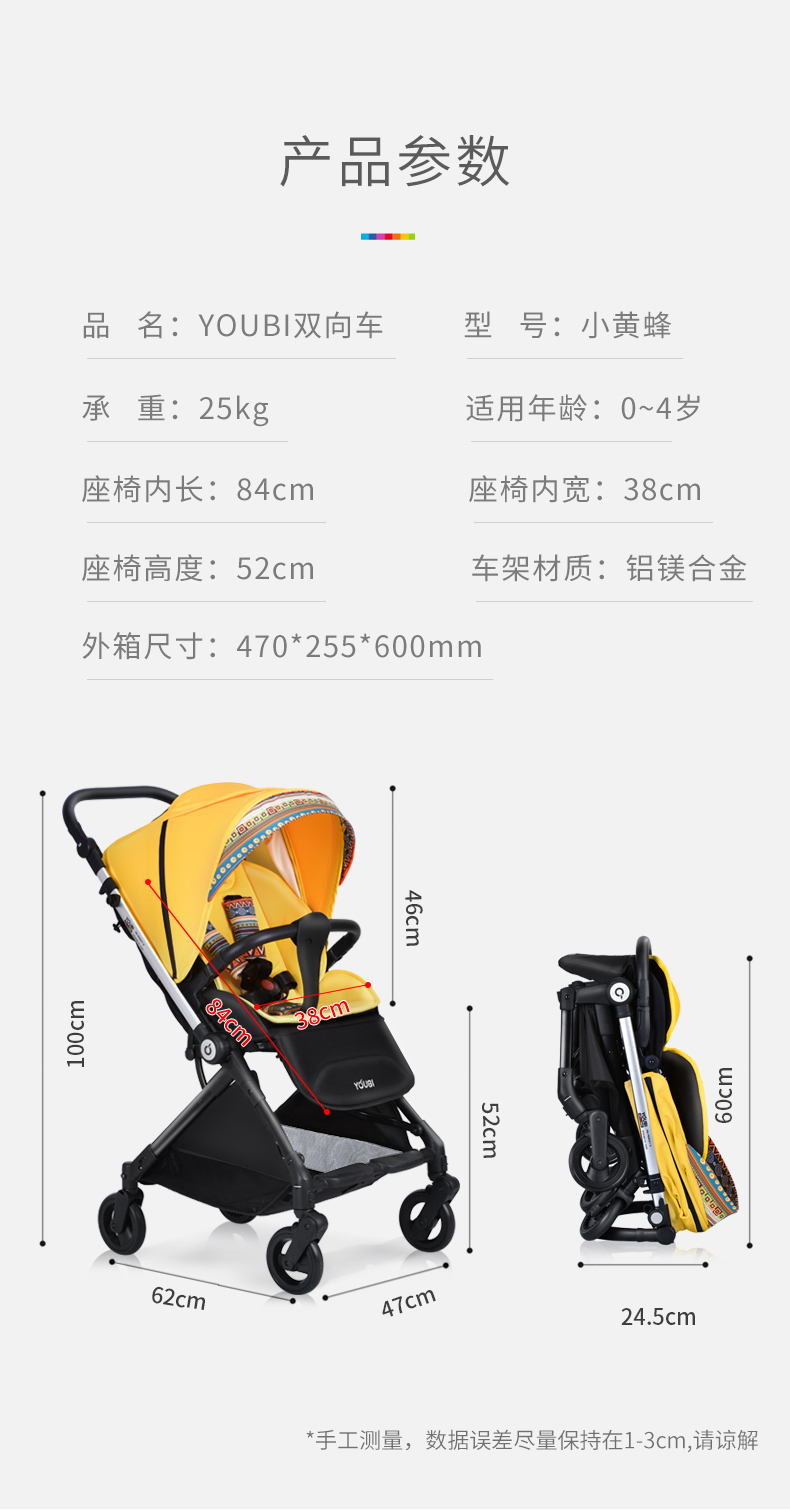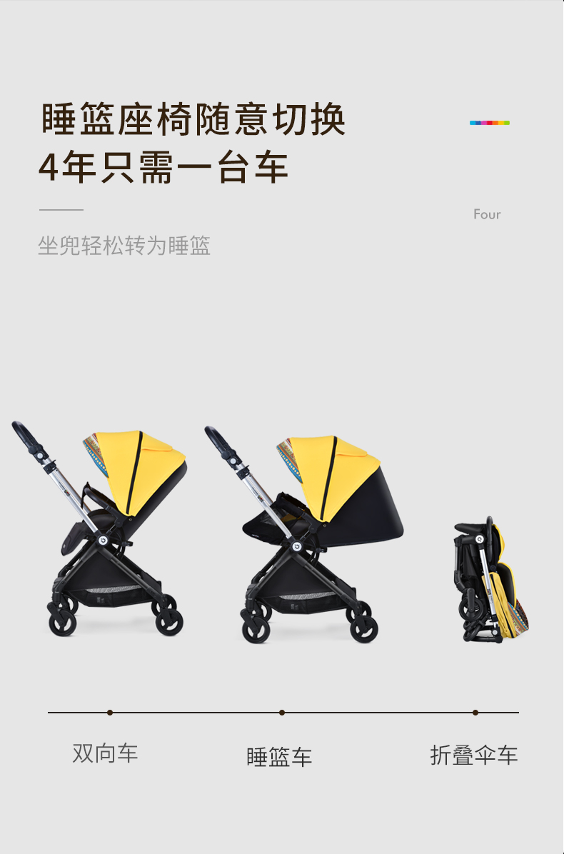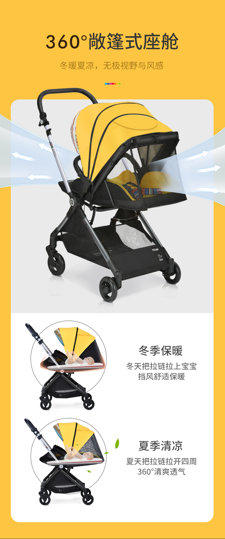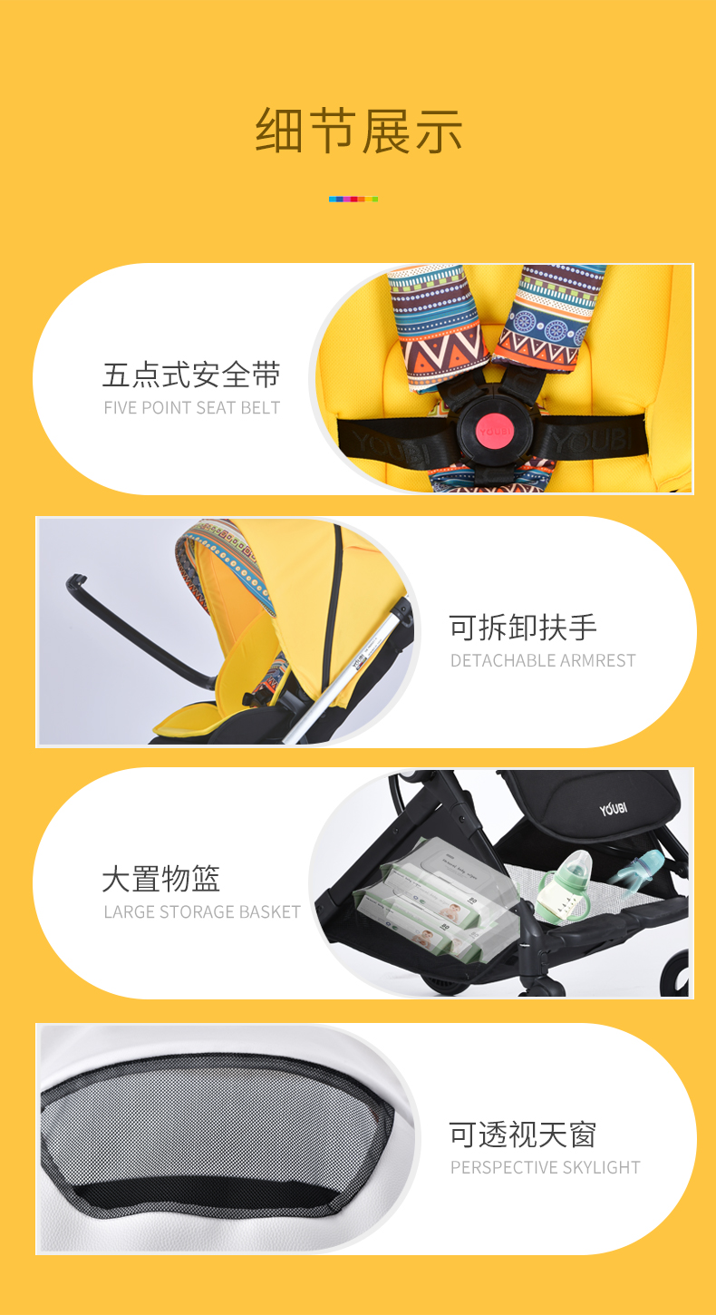 2021【新】youbi小黄蜂婴儿推车可坐可躺高景观双向折叠LWSQ