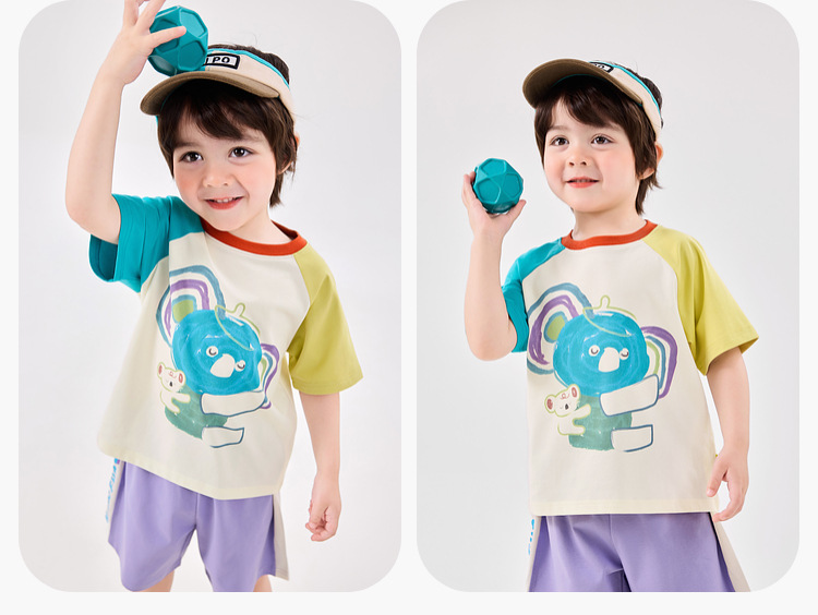 [7A抑菌]嘟嘟家儿童插肩袖T恤夏装宝宝短袖上衣夏季男童半袖童装