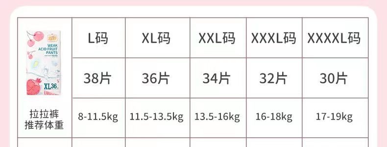 (2包)【一般贸易】宜婴 弱酸水果裤系列纸尿裤拉拉裤X/M/L/XL/XXL/XXXL码男女通用尿不湿
