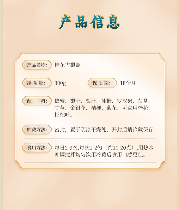 【清嗓润喉】益初汉堂桂花古梨膏 老少皆宜 四季可用 即泡即饮 300g/瓶