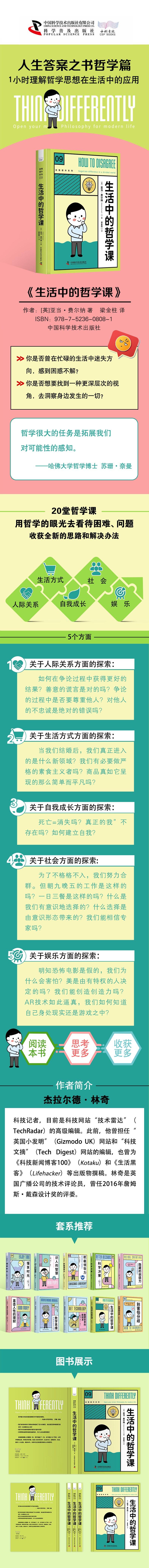 1.本书为“人生答案之书哲学篇”。读者在生活中会遇到很多令其迷茫的时刻,用哲学的眼光去看待困难、问题,可能会获得全新的思路和解决办法。2.《生活中的哲学课》是“自我提升系列”的第9本。自我提升系列旨在帮助读者用科学的眼光看世界。