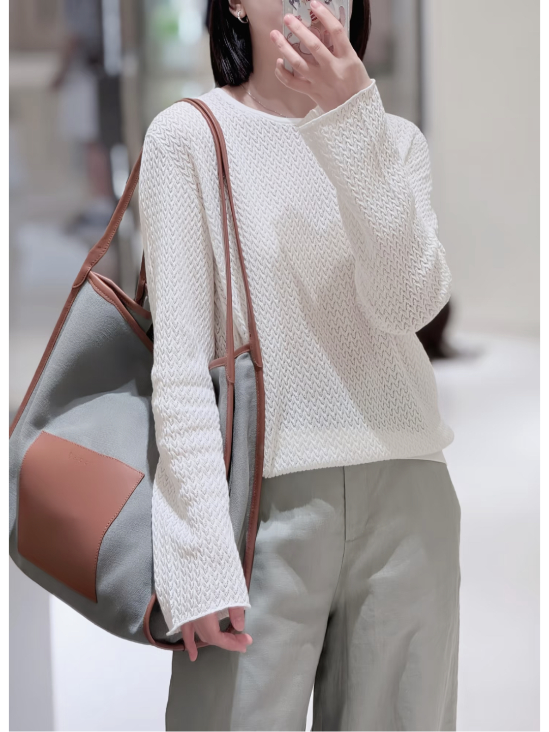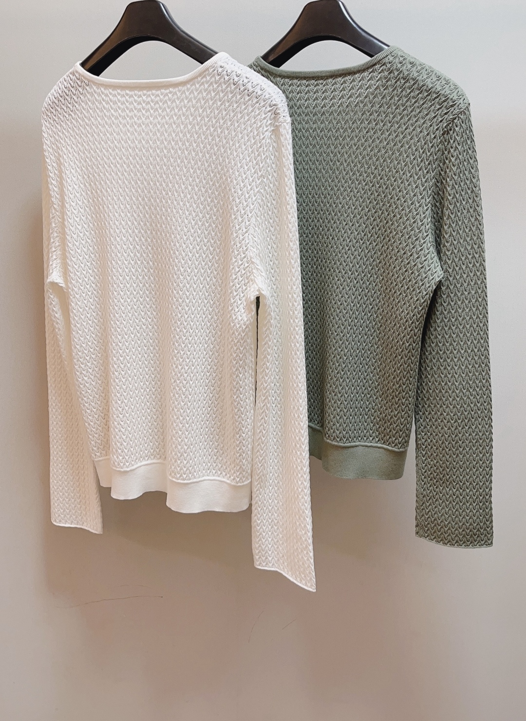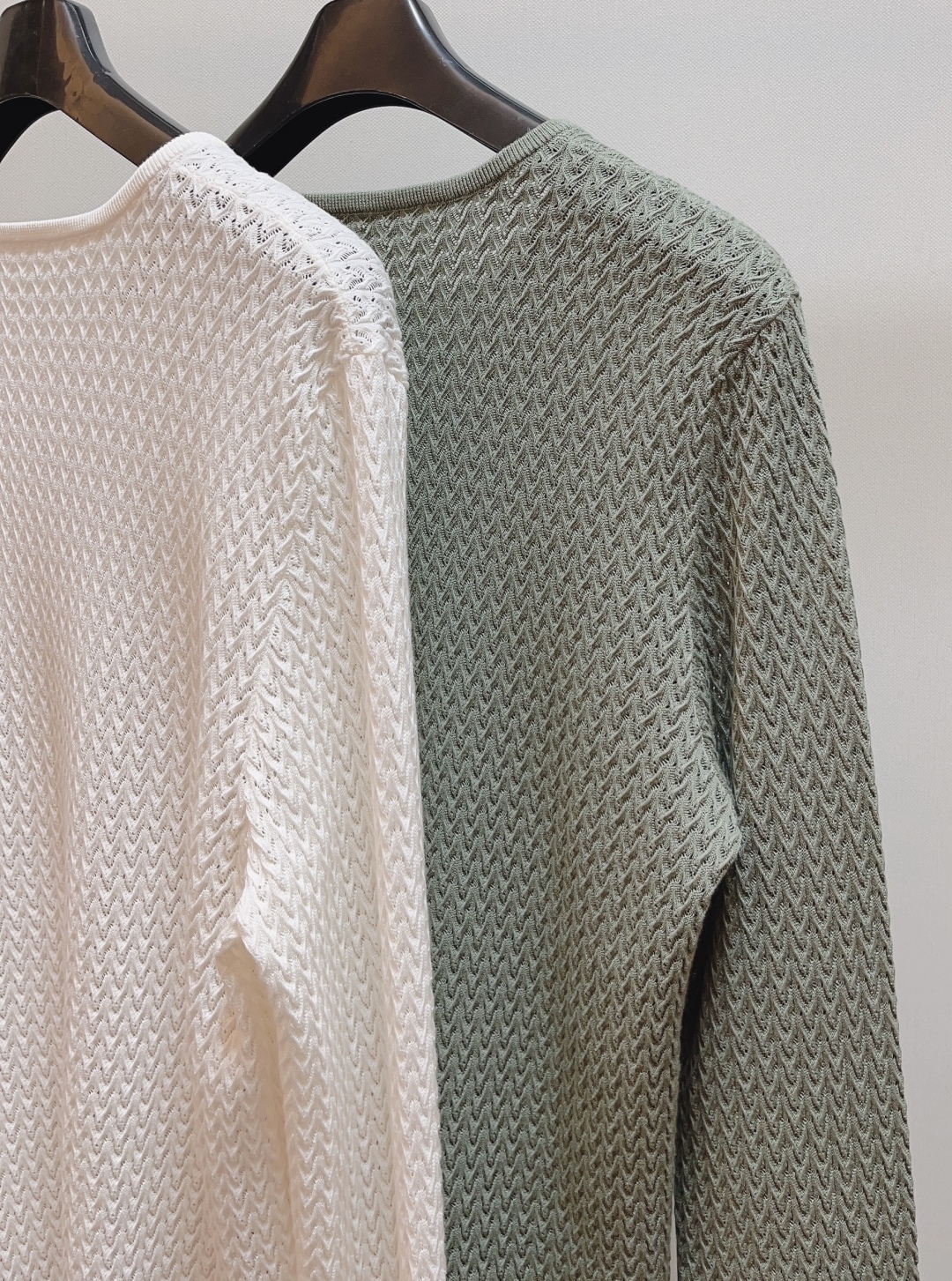 喜欢穿这种基础百搭又不失精致单品的客户一定要入哦!人字波纹镂空肌理感十足,纹理清晰档次,基础长袖套头单品上身可不简单,典雅气质、亲肤舒适,内搭外穿皆时尚