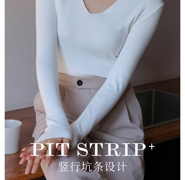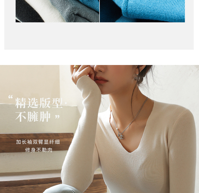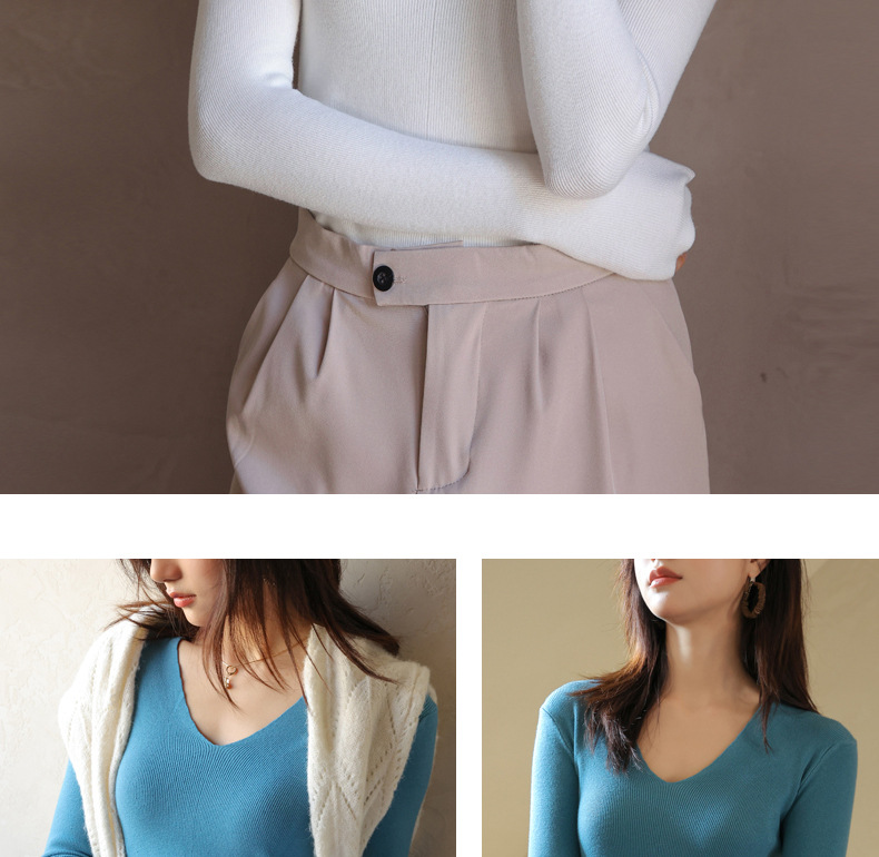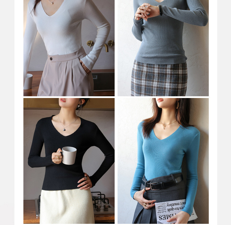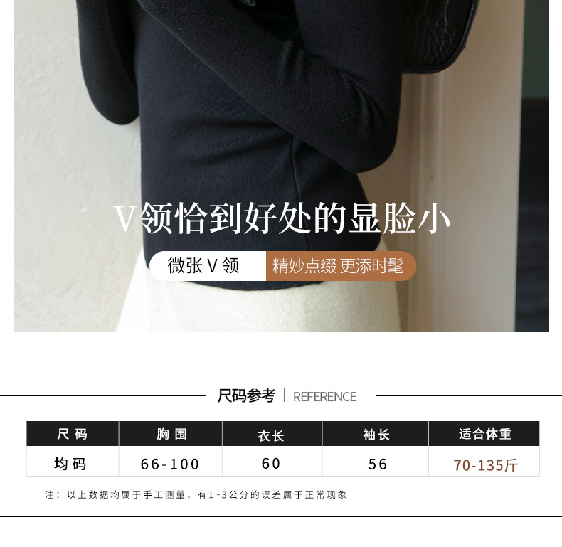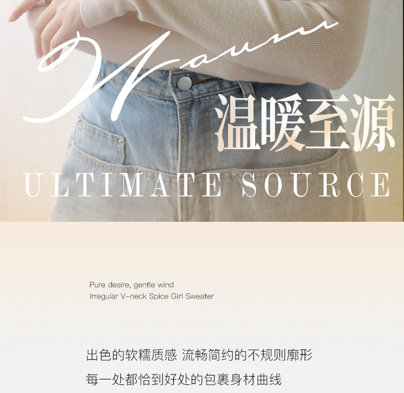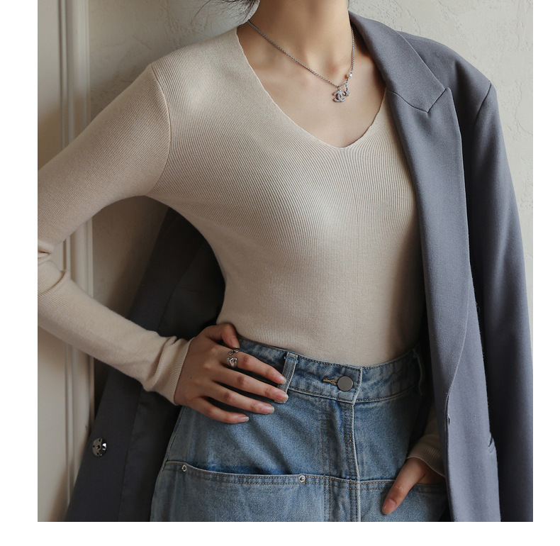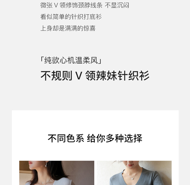 秋冬季新款【针织V领打底衫】 不规则V领辣妹针织衫 西装内搭上衣 修身长袖t恤