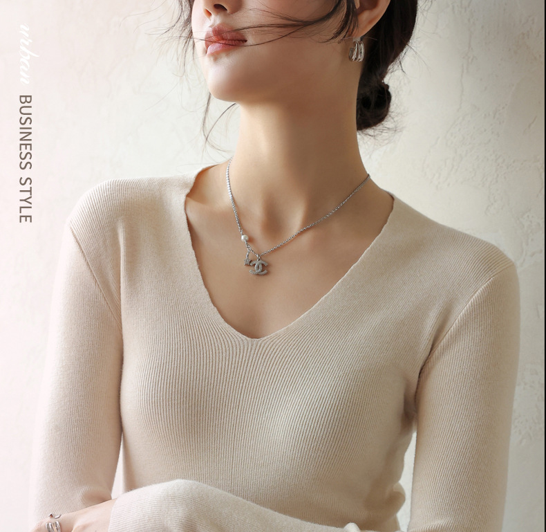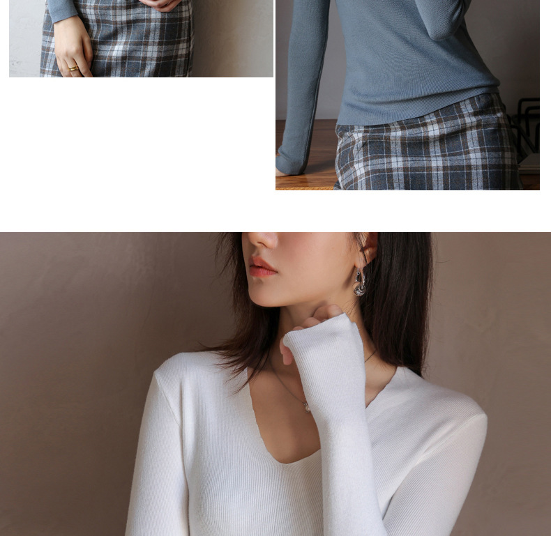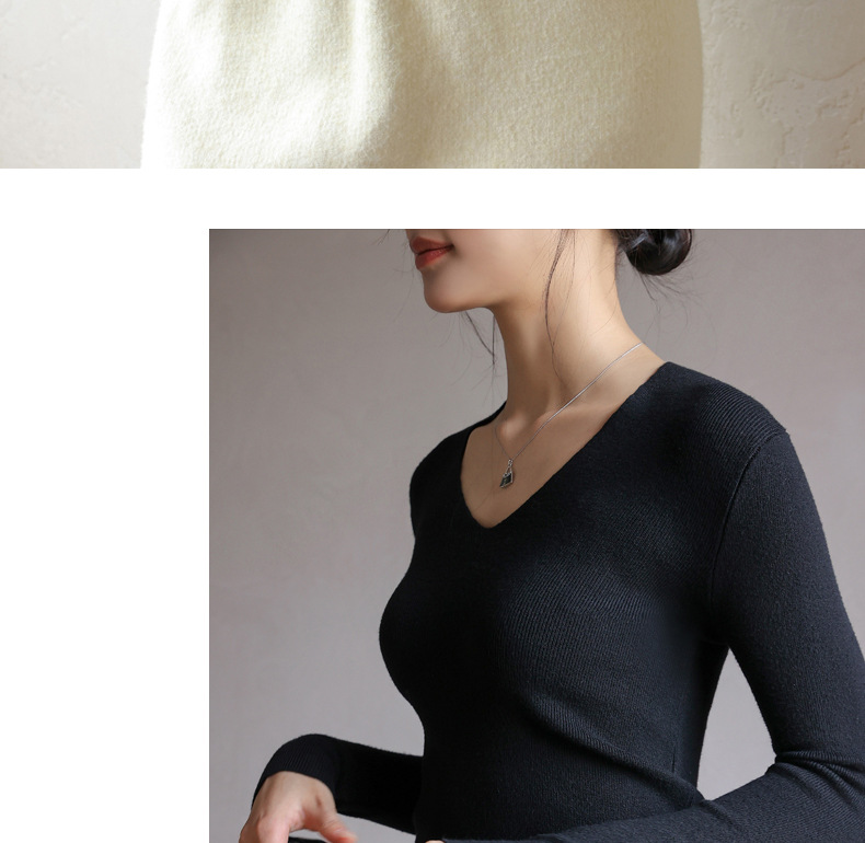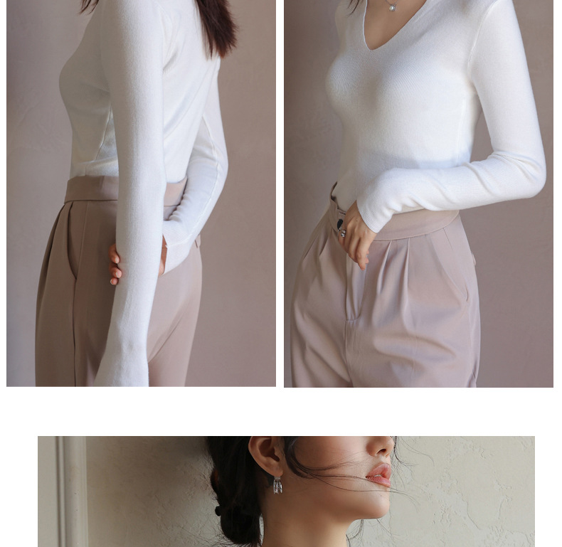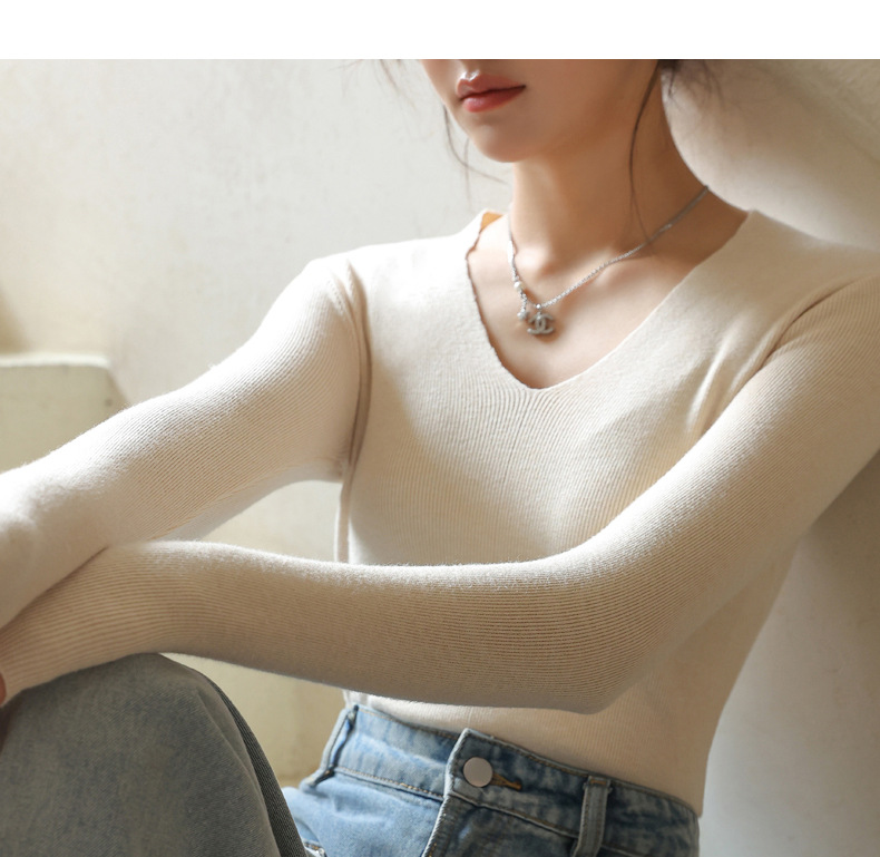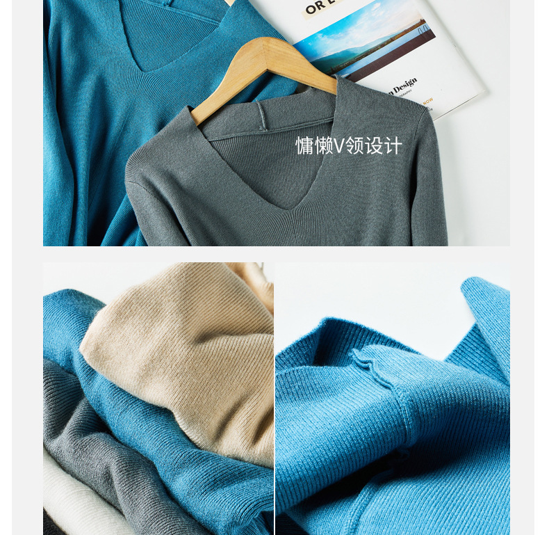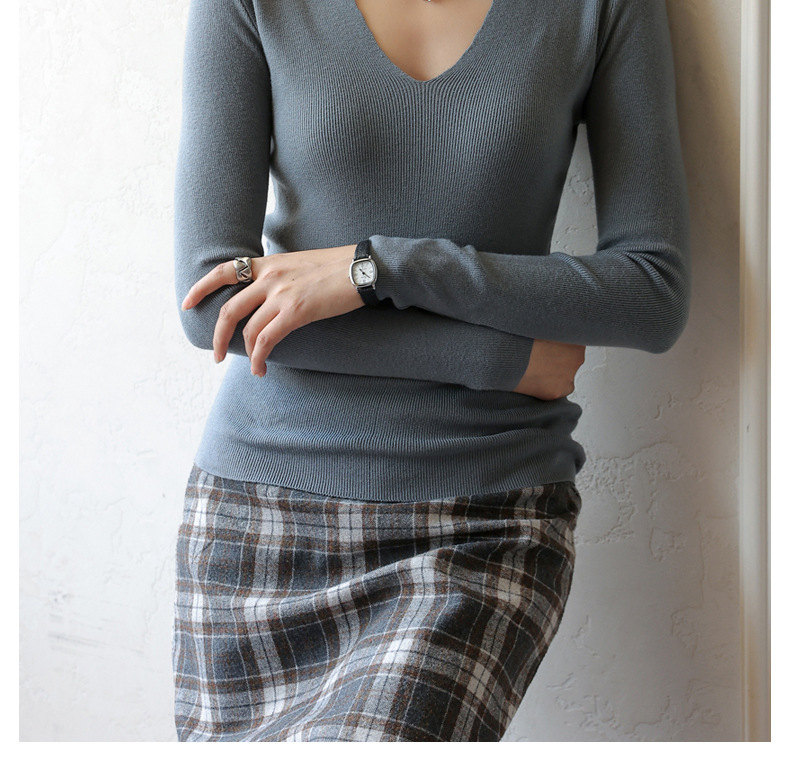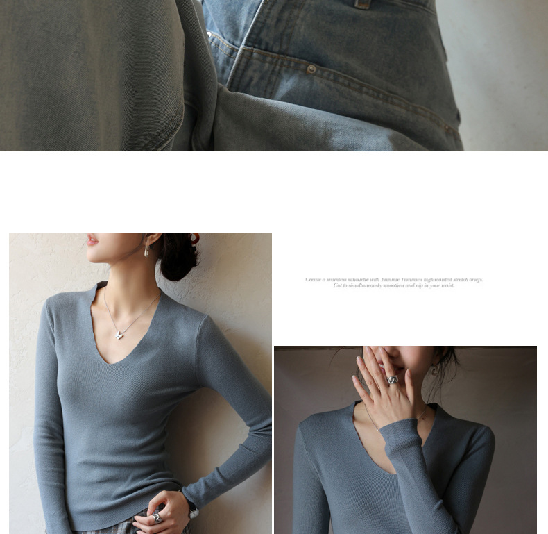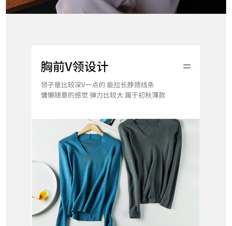 秋冬季新款【针织V领打底衫】 不规则V领辣妹针织衫 西装内搭上衣 修身长袖t恤