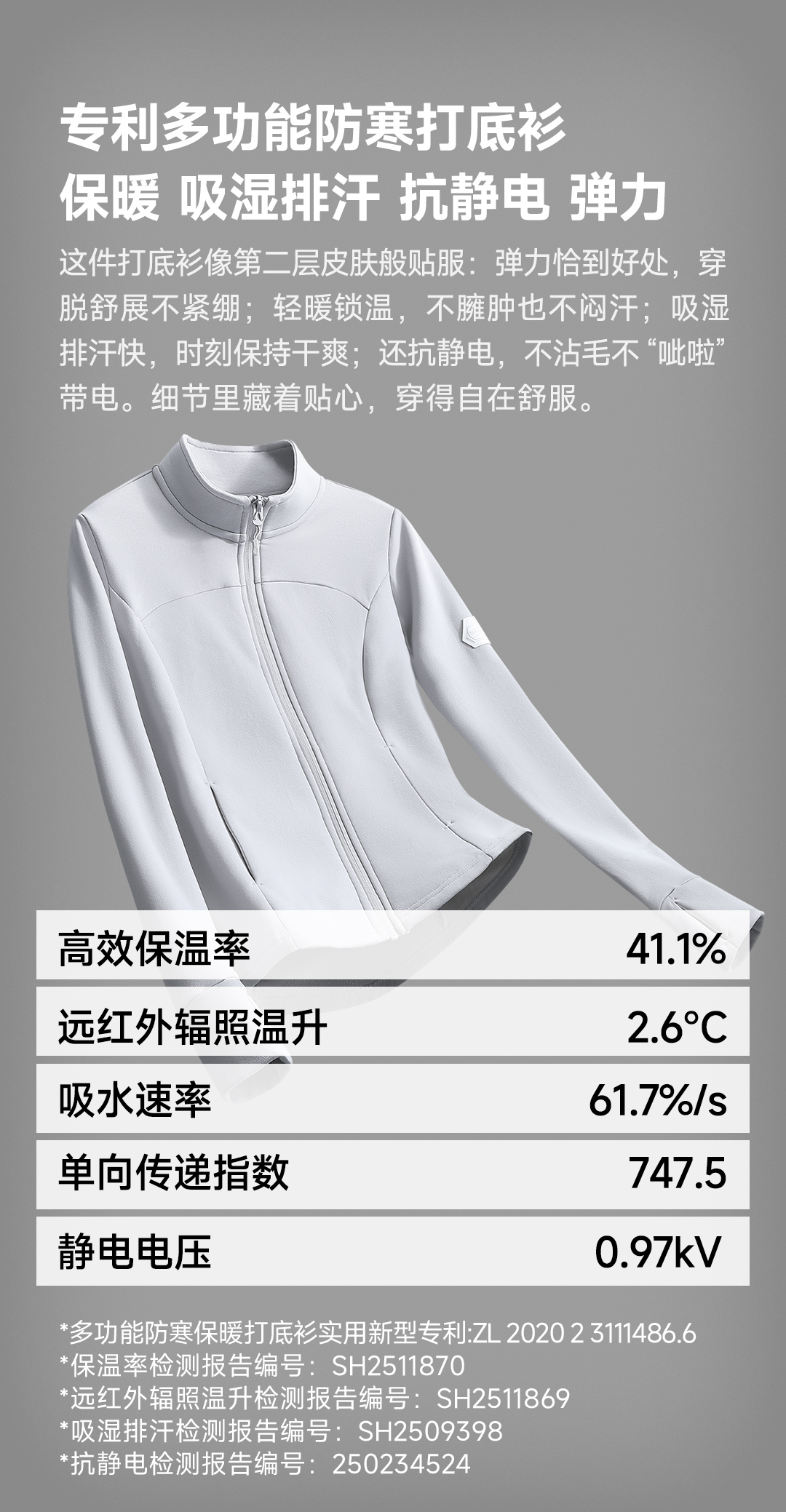Supield云感热力绒保暖打底衫T恤男女款7A抗菌防静电吸湿排汗