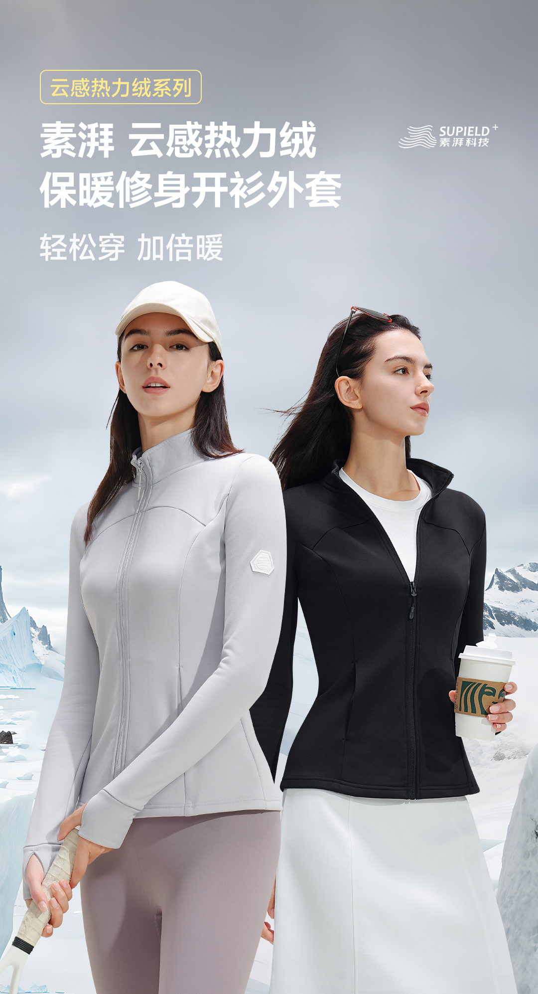 素湃Supield云感热力绒拉链开衫女士透气保暖打底衫修身款秋外套