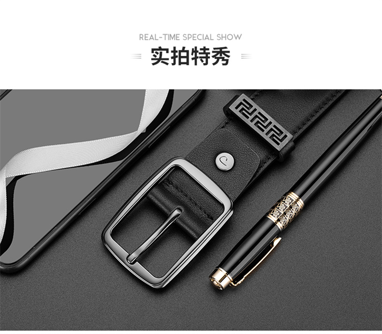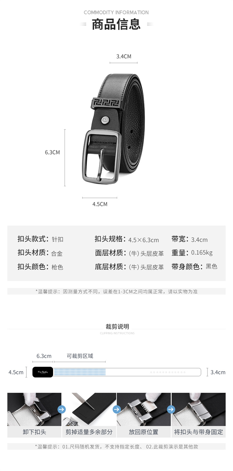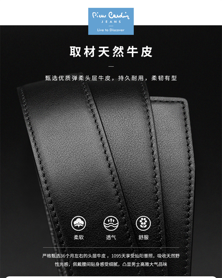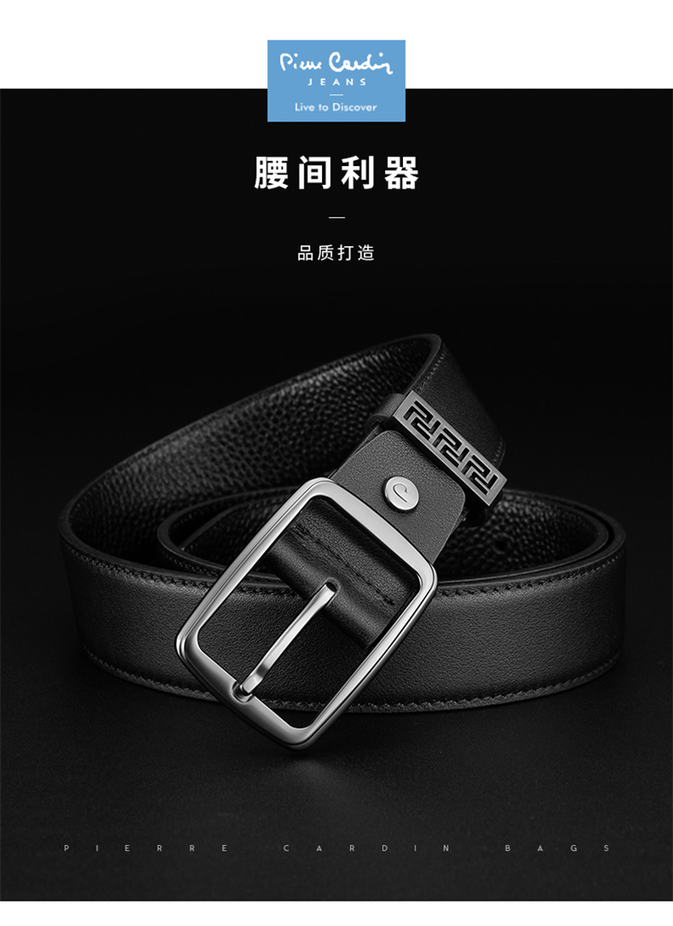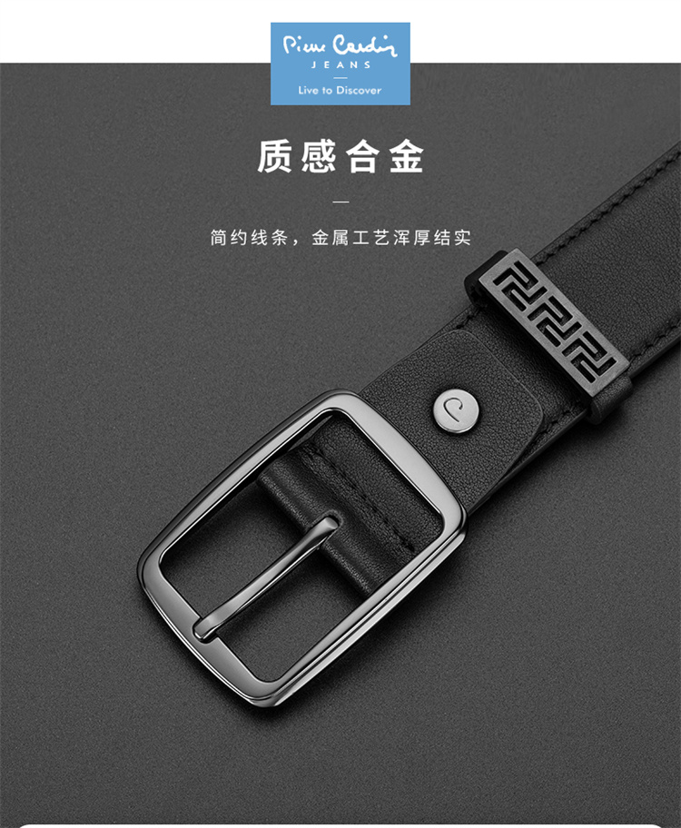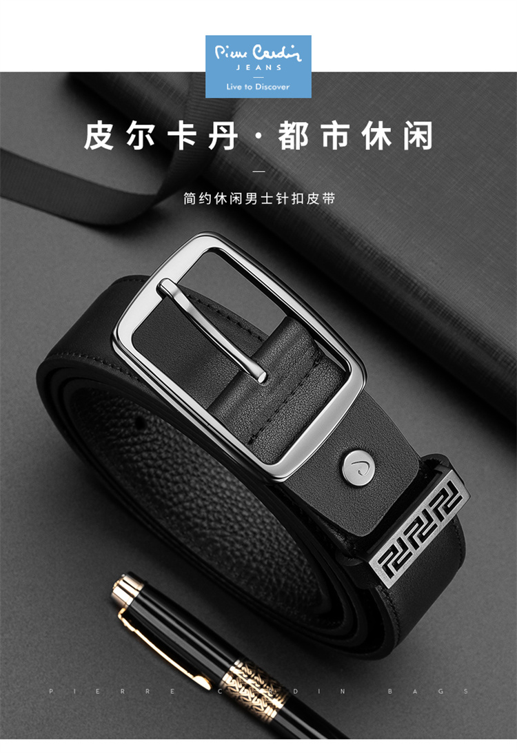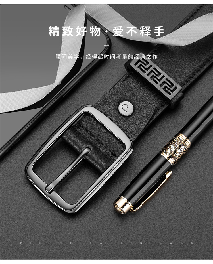 皮尔卡丹皮带男款合金针扣头皮带男真皮腰带男真皮皮带男士送男友送爸爸礼物