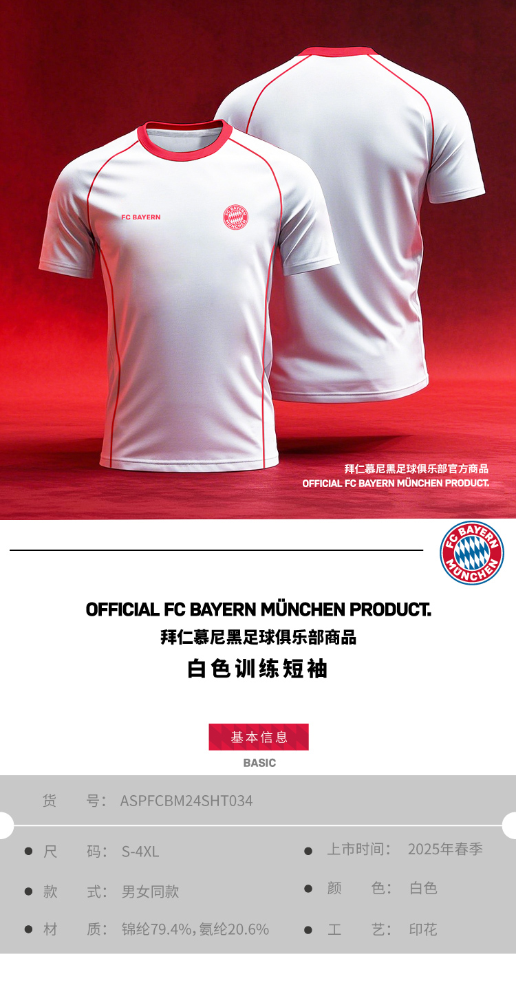 【官方正版】拜仁慕尼黑足球俱乐部丨简约男女运动训练短袖T恤