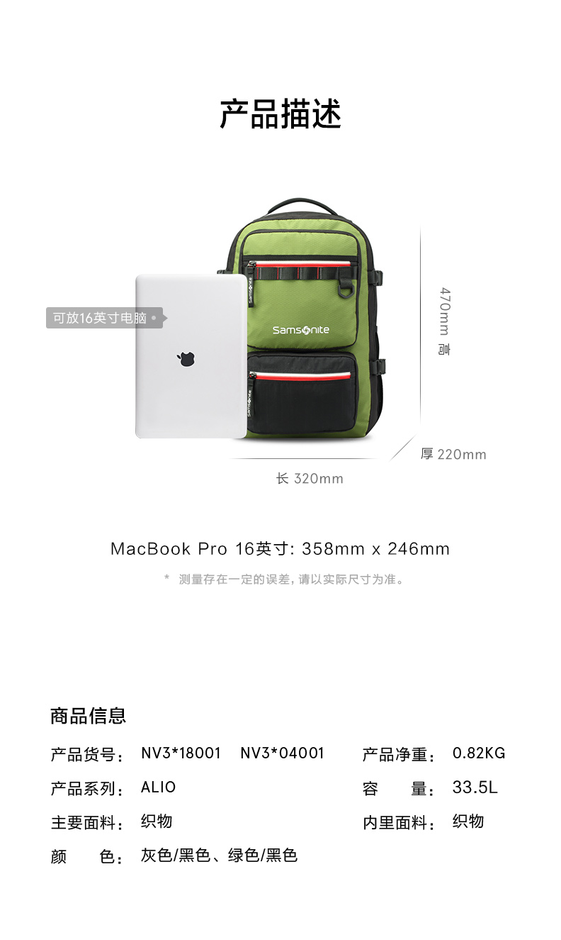 新秀丽轻便减压大容量旅行休闲双肩包NV3*001