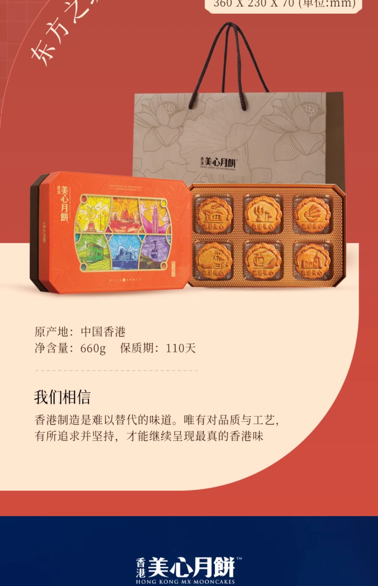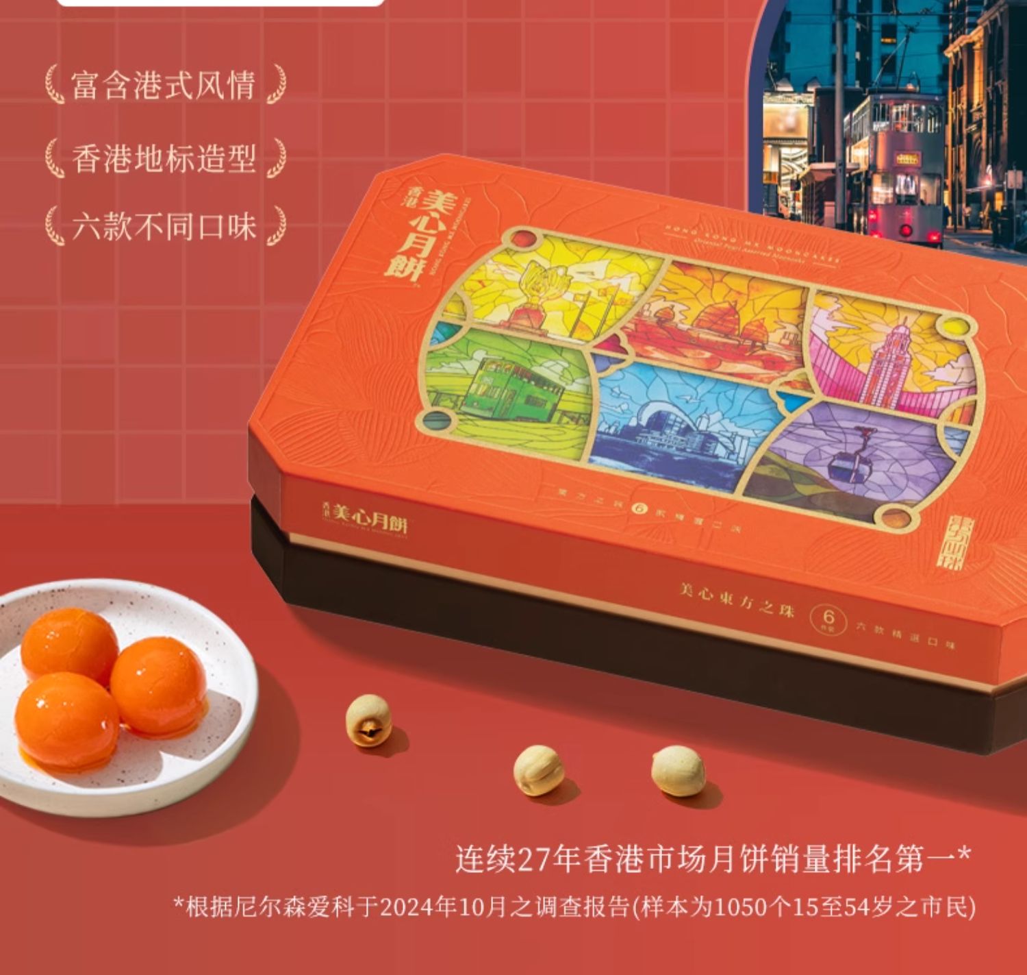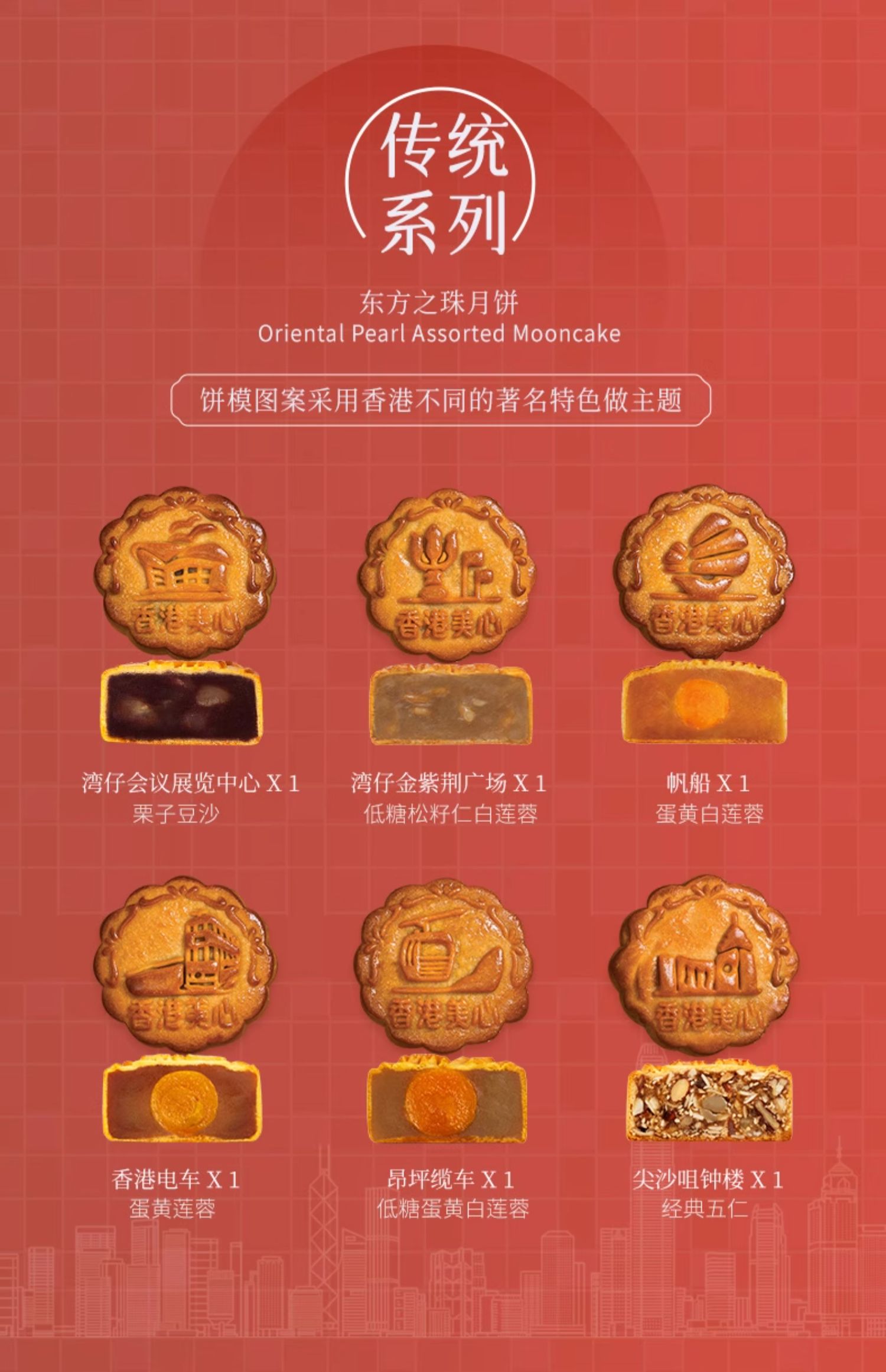 【预售 乐享中秋】香港美心东方之珠月饼660g/070025 港式传统五仁莲蓉豆沙低糖蛋黄一盒6个装