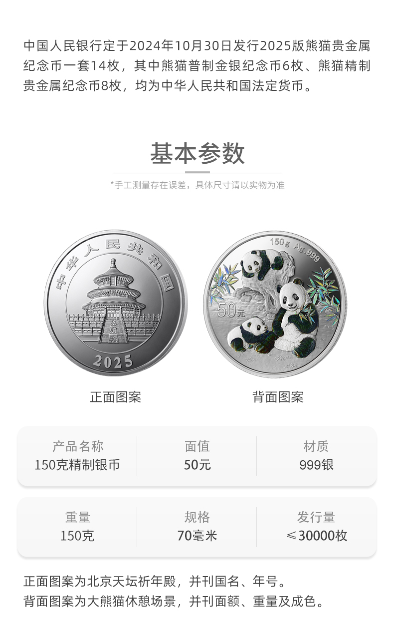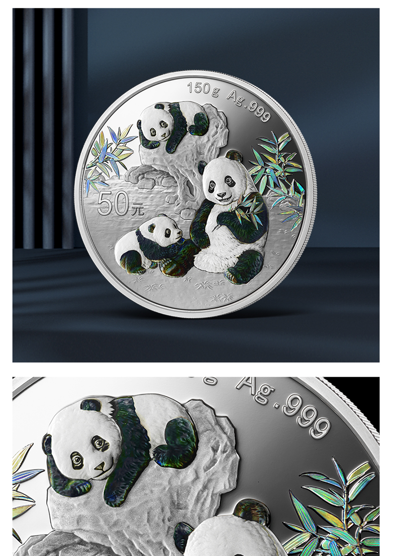 【精制币】2025年熊猫150克幻彩银币