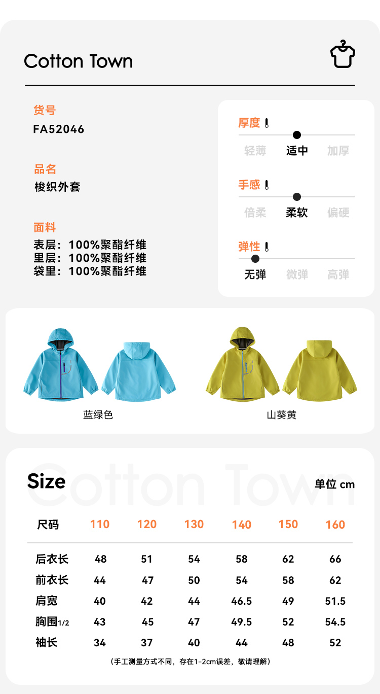 【三防抗静电】棉花堂秋冬过渡4级防水梭织童装外套-FA52046