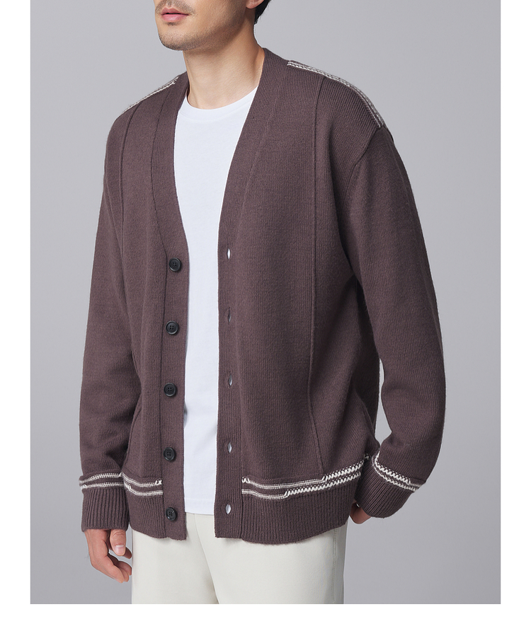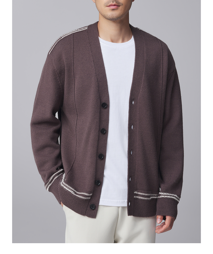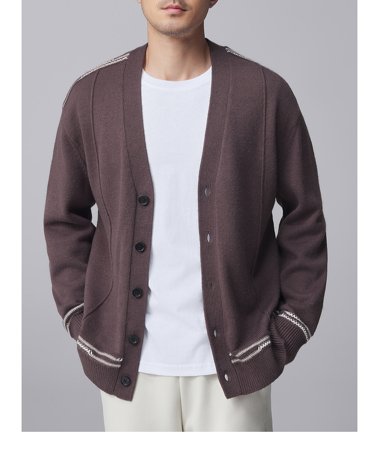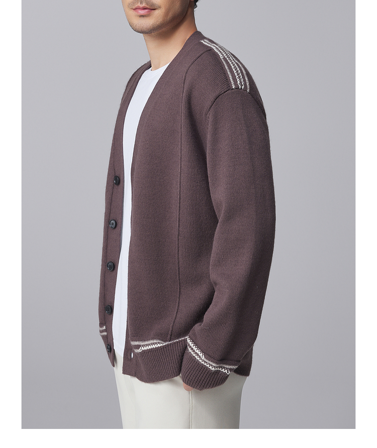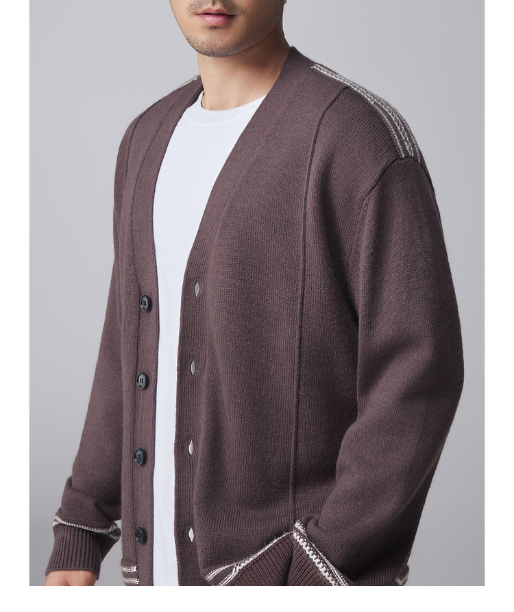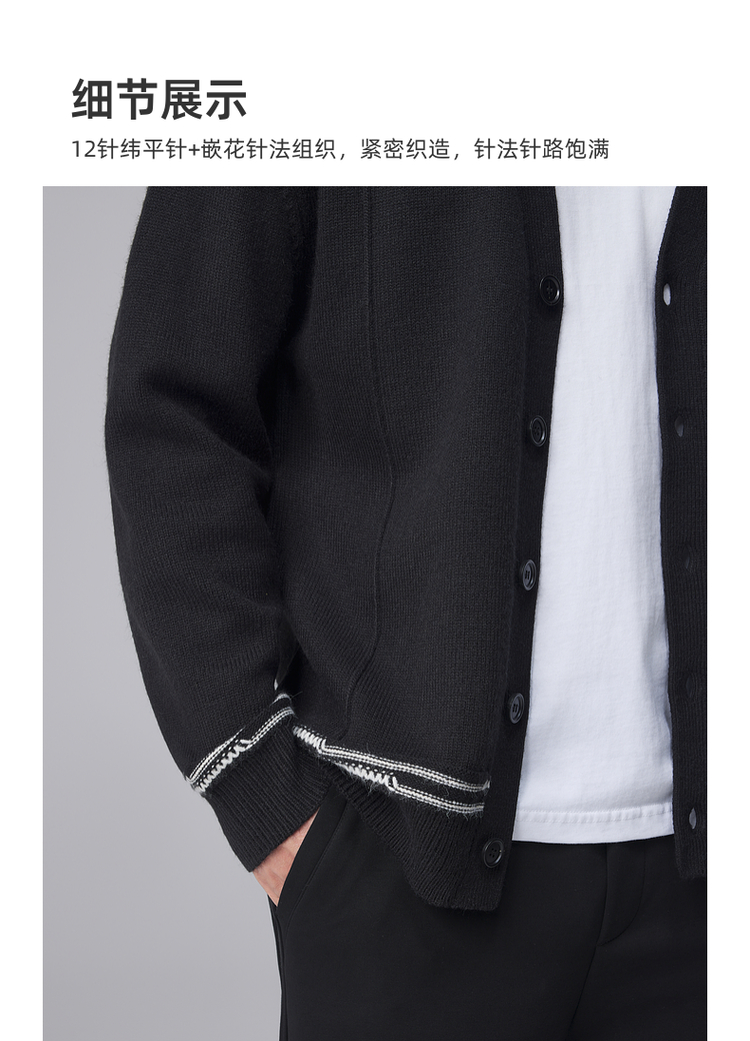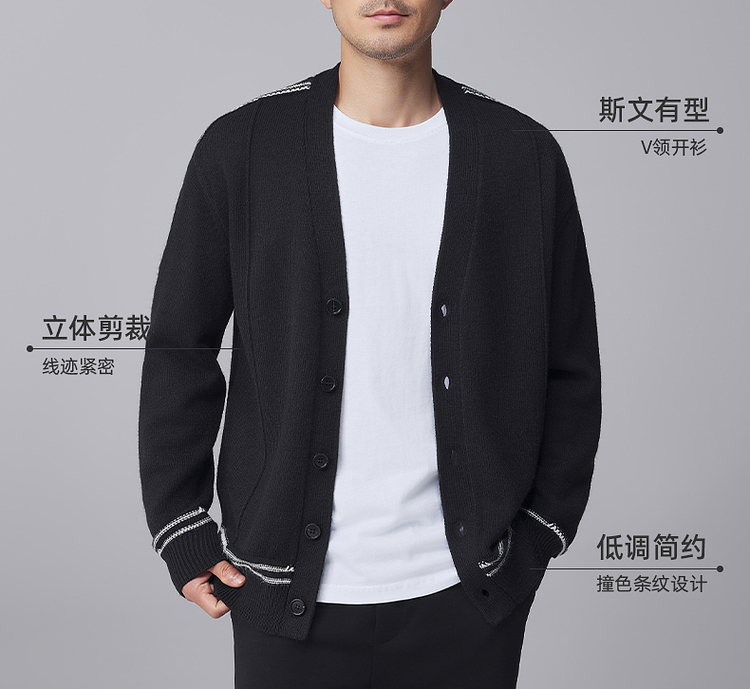 墨麦客男装2024秋冬新款加厚V领夹克男士条纹针织开衫毛衣外套。
