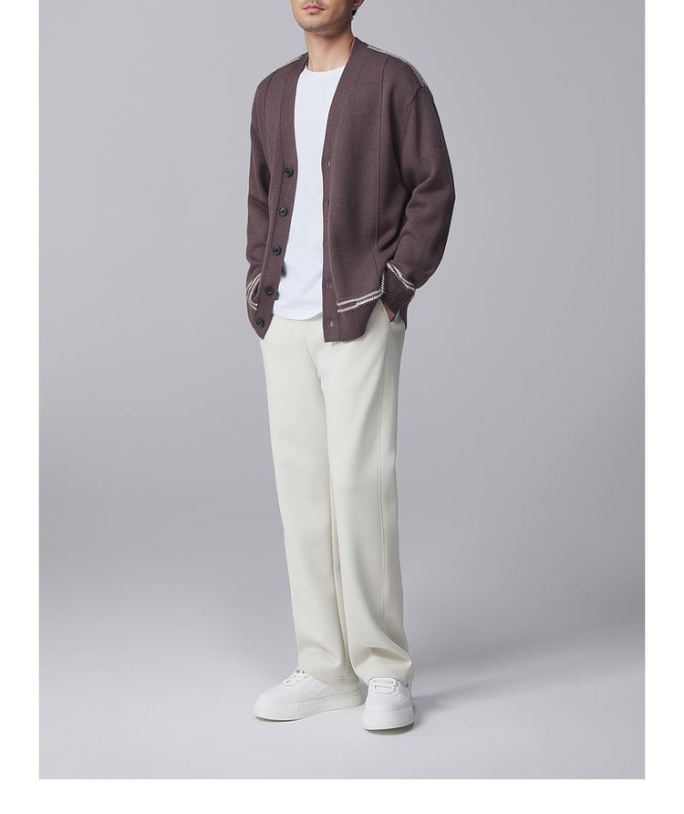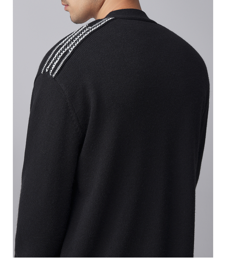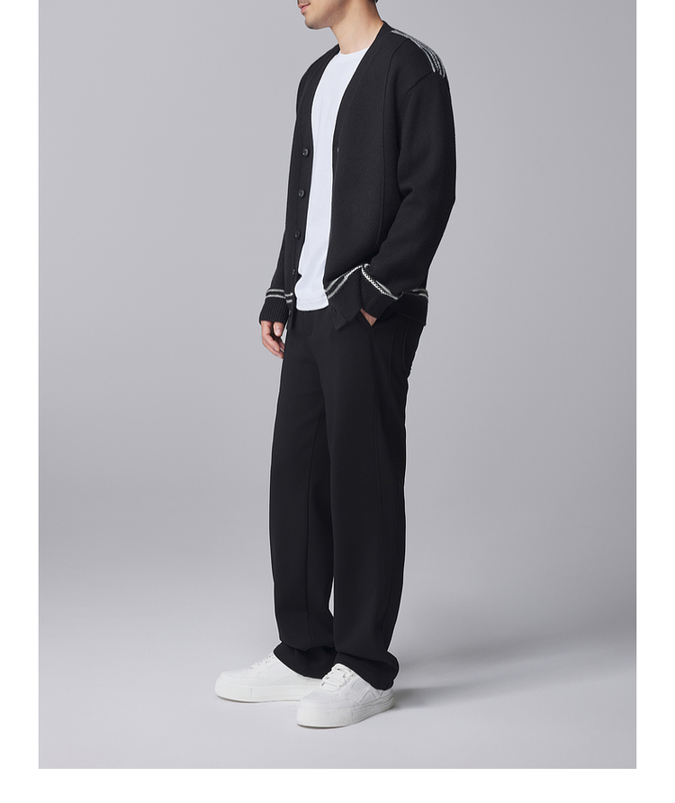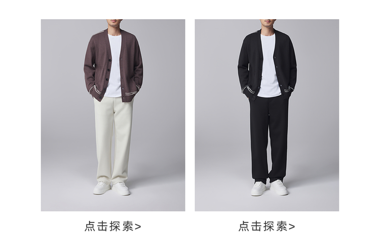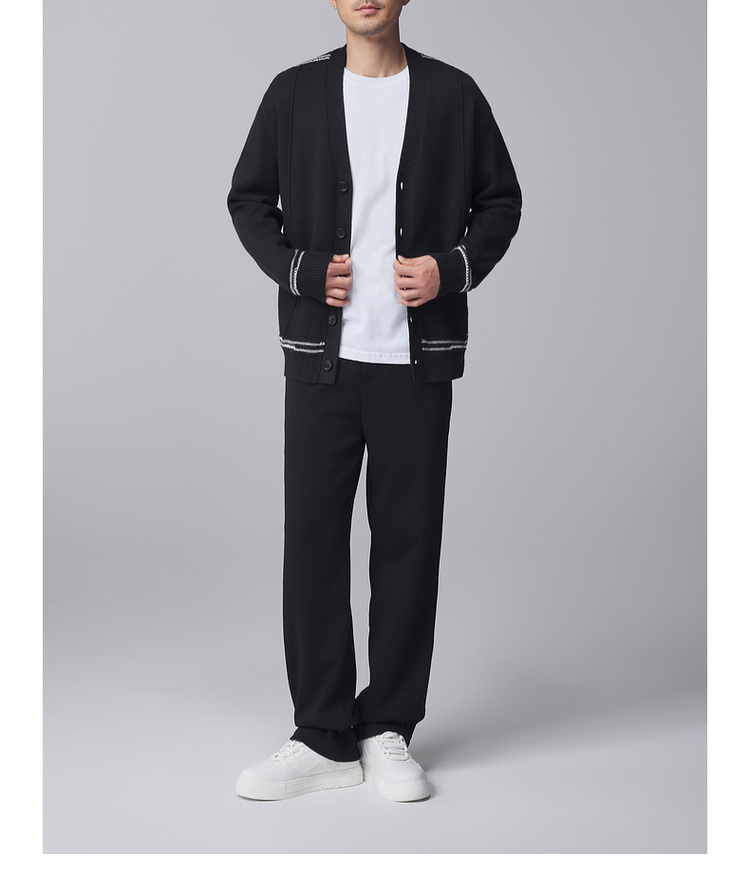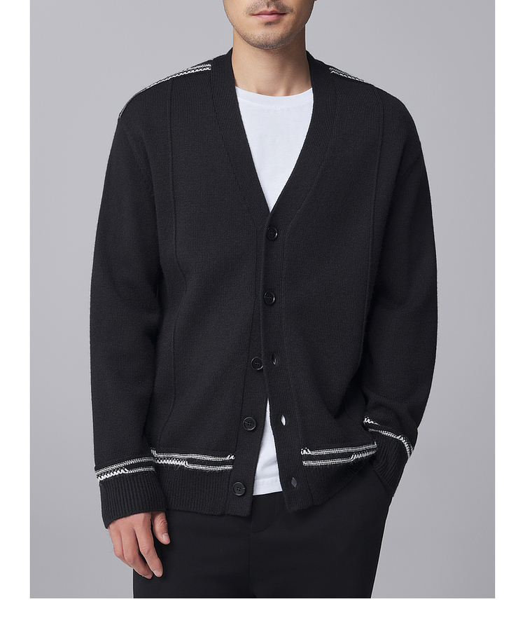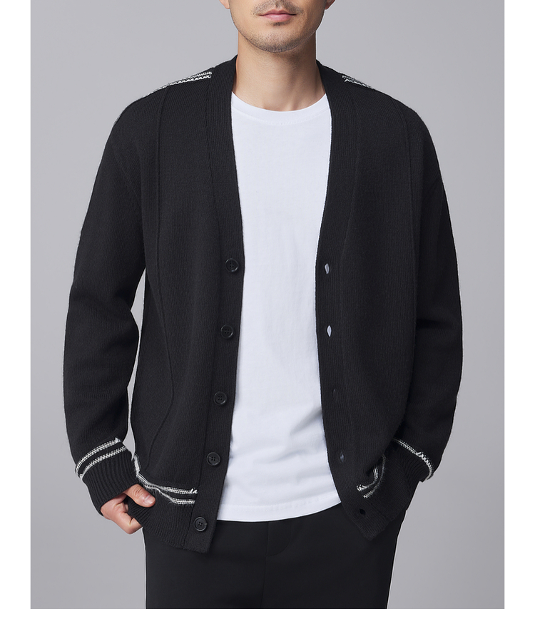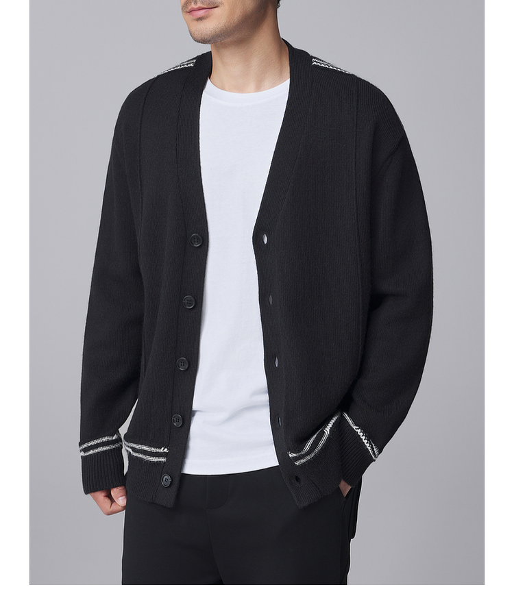 墨麦客男装2024秋冬新款加厚V领夹克男士条纹针织开衫毛衣外套。