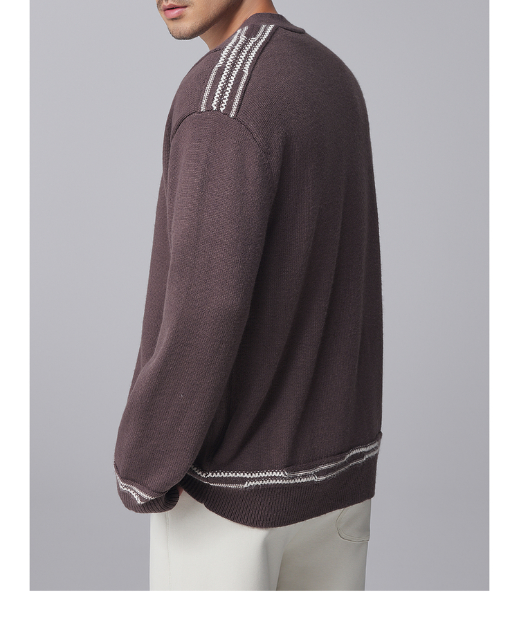 墨麦客男装复古绞花圆领针织衫男士2024冬季新款重磅宽松毛衣男潮