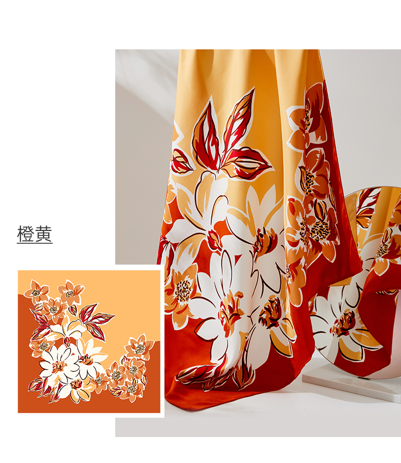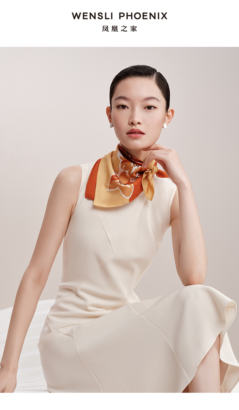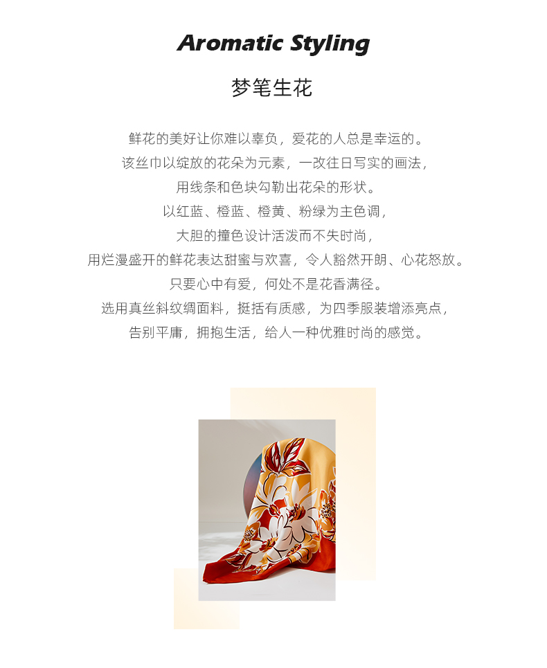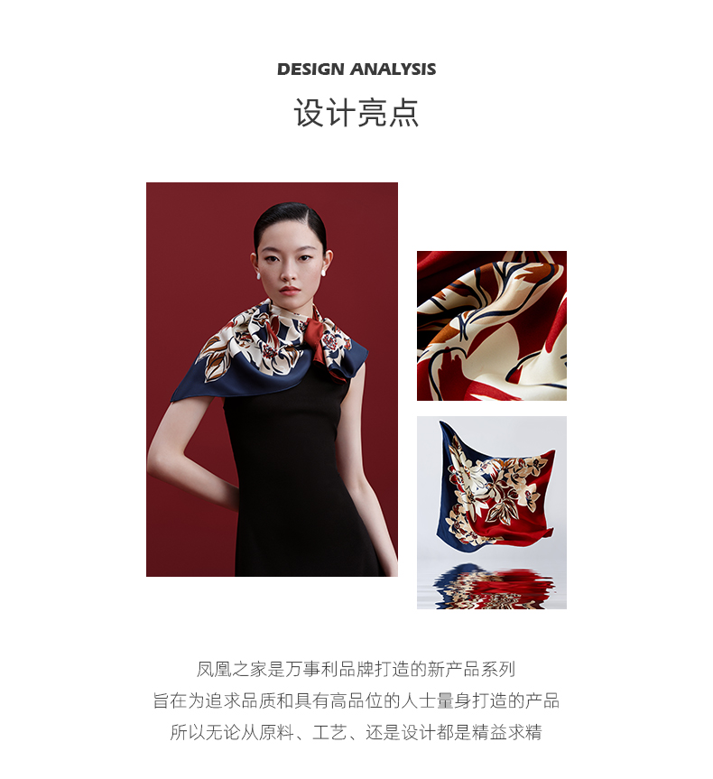 凤凰之家“梦笔生花”63厘米双面印花真丝中方巾