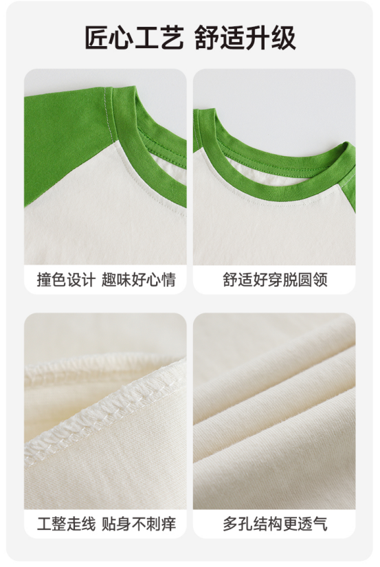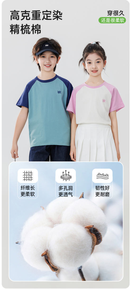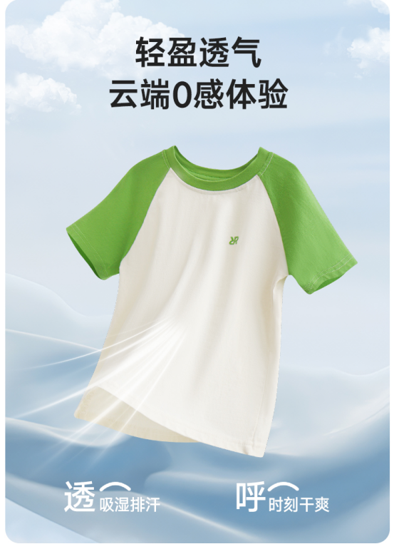 纯棉不仅仅舒服 轻盈又透气,给孩子云端0感体验 吸湿排汗,时刻保持清爽 炎热夏天肆意挥洒汗水