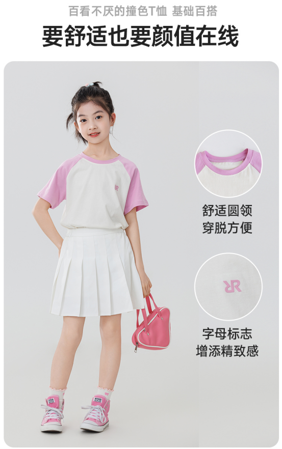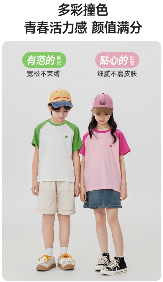 恰到好处的吸睛,不会很drama很夸张 是随便一穿都很好看的撞色T 纯棉质地带来无比的舒适感与透气性 细腻的棉质面料,轻柔触感 给予孩子娇嫩肌肤的温柔呵护 良好的吸湿性,让孩子们在欢笑与奔跑间 感受干爽与舒适,不用刻意挑选,随手一件 快乐而简单,轻松而自然 百搭的属性,轻松拿捏各种场合