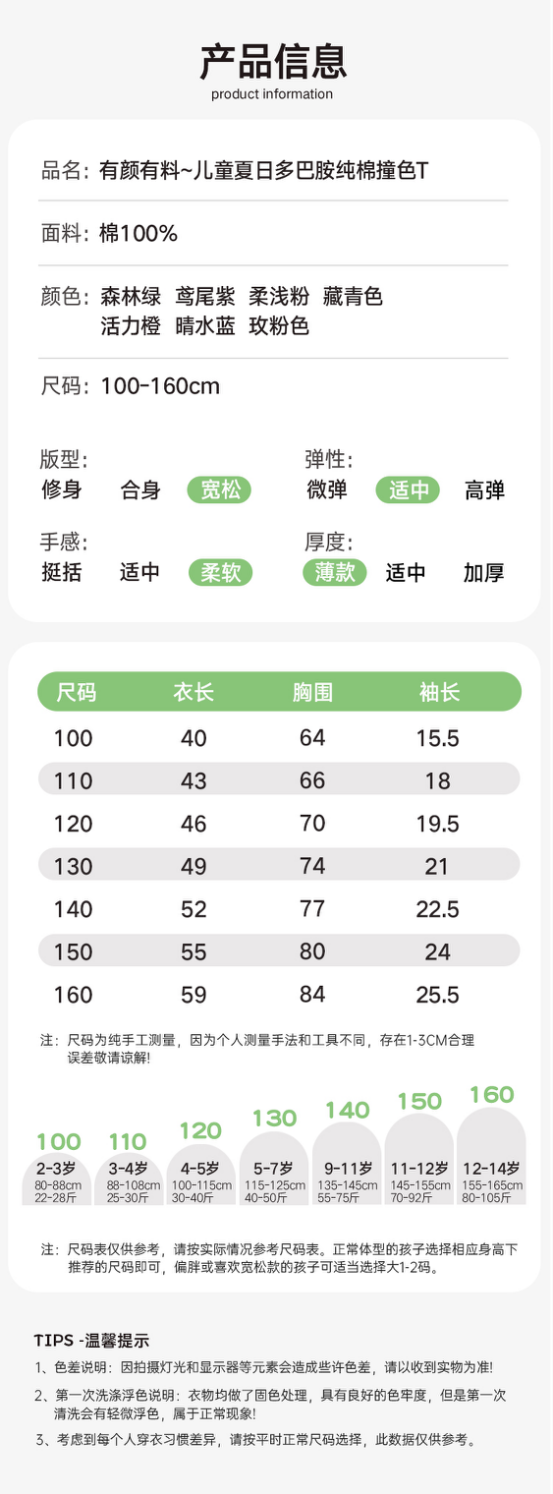🌈【儿童夏日多巴胺纯棉撞色T】小朋友穿了爱到不行的撞色T🌻,有颜又有料,3件入手都不嫌多🌸 100%精梳棉🎉,柔软挺括,轻薄舒适